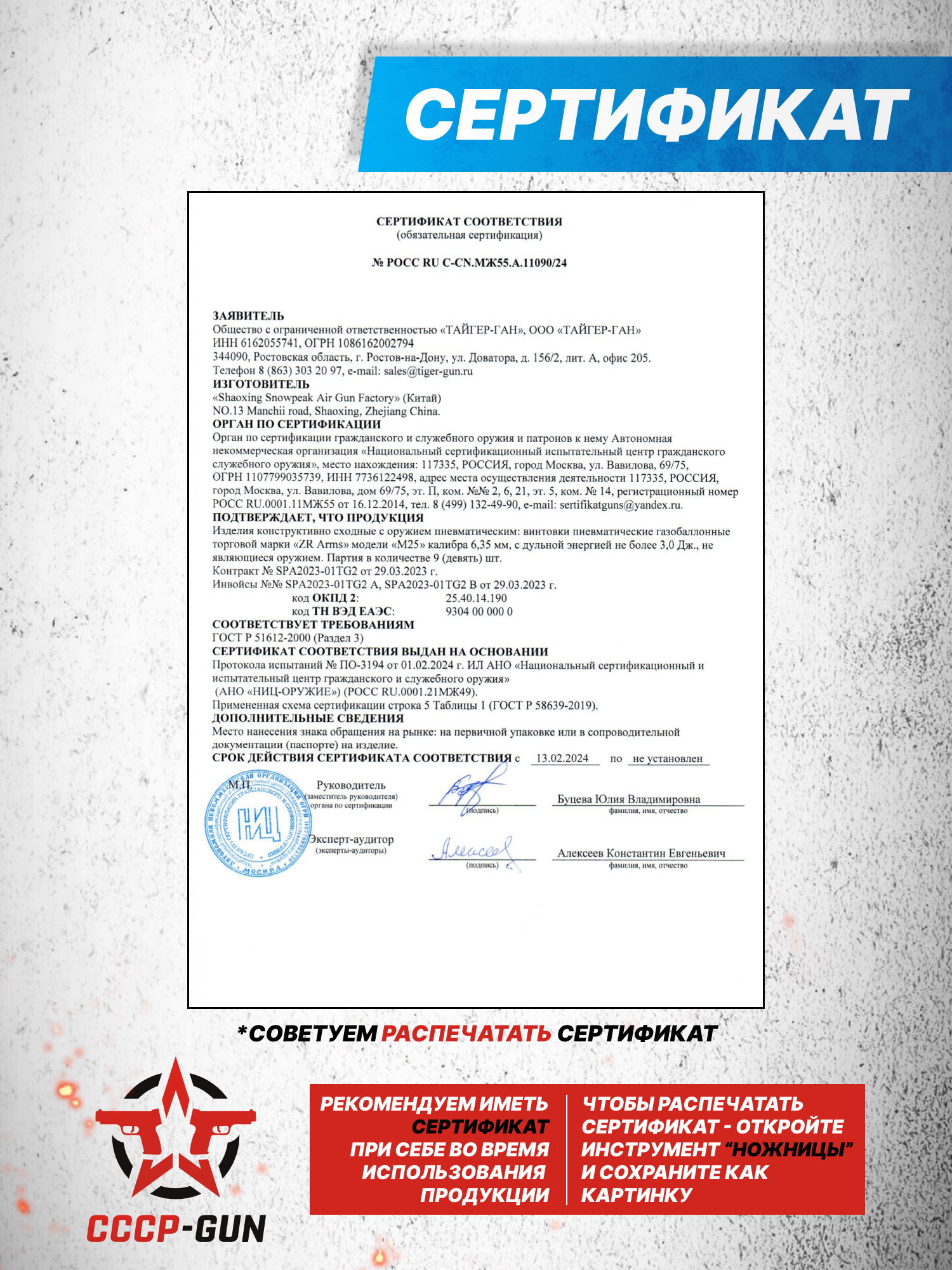 Продается обозреваемая винтовка без обязательного оформления оружейной лицензии со стороны покупателя, поскольку на территорию России компания ZR Arms поставляет модели с фиксированной дульной энергией на разрешенной отметке в 3 Дж. Это дает возможность приобретать образец M25 даже начинающим пользователям, которые только планируют приобщаться к стрелковой культуре. Отмечается, что для безопасного использования изделия в конструкцию пневматики был добавлен предохранитель.