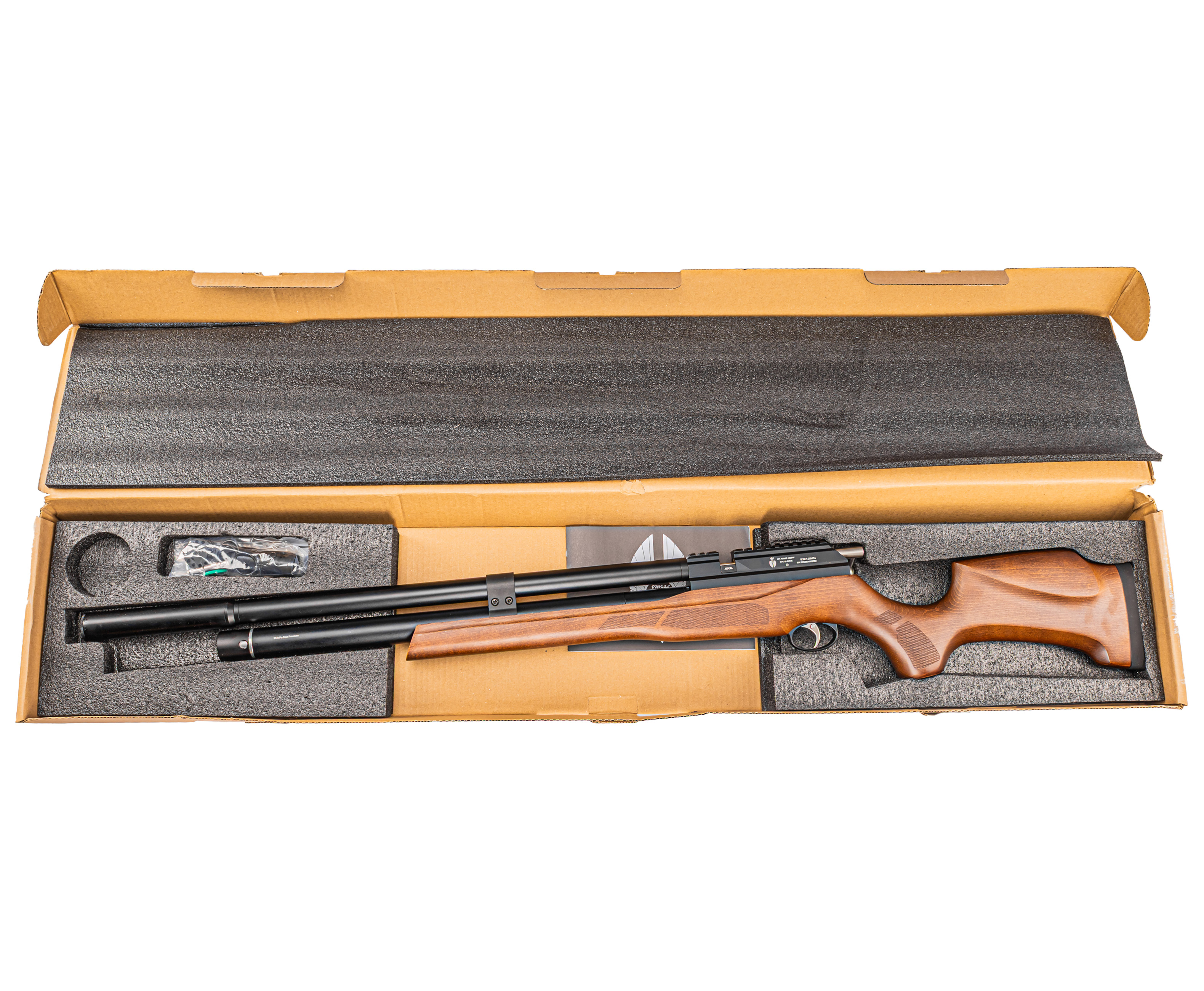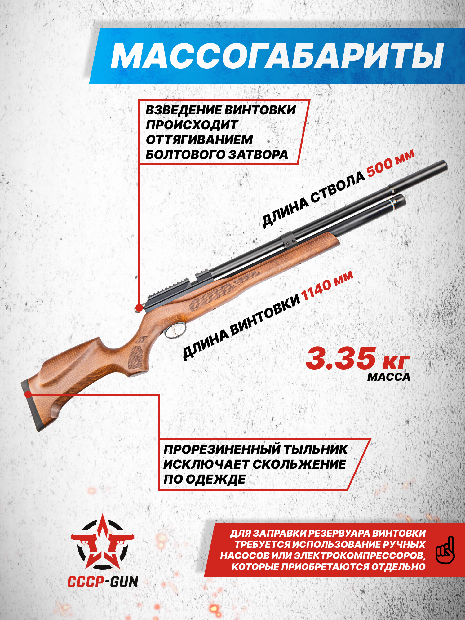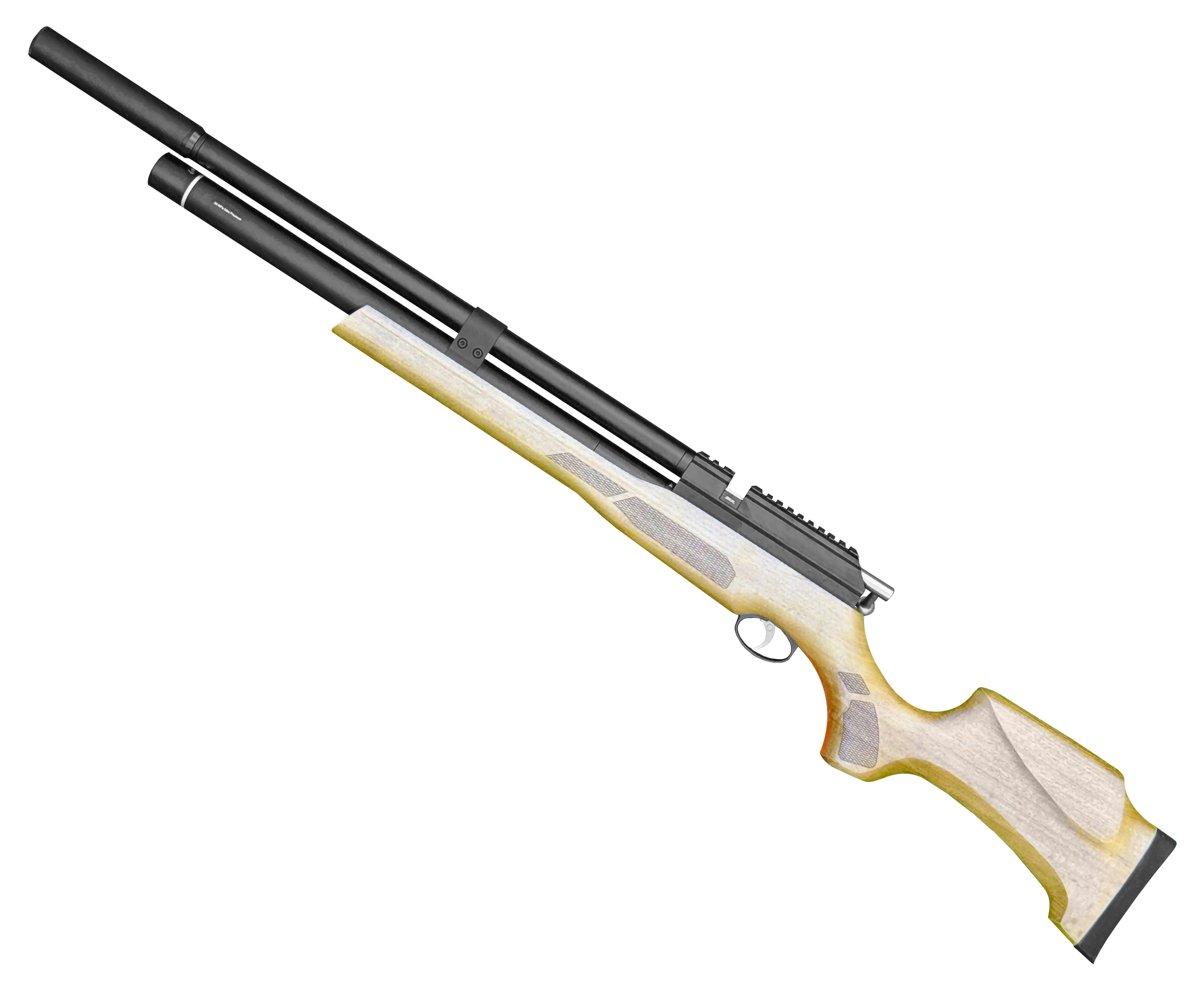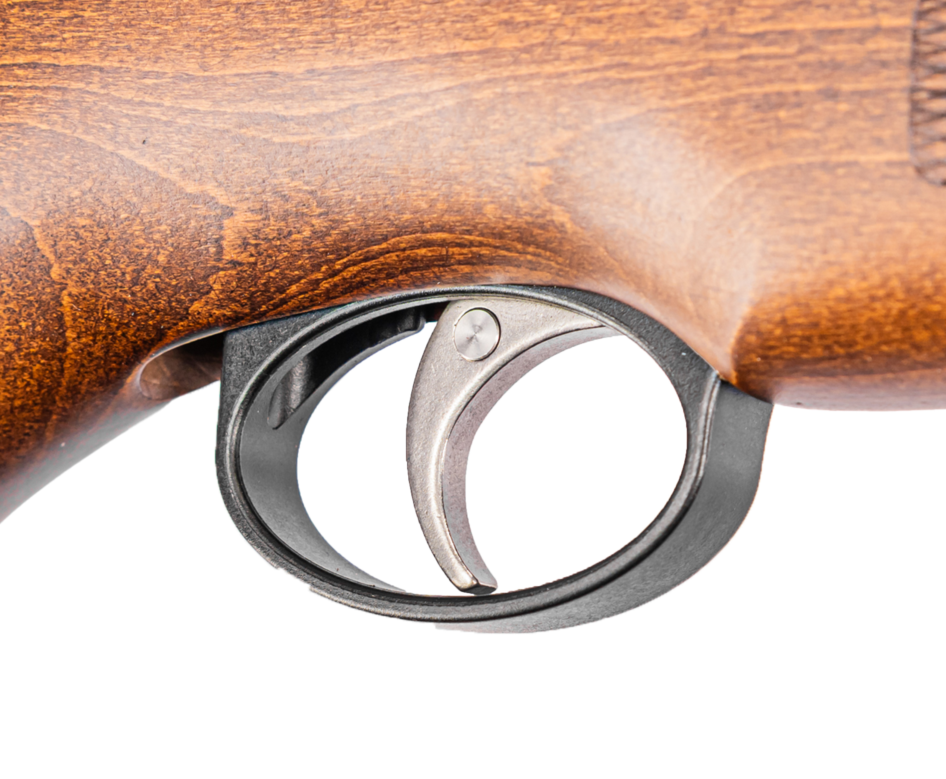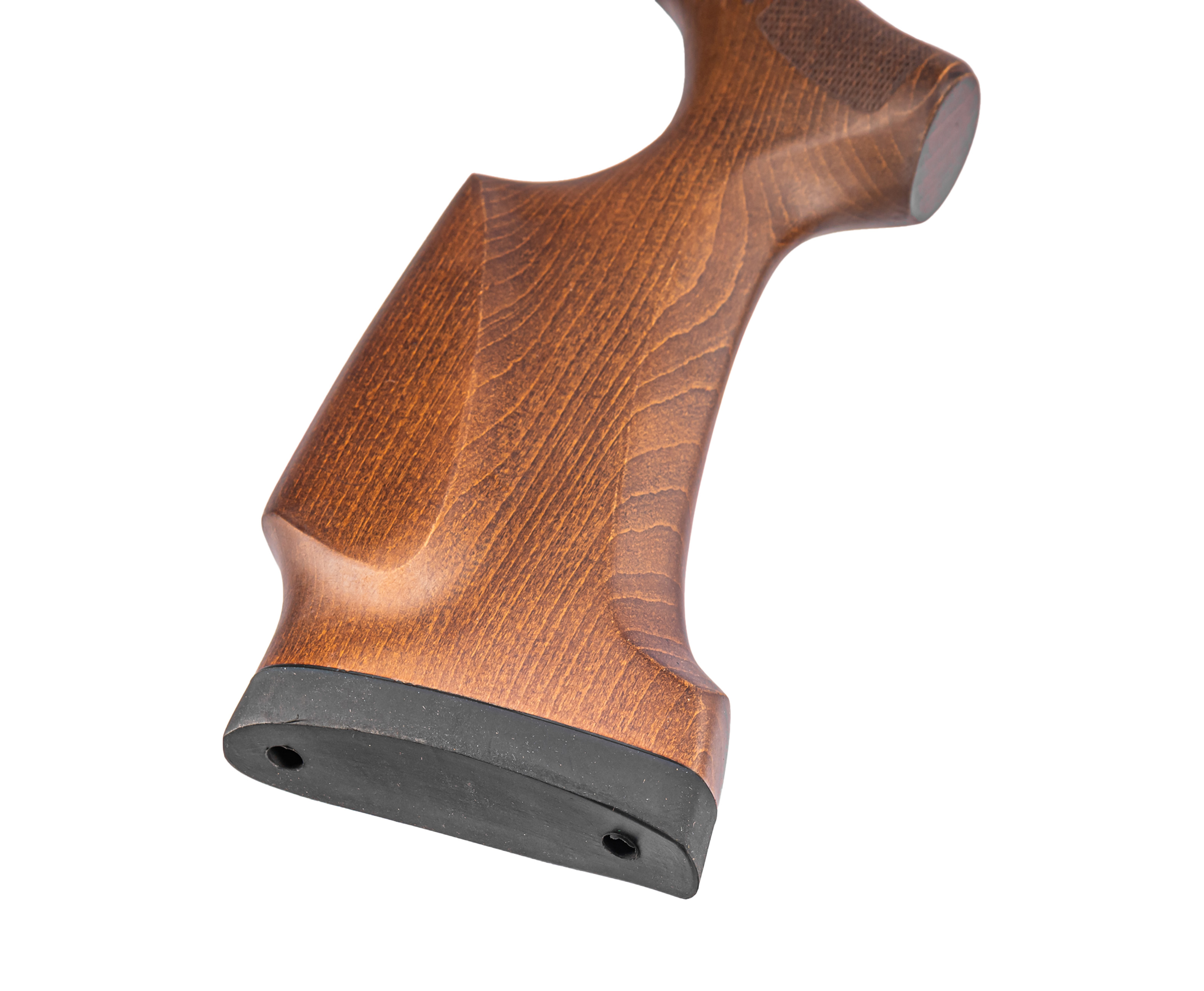 Удобство использования обеспечивается благодаря эргономичной форме ложа. Фурнитуру сделали из буковой древесины и обработали специальным защитным составом, подчеркивающим натуральную текстуру дерева. В зонах хвата, на рукоятке и в части цевья, предусмотрены текстурированные участки для предотвращения скольжения. Также модификация пневматическая винтовка дерево получила упругий затыльник на прикладе, гарантирующий снижение скольжения при вкладке.