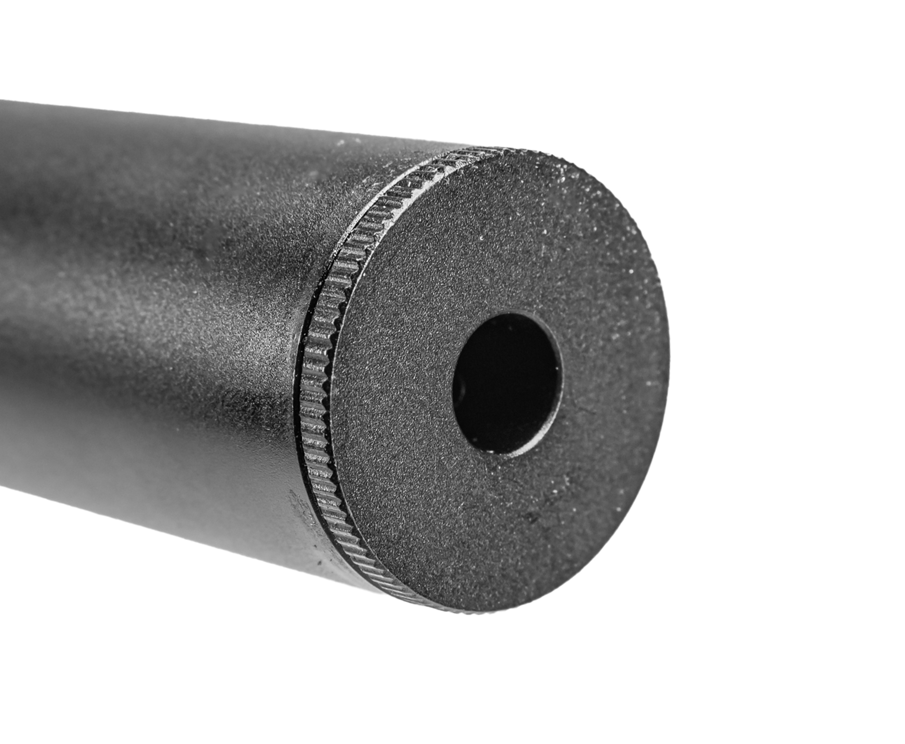 Дульный срез бланка дополнили резьбой размера М12х1.75, на которую штатно установили модератор. Благодаря этому устройству звук выстрела становится практически неразличимым. При желании насадку можно легко снять, что дополнительно уменьшает общие размеры изделия на период перевозки или хранения.