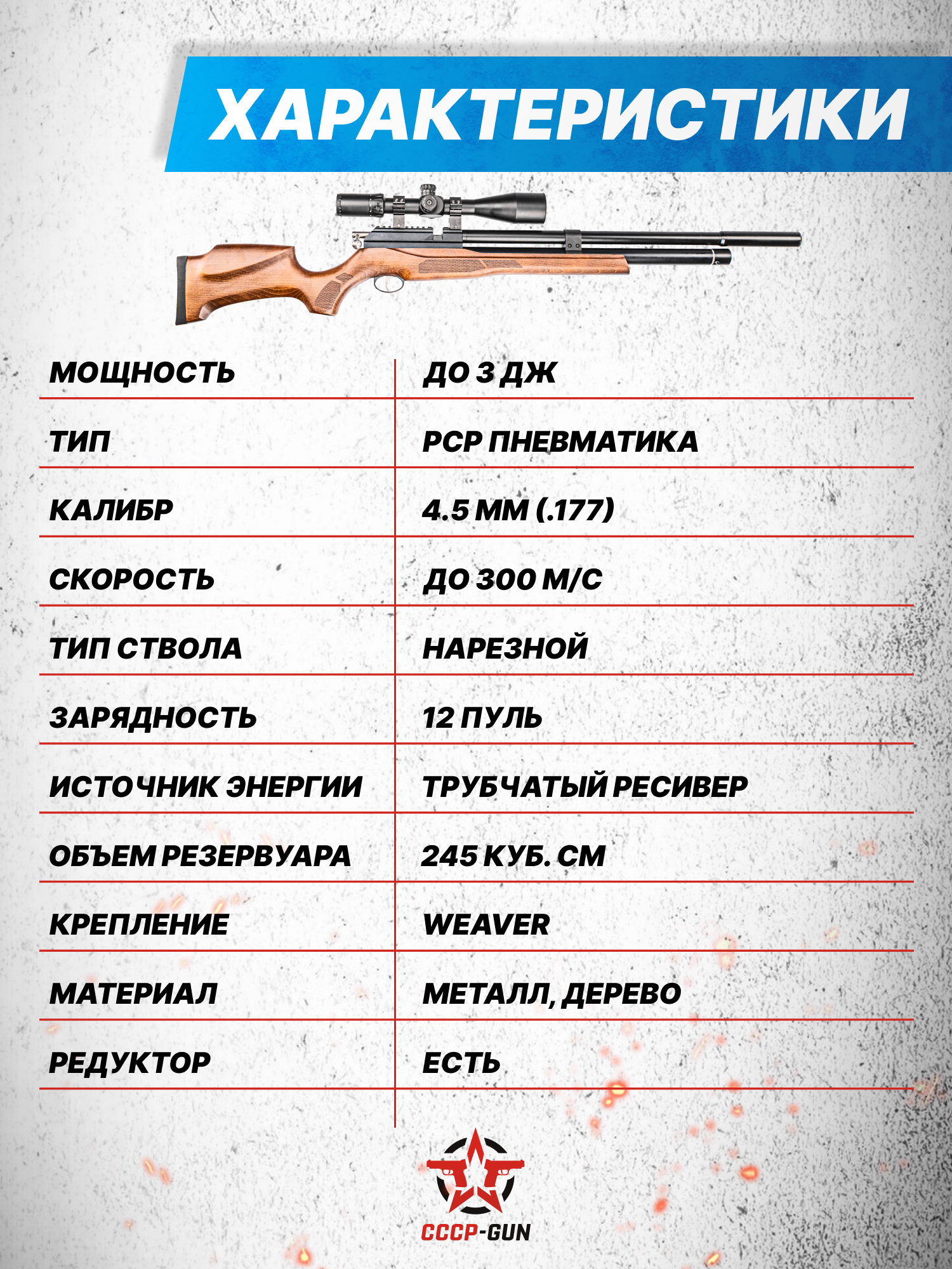 При нажатии на спусковой крючок сжатый воздух, заранее закачанный в резервуар под стволом, выталкивает снаряд со скоростью до 300 метров в сек. В версии, предназначенной для сбыта на российском рынке, достичь такой мощности без вмешательств не выйдет - поскольку винтовки поставляются с дульной энергией не выше 3 Джоулей. Эта особенность позволила приобретать оружие без необходимости оформления разрешения гражданину от 18 лет.