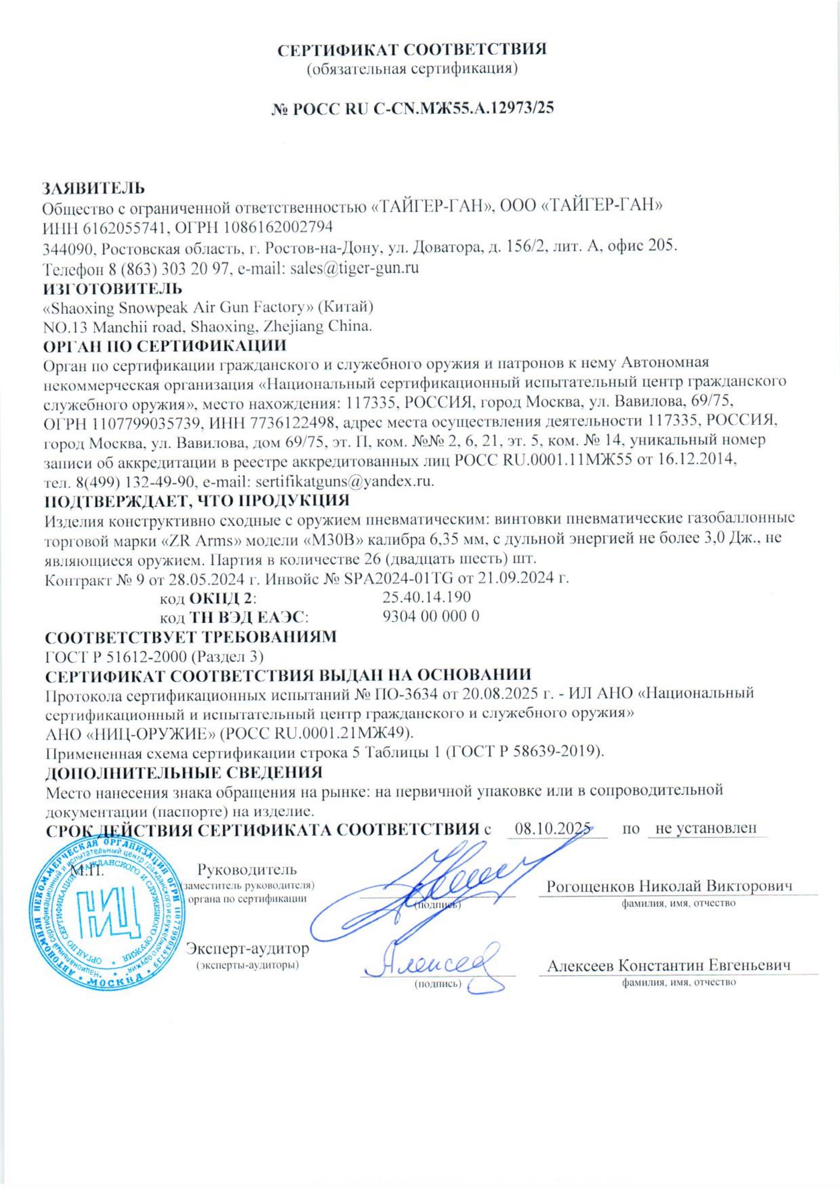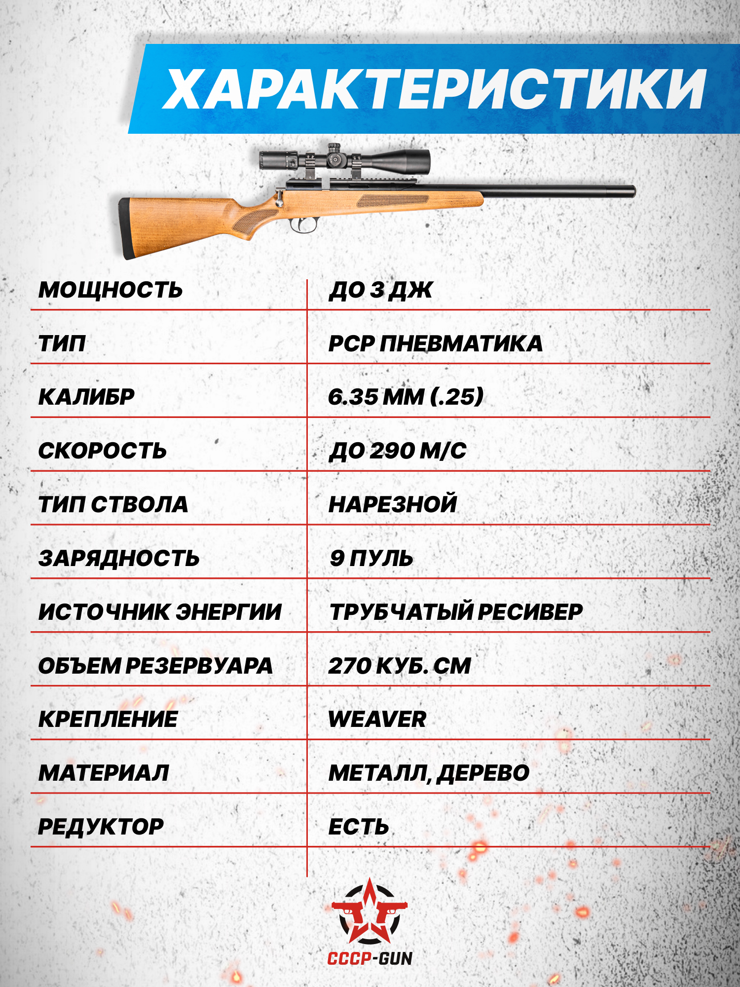 Конструктивные особенности пневматики ZR Arms позволят добиться скорости движения пульки при выходе со среза до 290 метров в секунду - причем не только при использовании легких зарядов, что помогает нивелировать значение сноса ветром. Тем не менее, для поставки на российский рынок предусмотрели комплектацию и настройку, ограничивающую дульную энергию параметром 3 Дж. Соответственно закон не препятствует свободе оборота этой PCP винтовки.