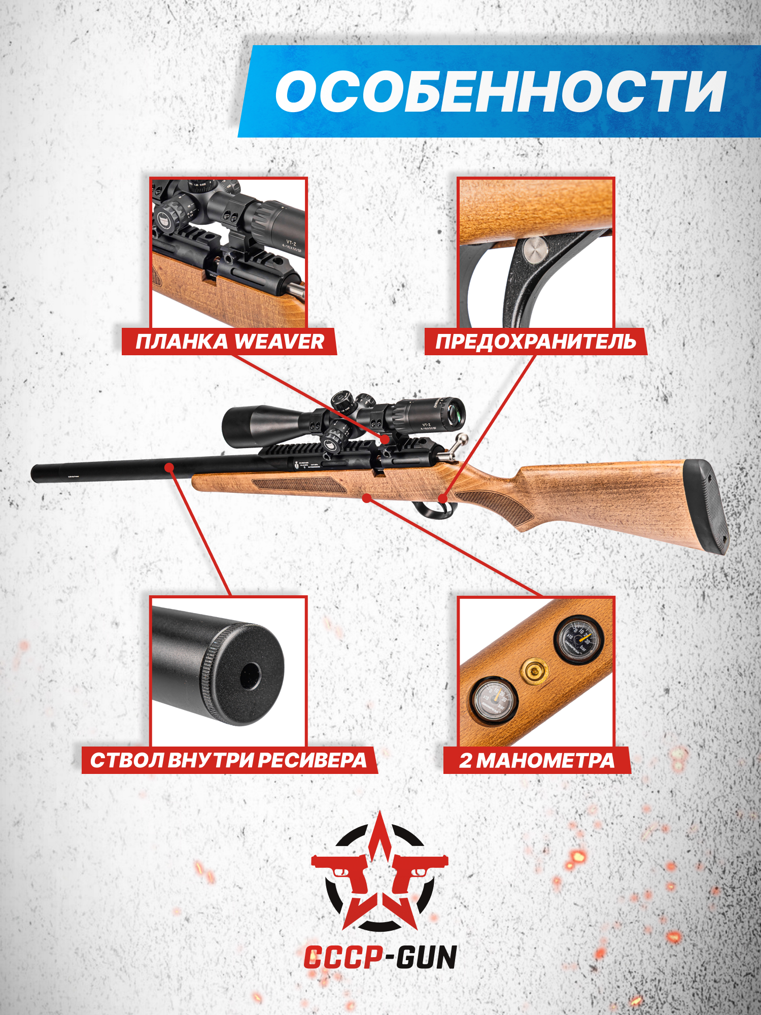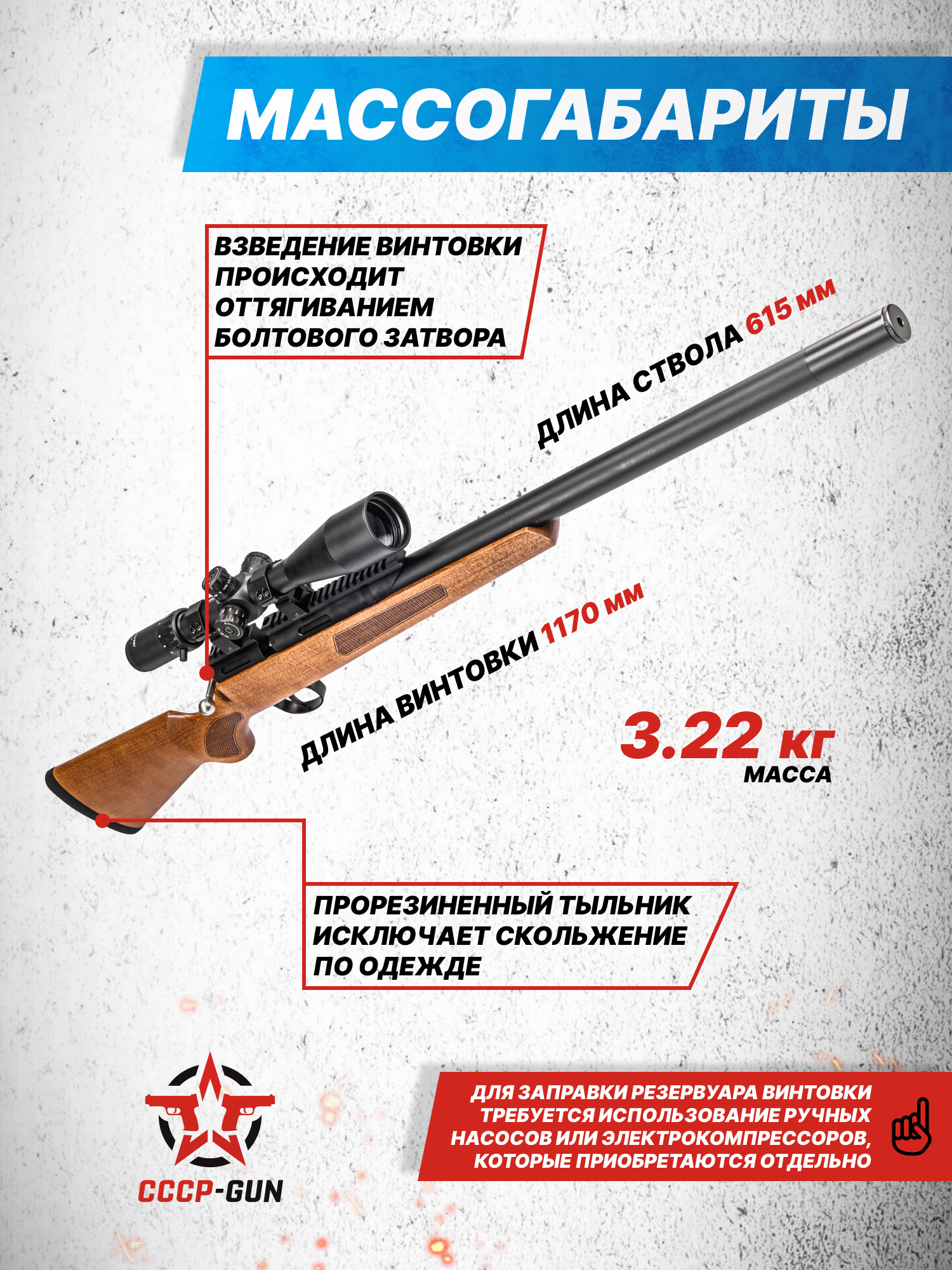 Ствол винтовки M30B хоть и отнимает объем у резервуара, но на практике это оружие предполагает возможность накачки воздуха до 270 кубических сантиметров, ввиду чего оно не будет уступать в автономности пневматике с отдельным ресивером. Более того, изготовителю удалось спроектировать и установить внутрь изделия редуктор - благодаря этому механизму количество выстрелов с заправки становится еще больше. Изделие позволит произвести накачку до давления 250 Бар - для нагнетания воздуха баллон нужен специальный ВД насос.