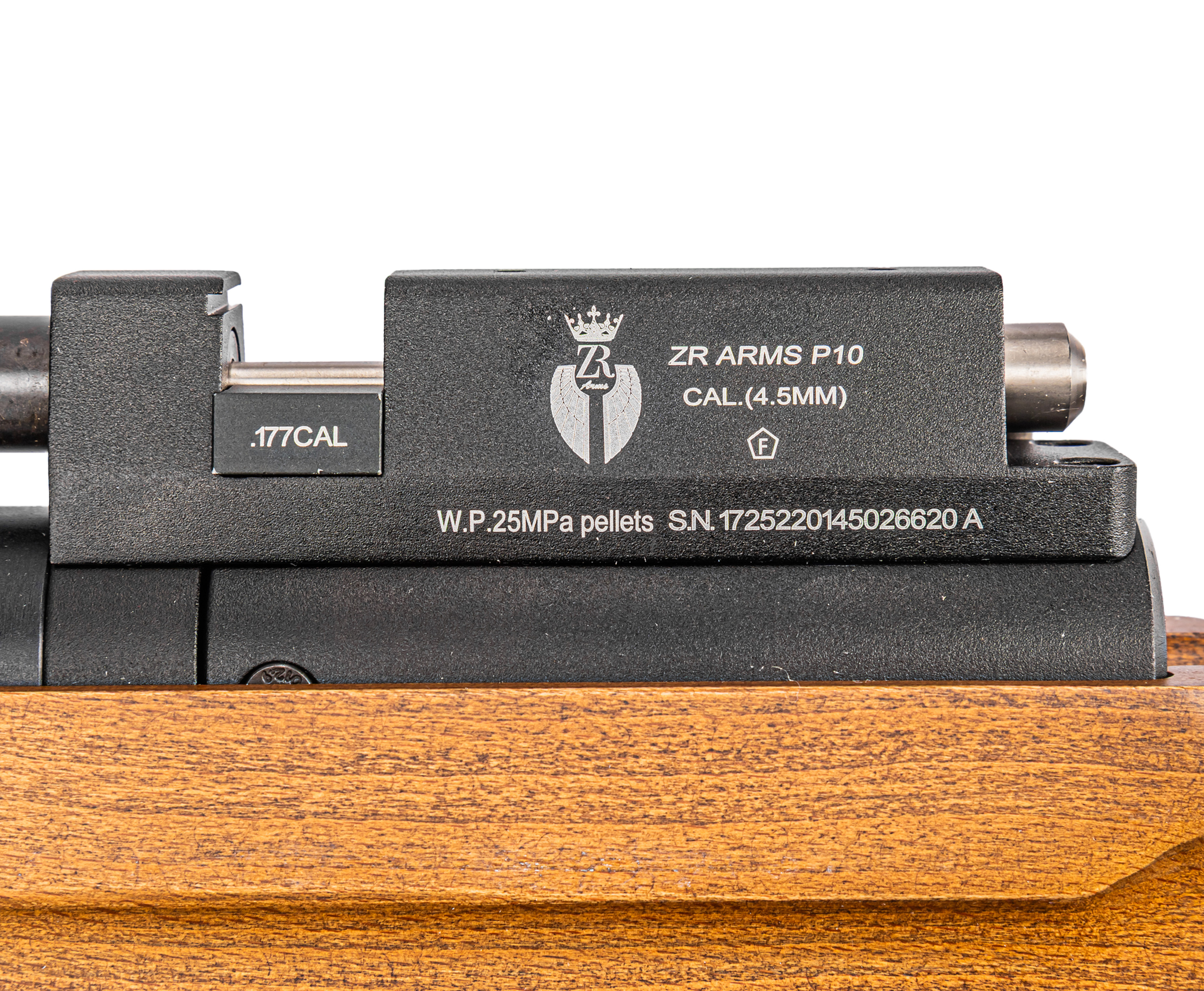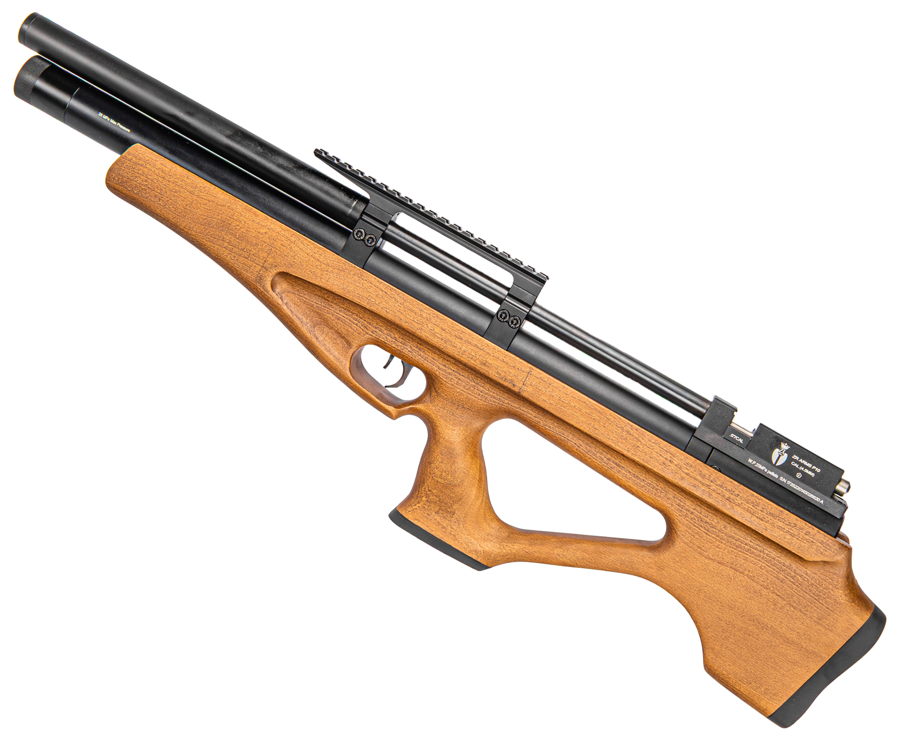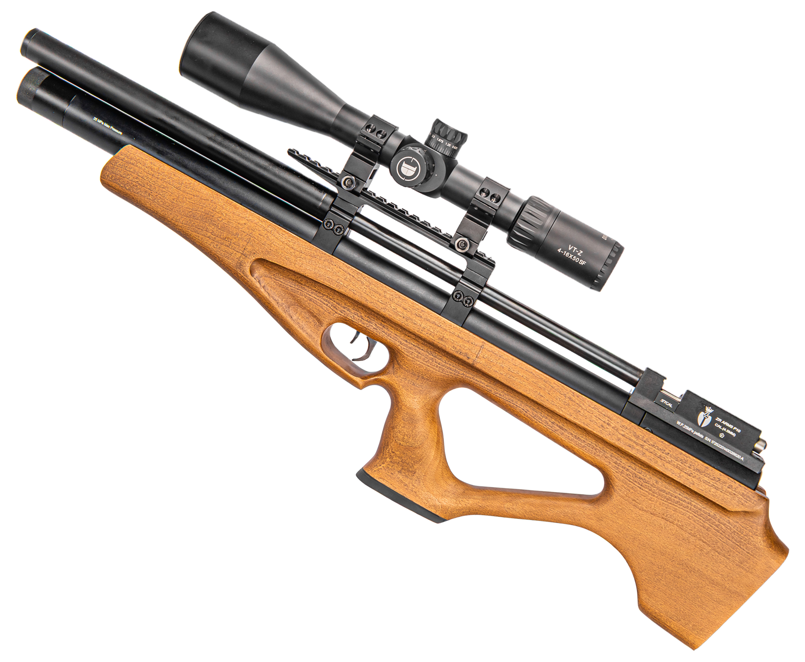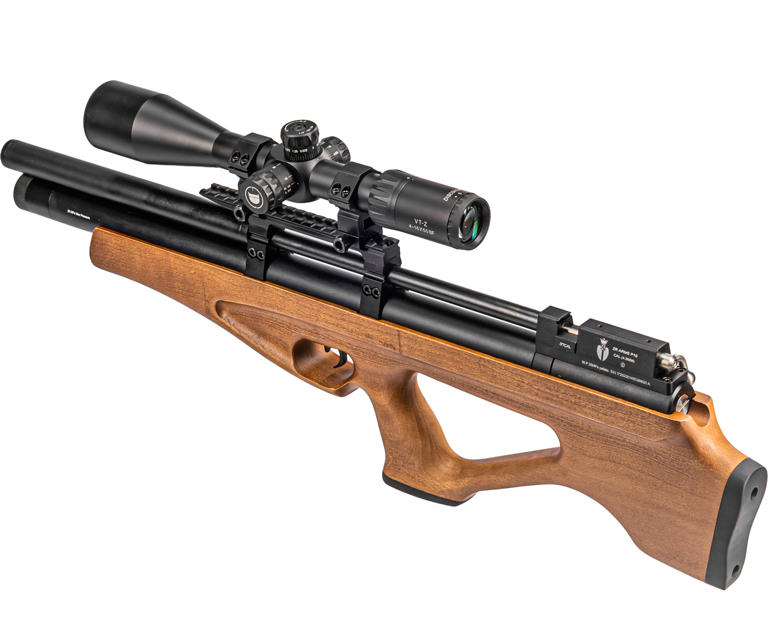 В качестве используемых боеприпасов модель ZR Arms P10 применяет свинцовые снаряды диаметром 4.5 мм. Подача снарядов организована с помощью магазина барабанного принципа действия. Для меткого поражения цели на удаленной дистанции рекомендуется дополнительно приобрести и установить оптический прицел, для монтажа которого на корпусе присутствует планка Вивер.