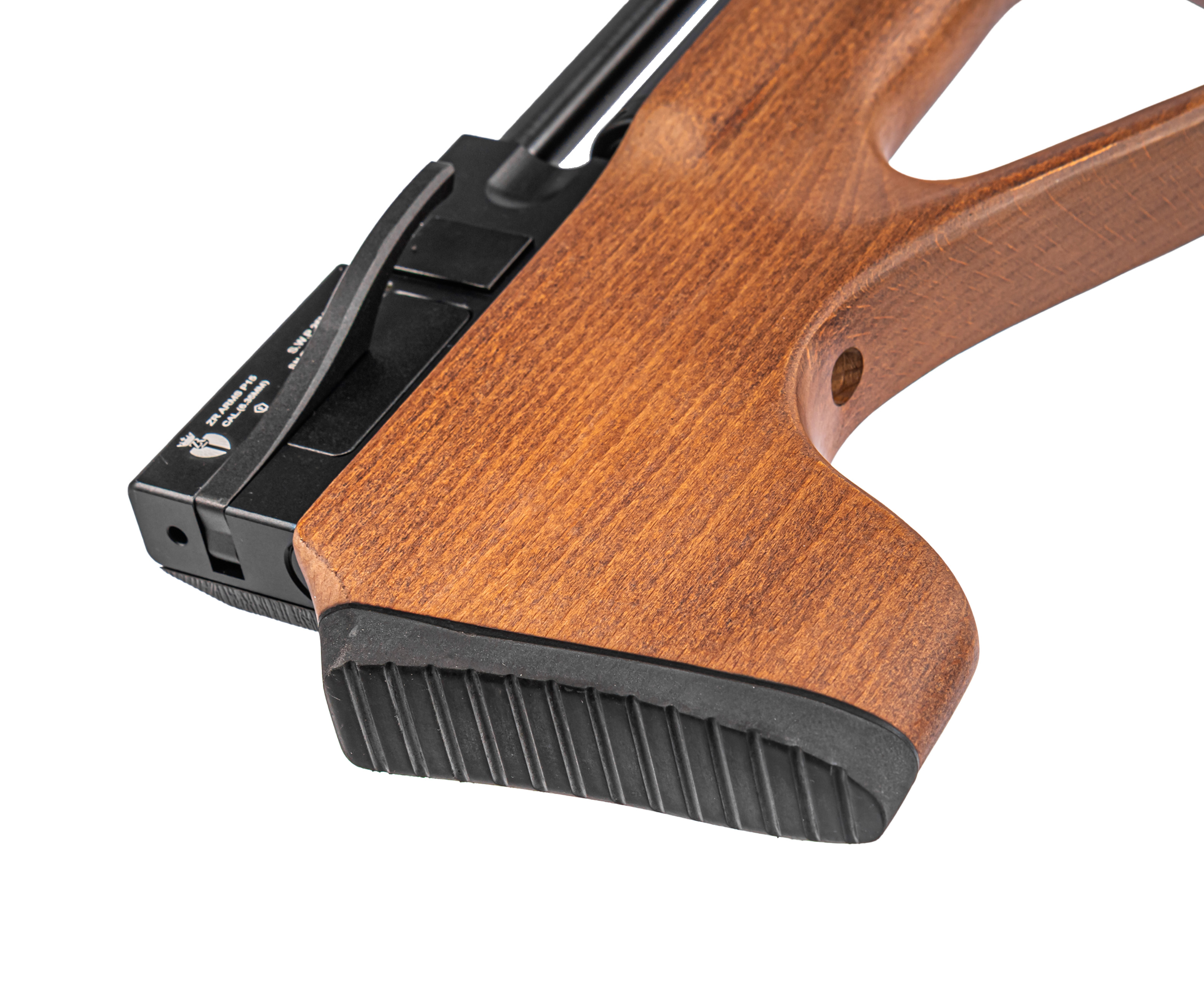 Примером экземпляра от этой компании выступает винтовка P15, которая притягивает к себе внимание не только длиной 680 миллиметров, но и привлекательным стилем. Последнее формируется посредством ложа из природного сырья - его вытачивают из древесины бука. Дополнительно поверхность покрывают защитным составом от гниения, что вдобавок выделяет рисунок массива.