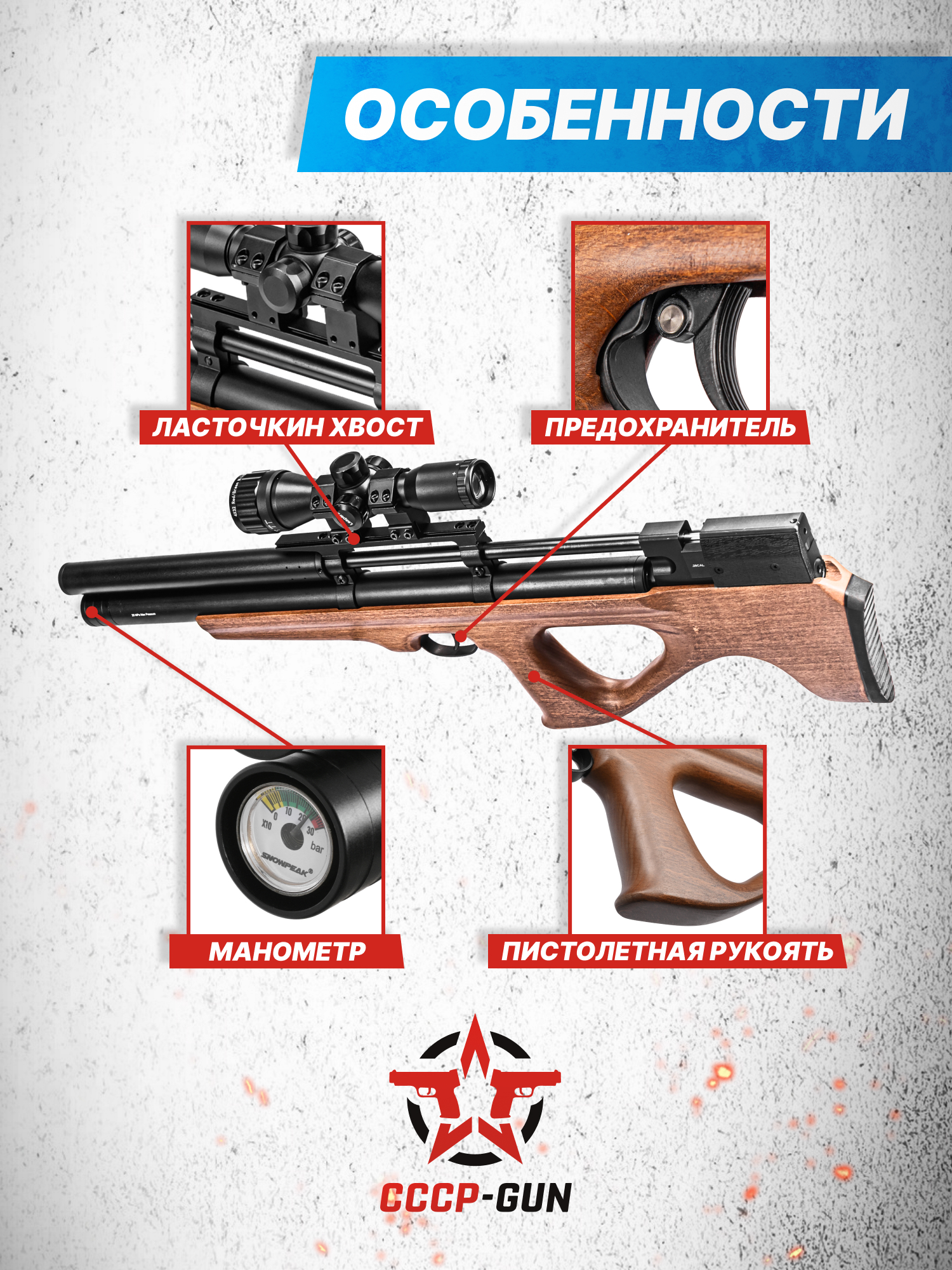 Обозреваемая винтовка сконструирована по принципу редукторного распределения воздуха. Такое решение позволило увеличить количество выстрелов за заправку и добиться их повторяемости по баллистическим данным. Предельный уровень давления при этом равняется 250 Бар - актуальный показатель возможно отслеживать через манометр.