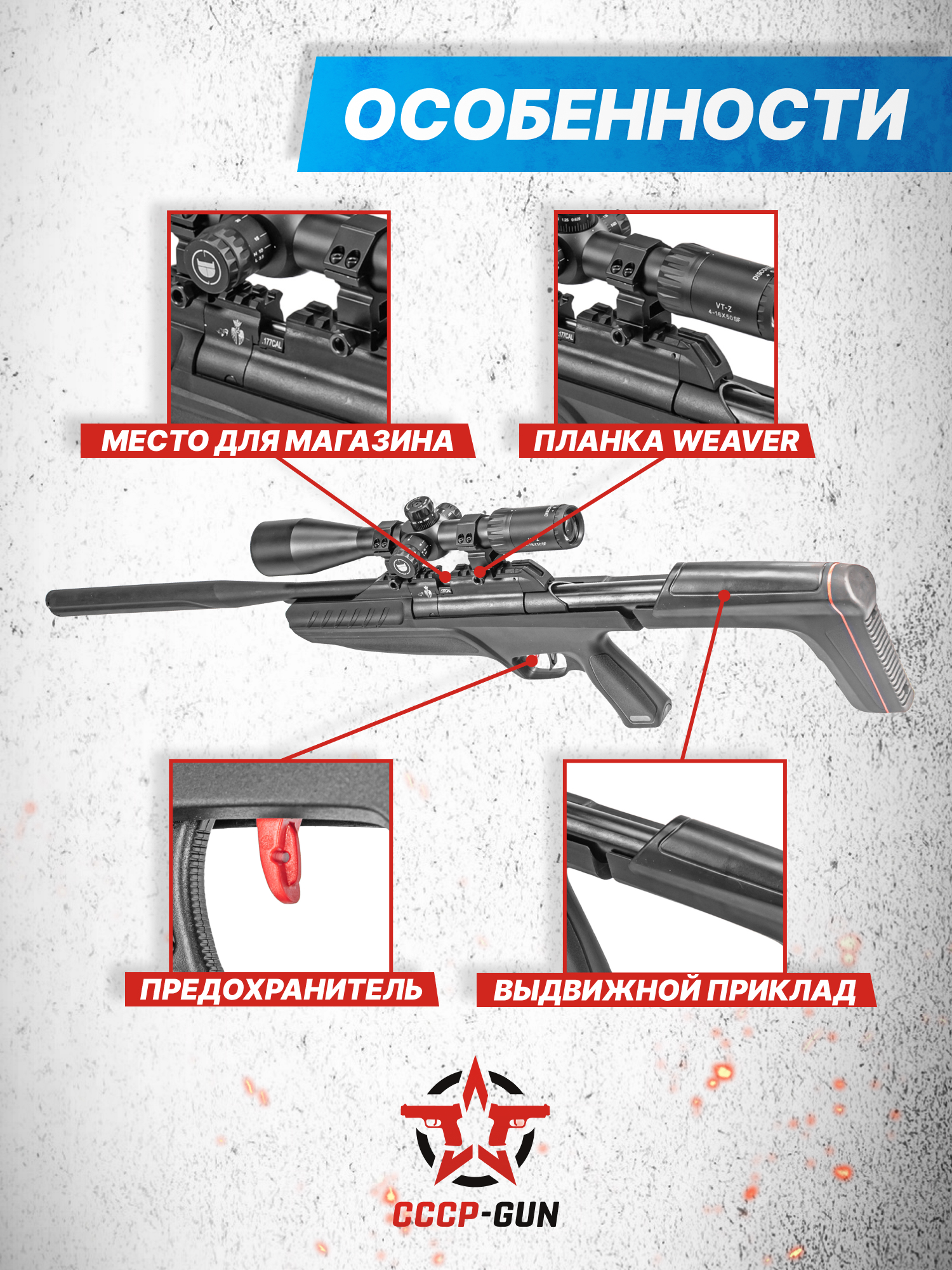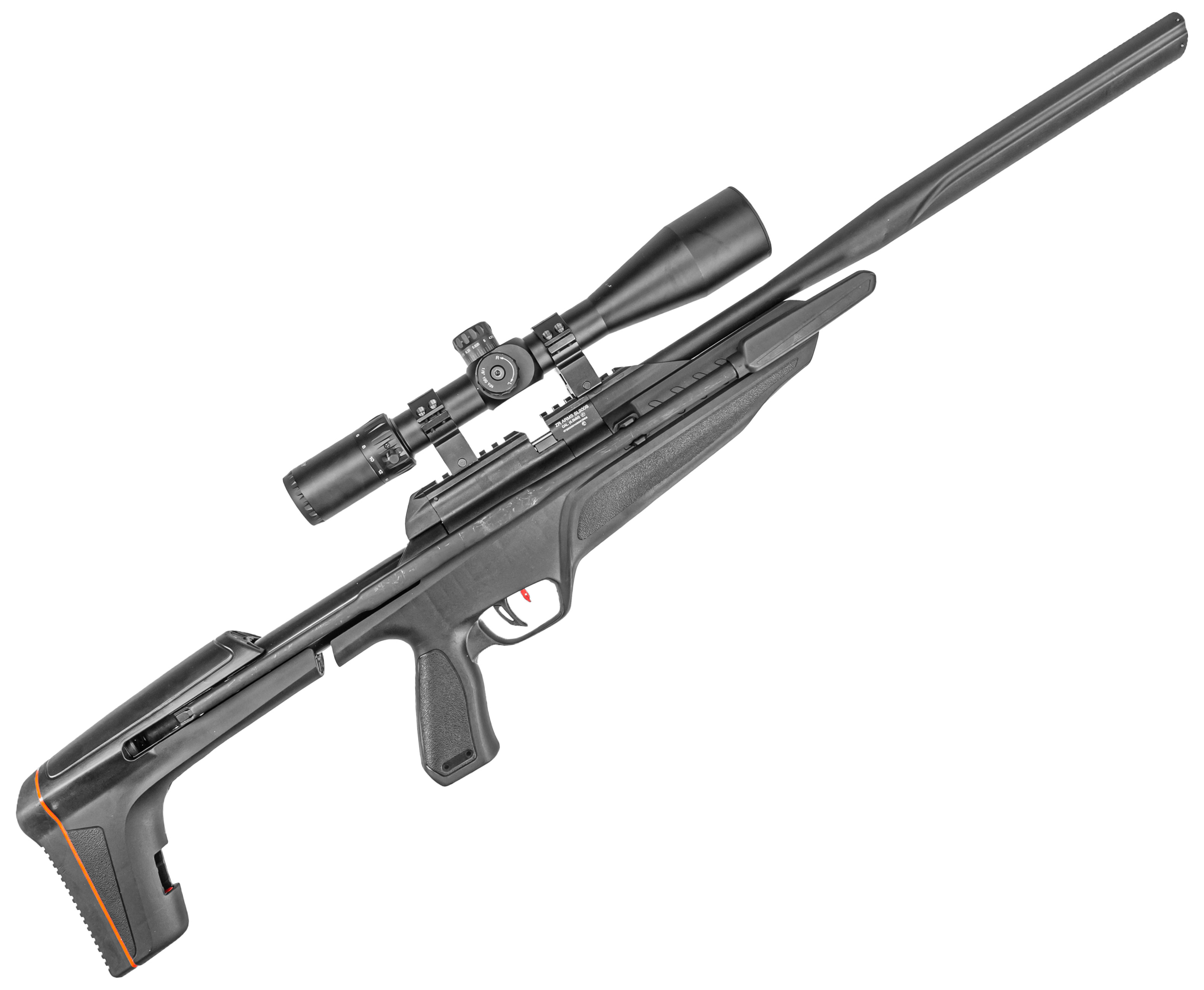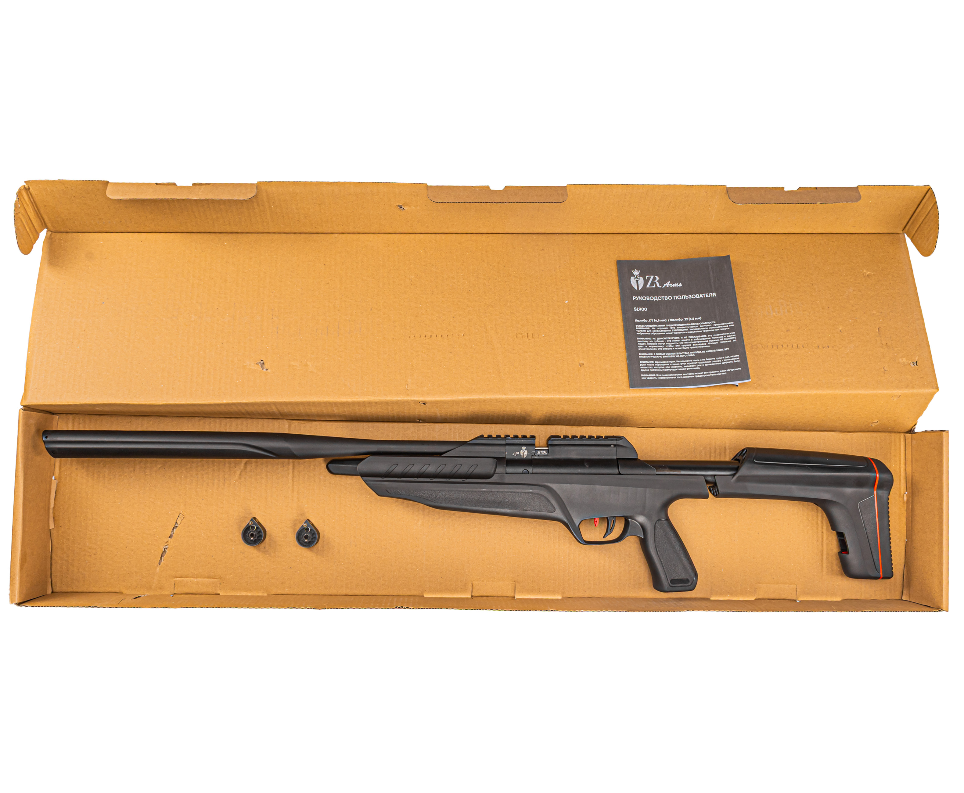 Что в действительности удачно унаследовала пневматика ZR Arms, так это подход к выбору материалов - несущую конструкцию с включенными в нее нагруженными узлами делают стальными, а фурнитуру в виде ложи и модератора с иными частями изготавливают из полимера. Масса при этом составляет 3.5 килограмма.