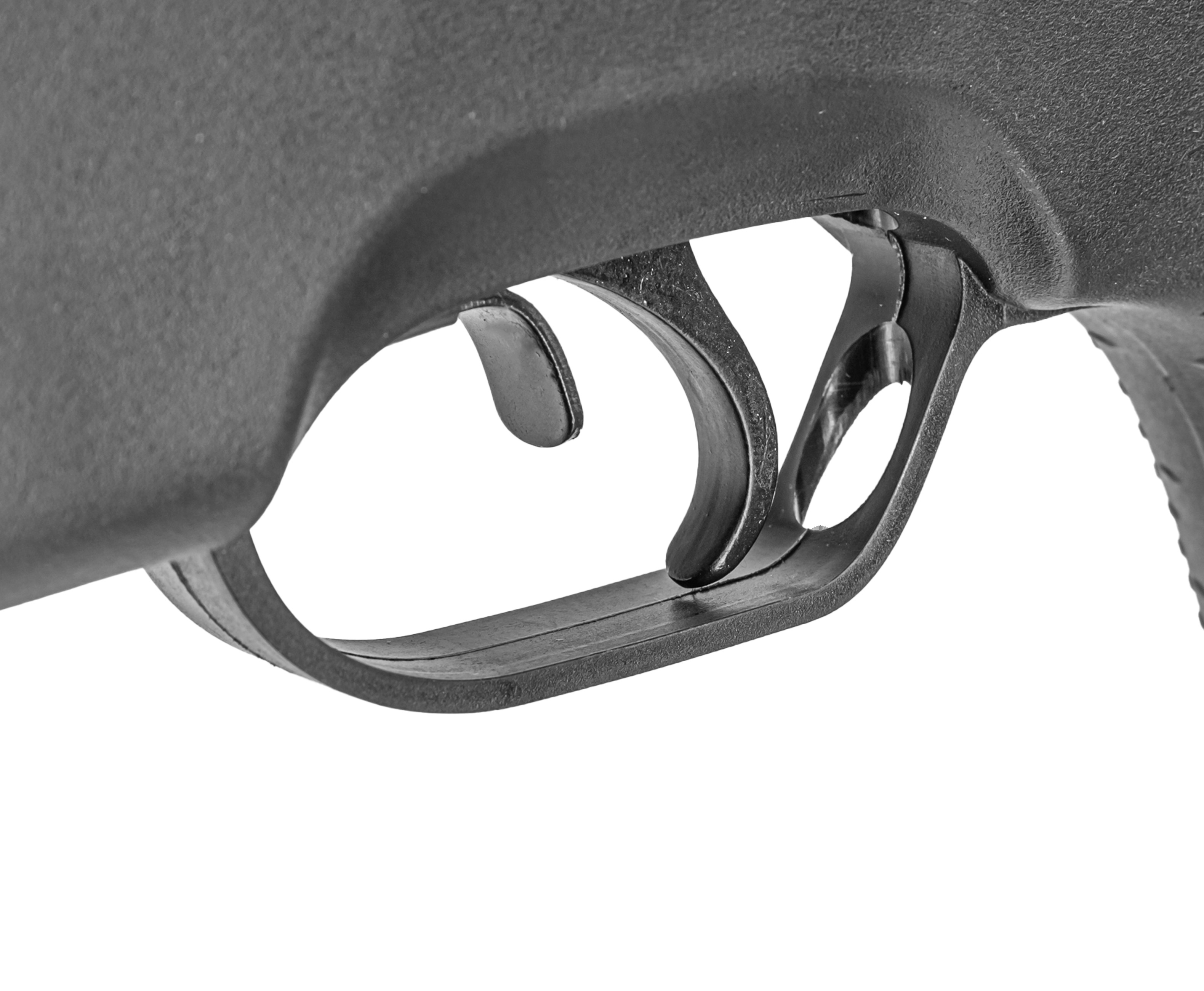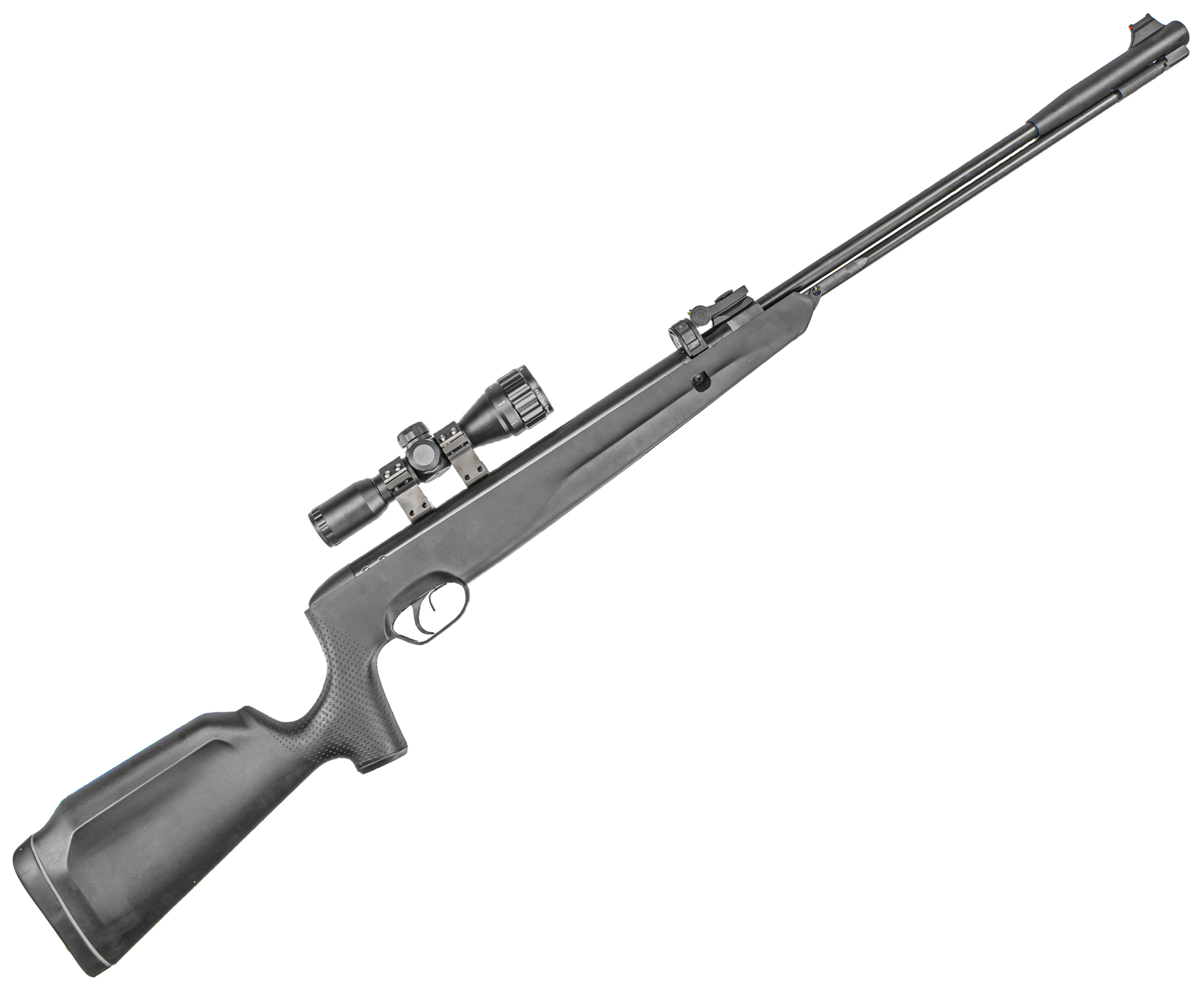 Действие ударно-спускового механизма представленной пневматической винтовки SU1200X базируется на компрессии воздуха внутри цилиндрической полости при помощи подвижного поршня. Последний приводится в действие посредством металлической пружины. Активация описанного узла выполняется с использованием нижнего рычага, что предотвращает вероятное смещение оси ствольного канала в ходе эксплуатации.