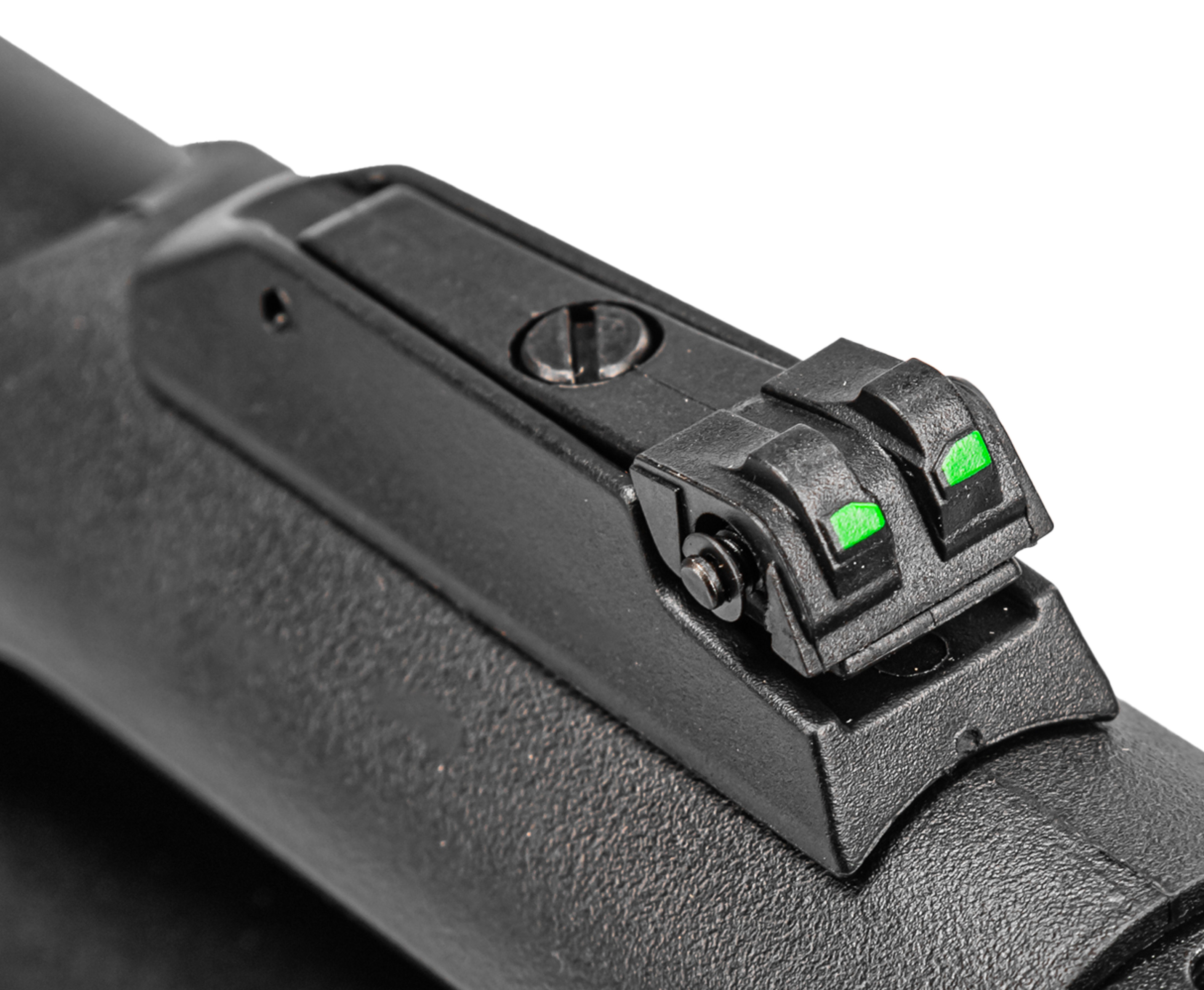 Несмотря на наличие интерфейса для оптики и коллиматоров изготовитель не стал отказываться от классической механики - за счет последней пневматические винтовки ZR Arms можно использовать сразу же, не озадачиваясь вопросом подбора прицела. Приспособления регулируемые, со специальной цветной вставкой в мушке - деталь упростит сведение при недостатке света. Ствол длиной 480 мм предполагает наличие резьбы M12x1.75 - возможна установка дульных приспособлений.