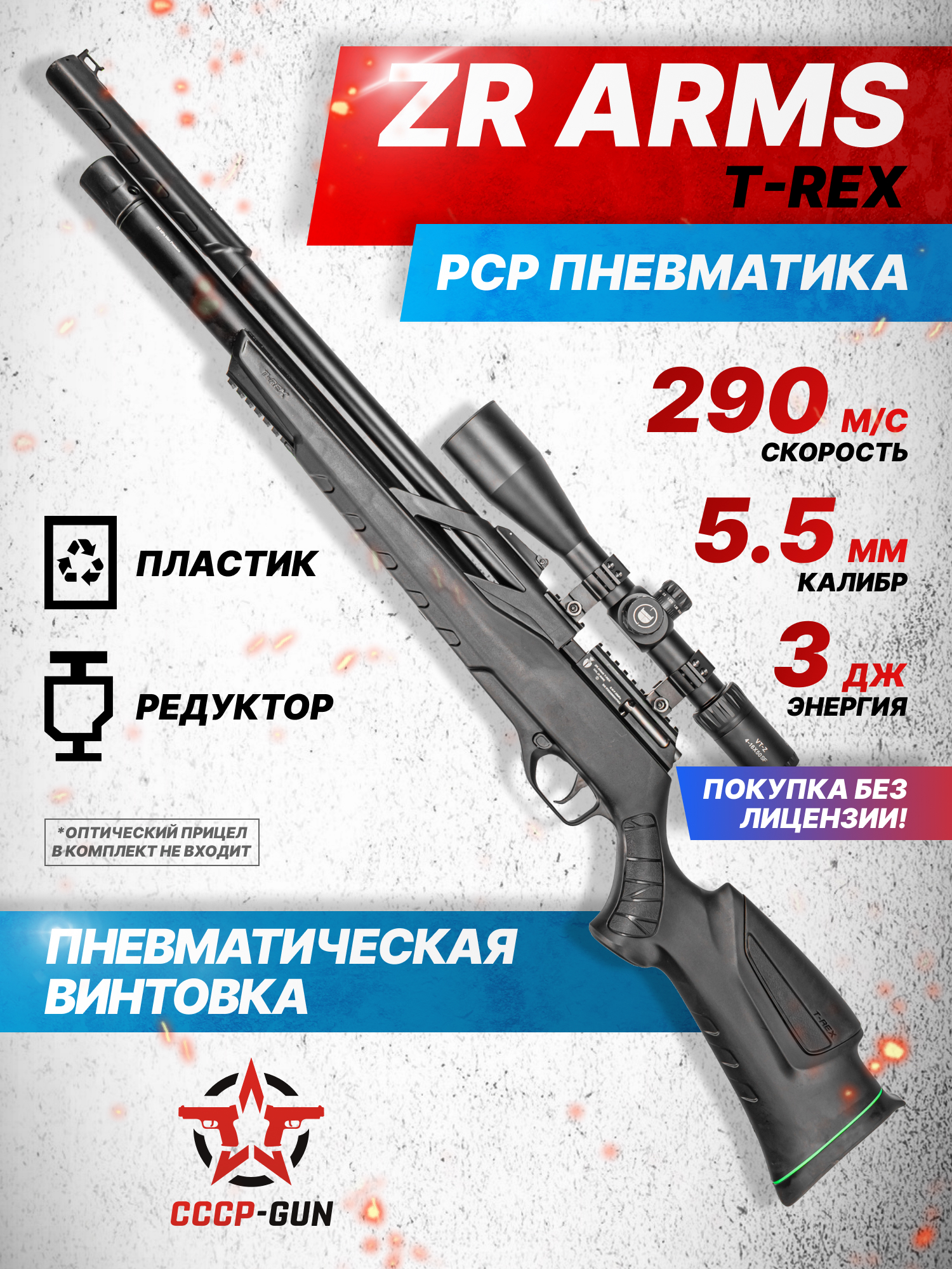 Внимание! Данная модель поставляется в разрешенной мощности для свободного приобретения на территории Российской Федерации. При этом в модели имеется возможность увеличения мощности путем замены части деталей или настройки конструкции, однако не стоит забывать о Федеральном законе «Об оружии» № 150 - ФЗ. В случае необходимости, опираясь на данный закон и руководствуясь им, возможно, потребуется получить разрешение от ЛЛР ГУ МВД России после вмешательства в конструкцию.