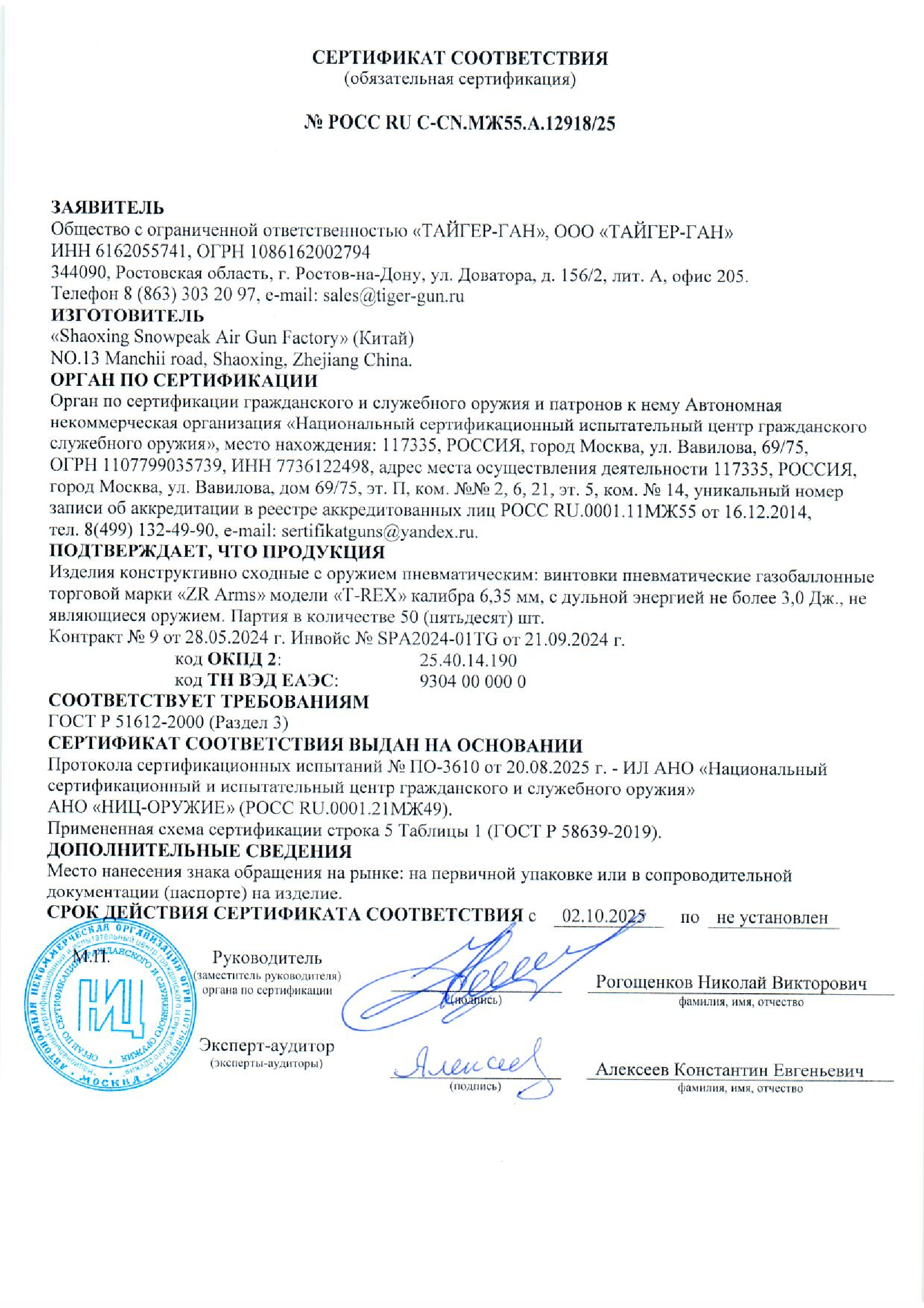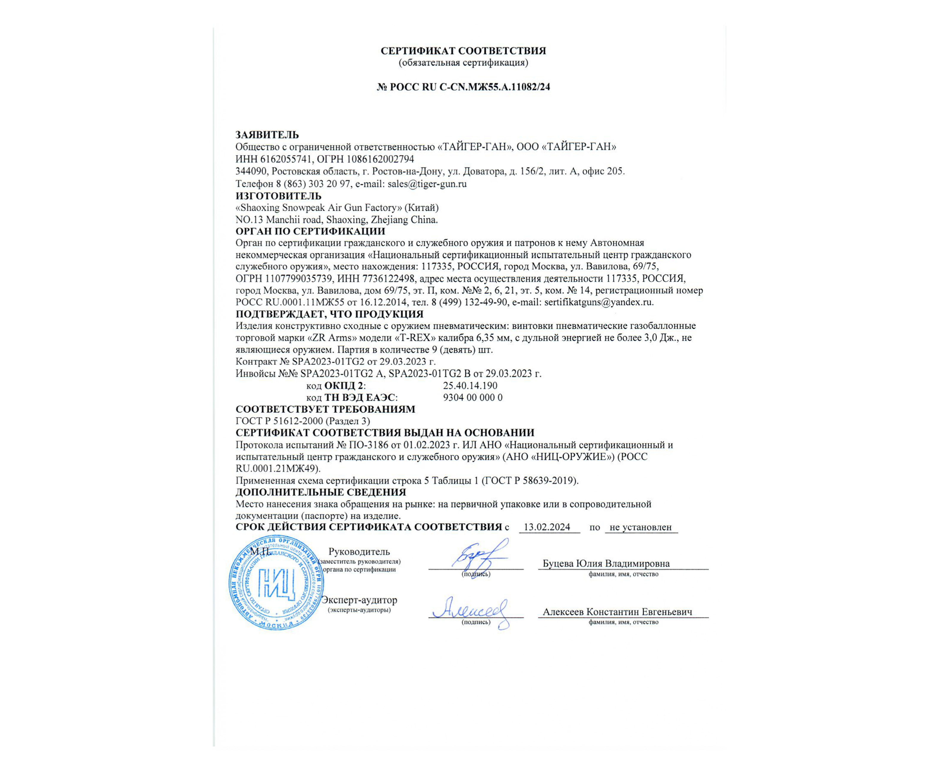 В этой категории выделяются модели линейки T-Rex, перед конструкторской группой которой стояла цель улучшения эргономических показателей без компромиссов в отношении технических параметров. В результате изделие обладает сравнительно небольшой массой - вес экземпляра составляет 3.15 килограмма, что меньше многих полноразмерных винтовок аналогичного калибра 6.35 миллиметра. В конкретном случае это достигнуто ввиду применения полимерного материала для изготовления ложи.