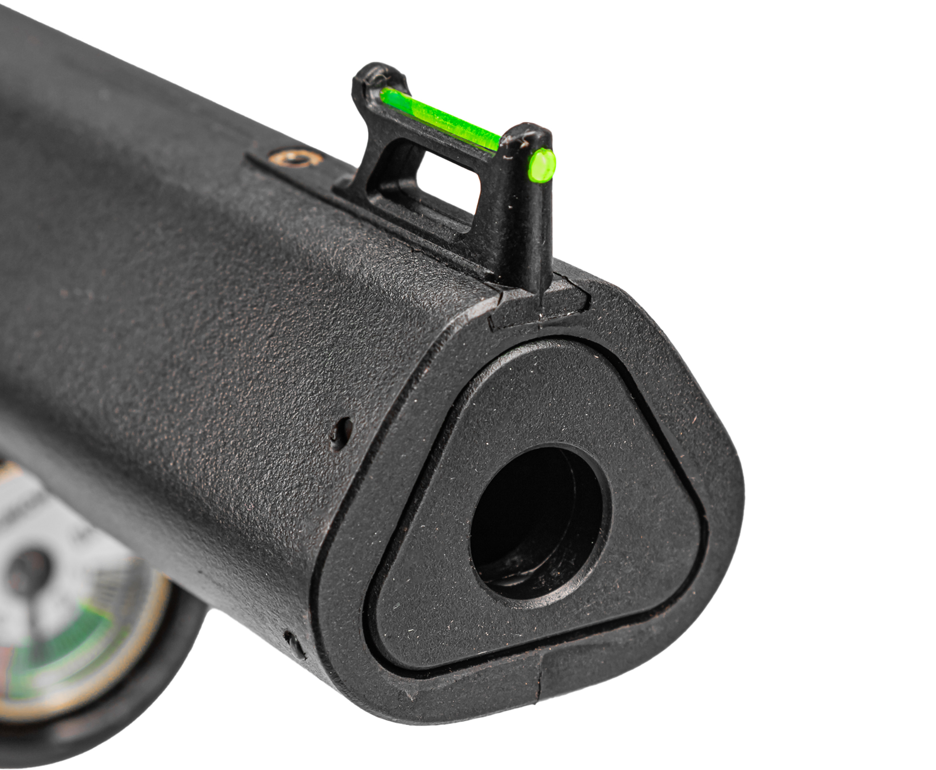 Винтовка ZR Arms PCP оборудована трубчатым резервуаром в рамках концепции облегчения конструкции - объем ресивера составляет 230 кубических см. Заполнение воздухом выполняется посредством заправочного порта рядом с манометром - рекомендуемый уровень давления не должен превышать 250 Бар для корректной работы пневматики.