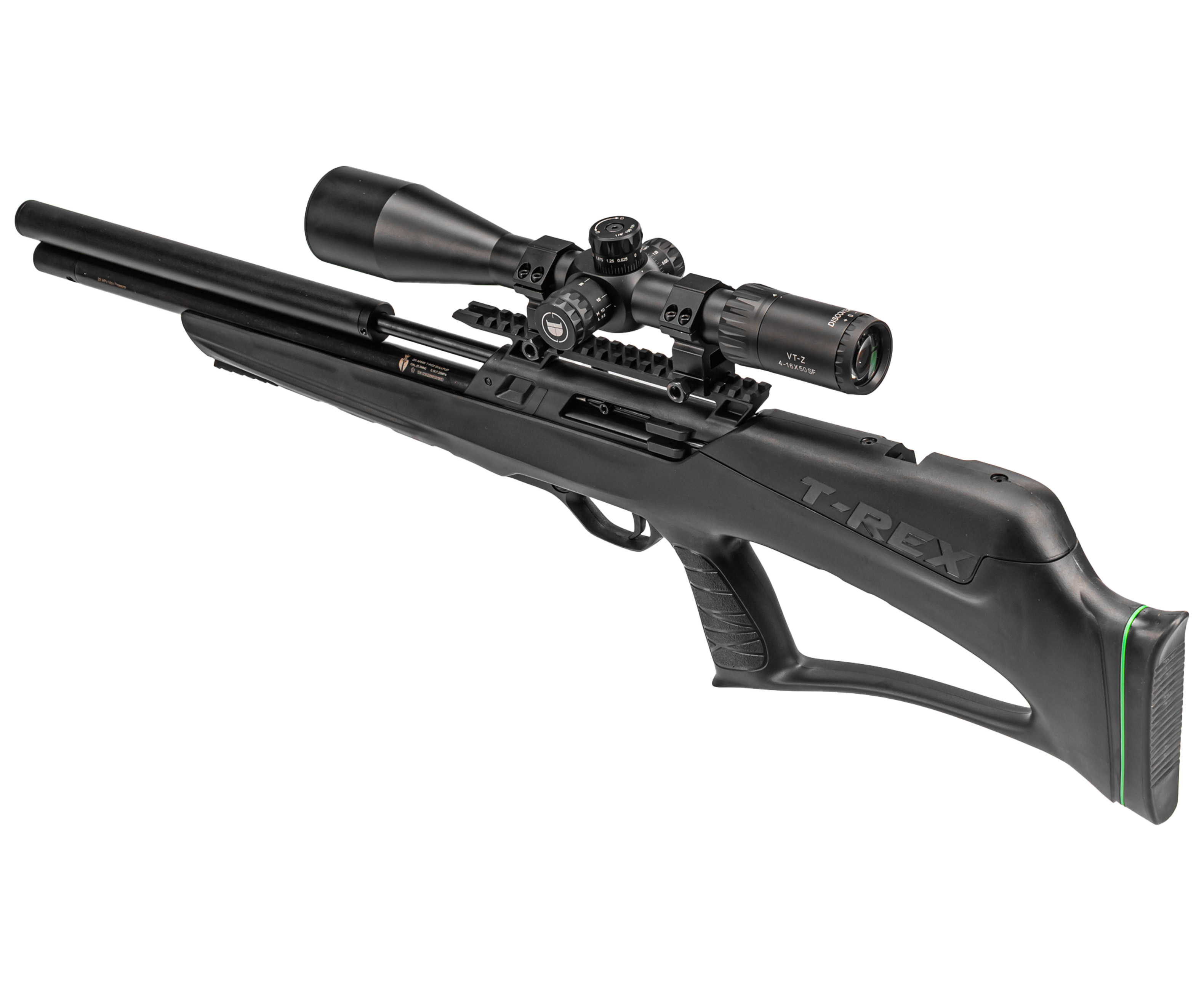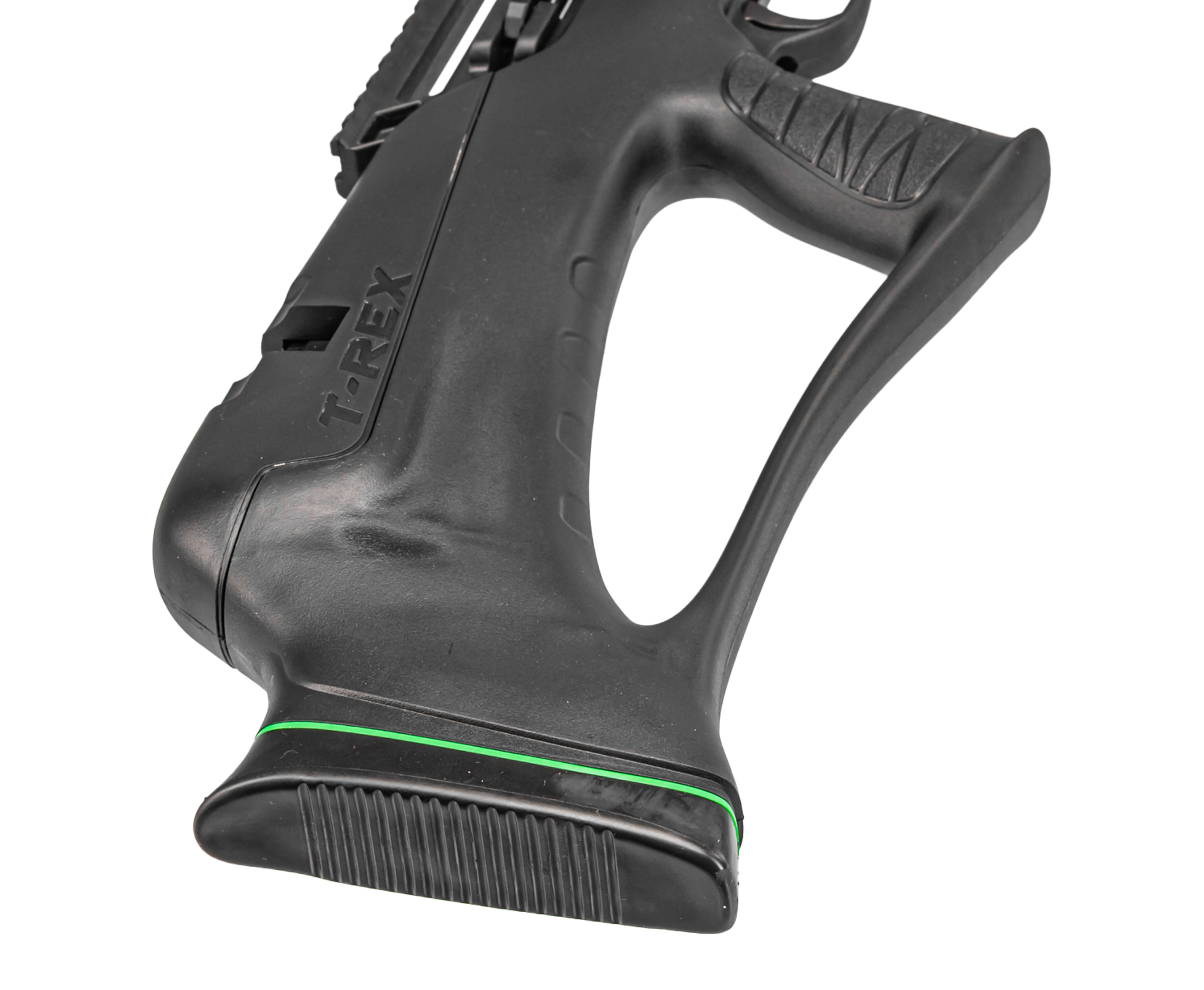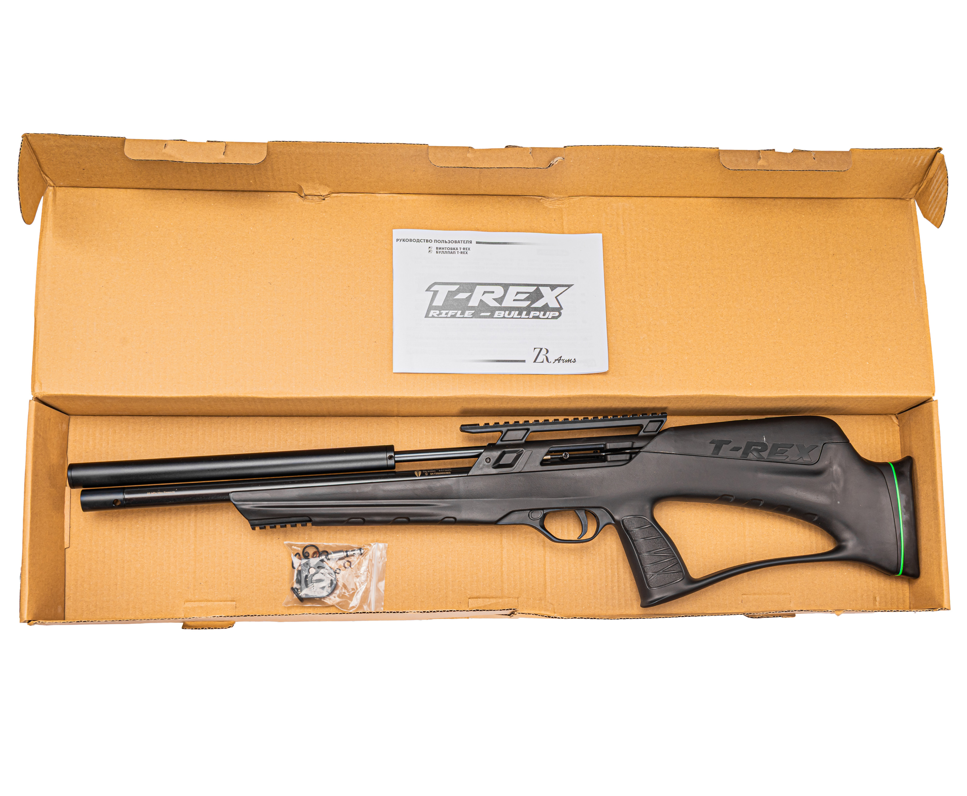 Фирма сосредоточена на выпуске пневматического оружия со всевозможными принципами действия, включая системы с предварительной накачкой - отмеченное направление представлено серией T-Rex. Рассматриваемая модификация выполнена по компоновке BullPup, благодаря чему образец обладает уменьшенными габаритами. Полный размер представленной ZR Arms винтовки не превышает 840 мм.