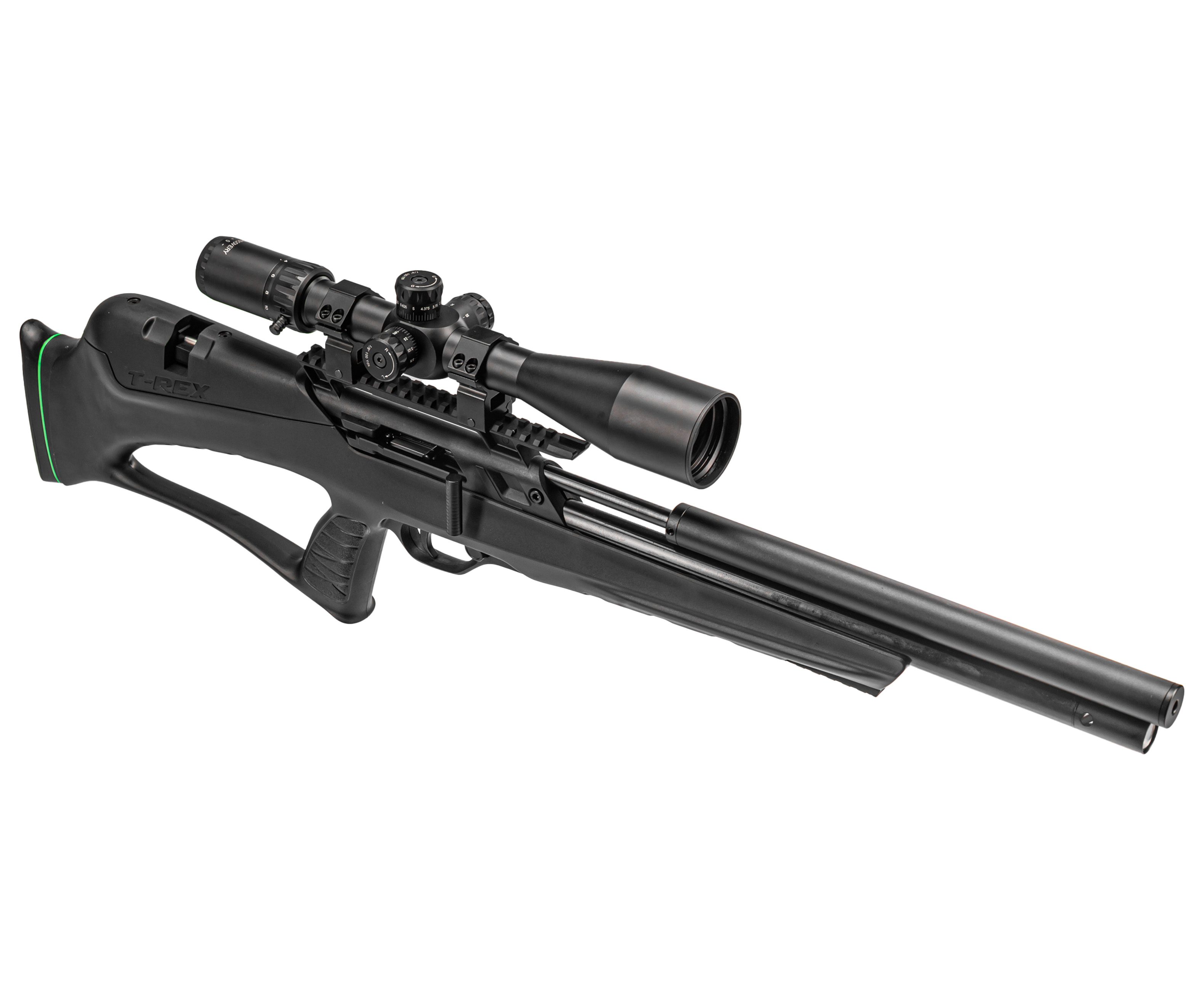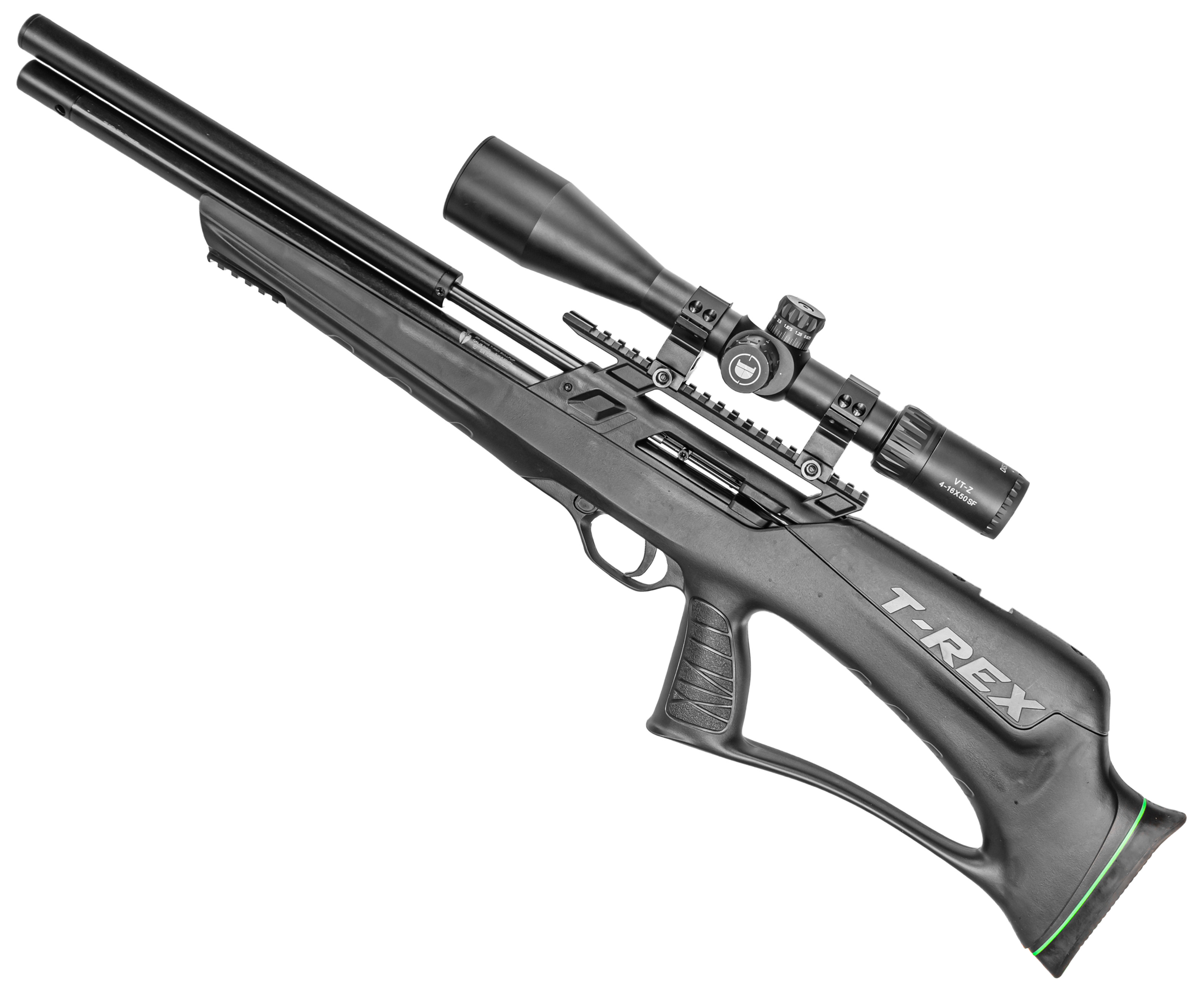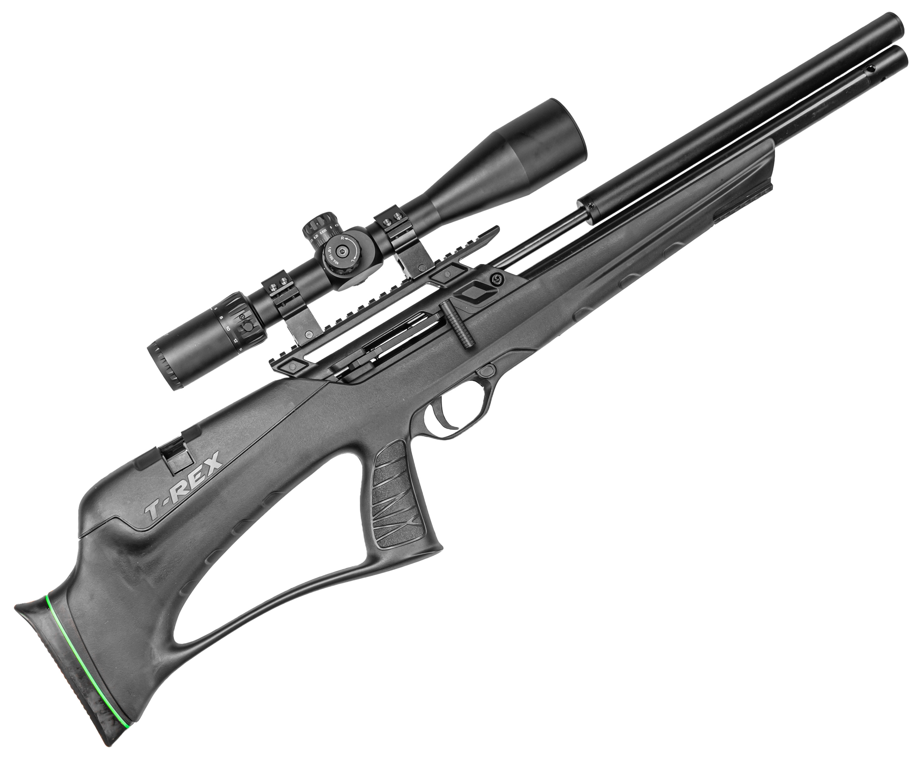Фирма сосредоточена на выпуске пневматического оружия со всевозможными принципами действия, включая системы с предварительной накачкой - отмеченное направление представлено серией T-Rex. Рассматриваемая модификация выполнена по компоновке BullPup, благодаря чему образец обладает уменьшенными габаритами. Полный размер представленной ZR Arms винтовки не превышает 840 мм.