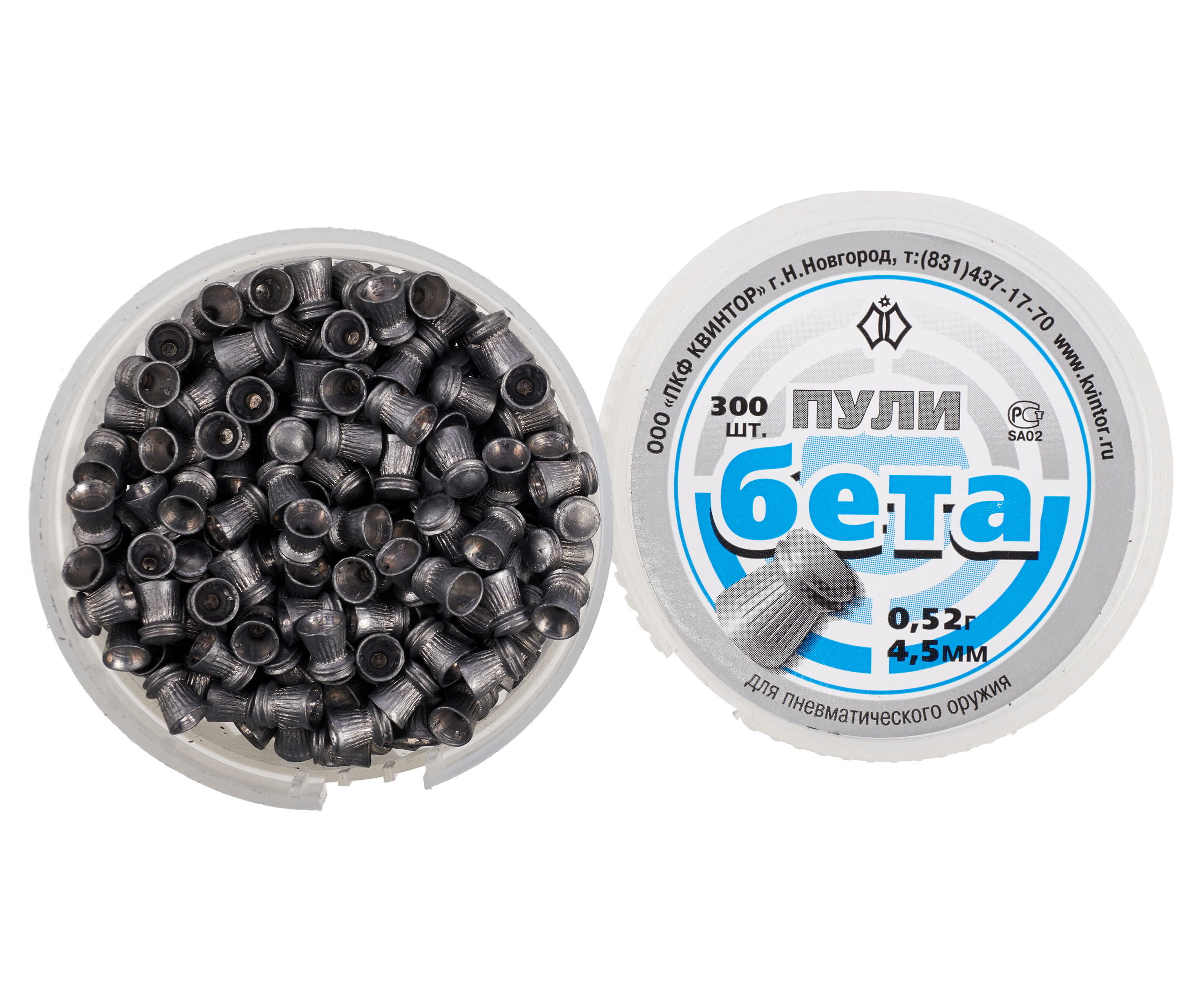 Масса одного снаряда составляет 0.52 грамма. Материал пули Квинтор 4.5 мм - свинец, который адаптируется к нарезам ствола и не повреждает его канал. Плавное сопряжение с нарезкой гарантирует стабильную подачу и плотное прилегание.