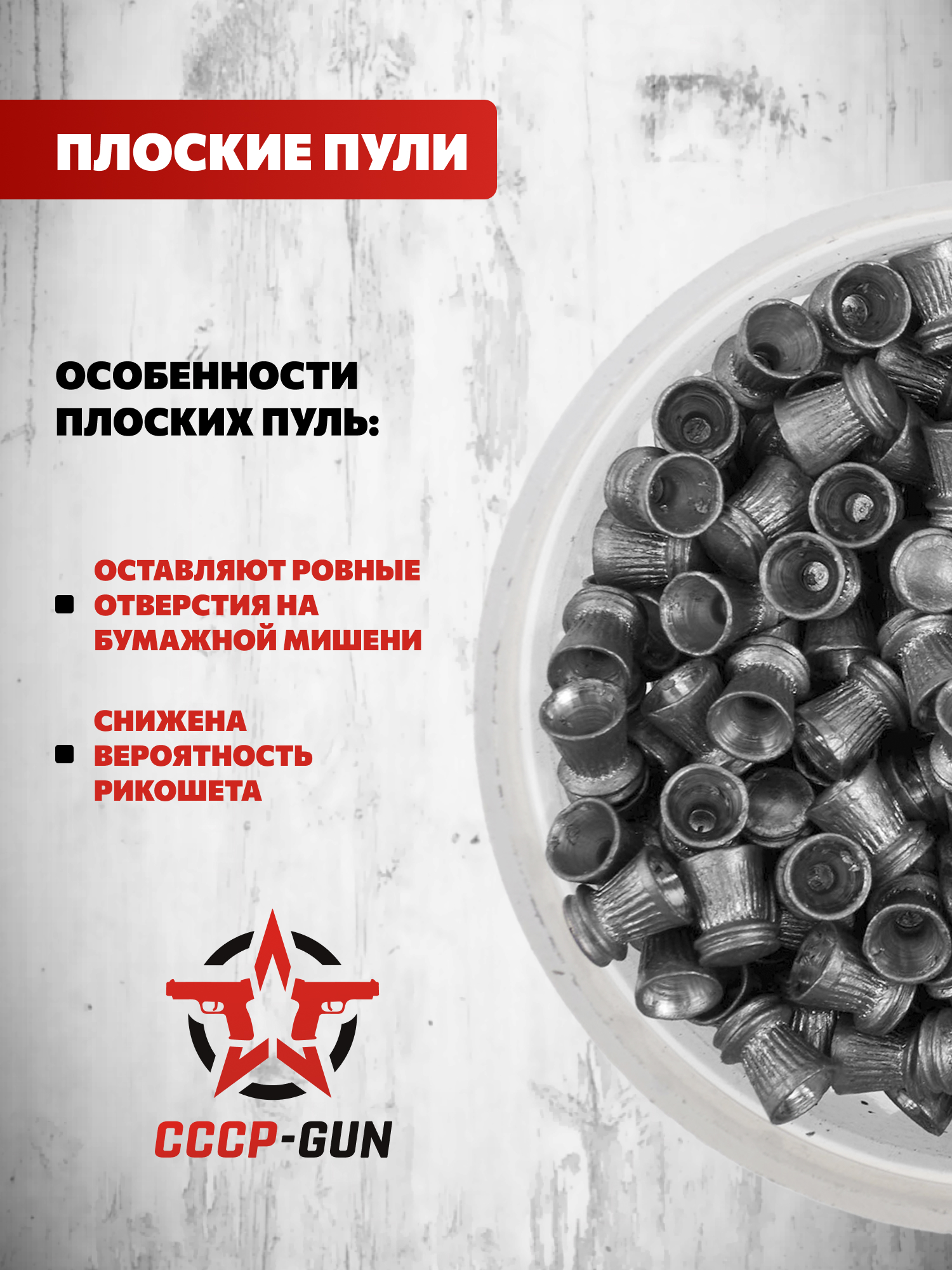 Модель калибра 4.5 мм оснащена плоской головной частью - это классическое решение для точной стрельбы по бумажным мишеням. При попадании пуля оставляет четкие круглые отверстия, благодаря которым удобно вести подсчет результатов.