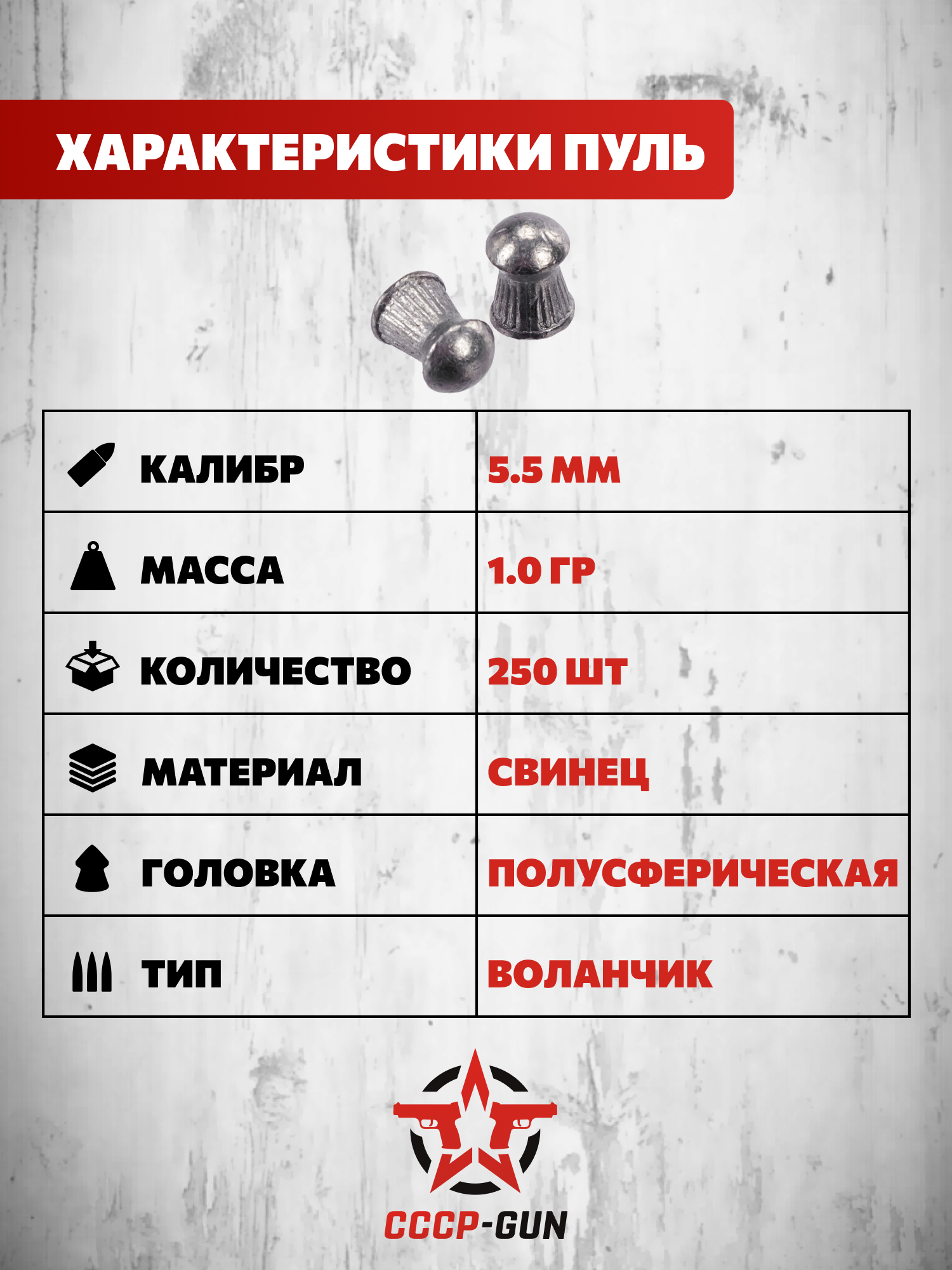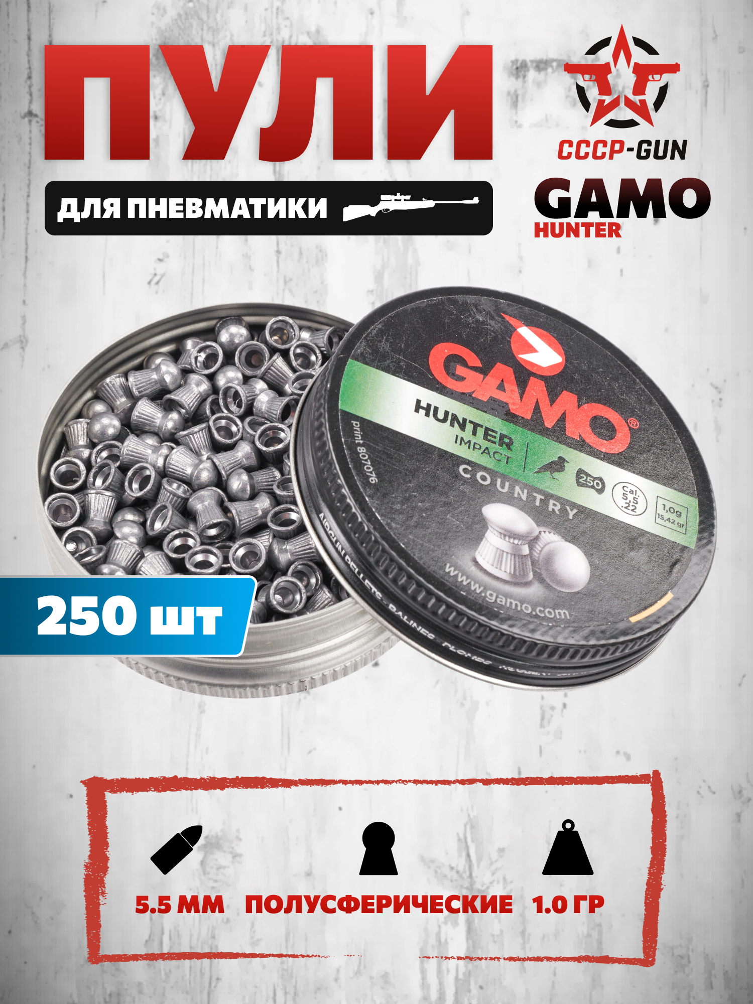| Комплект поставки | Пули - 250 шт, упаковка |