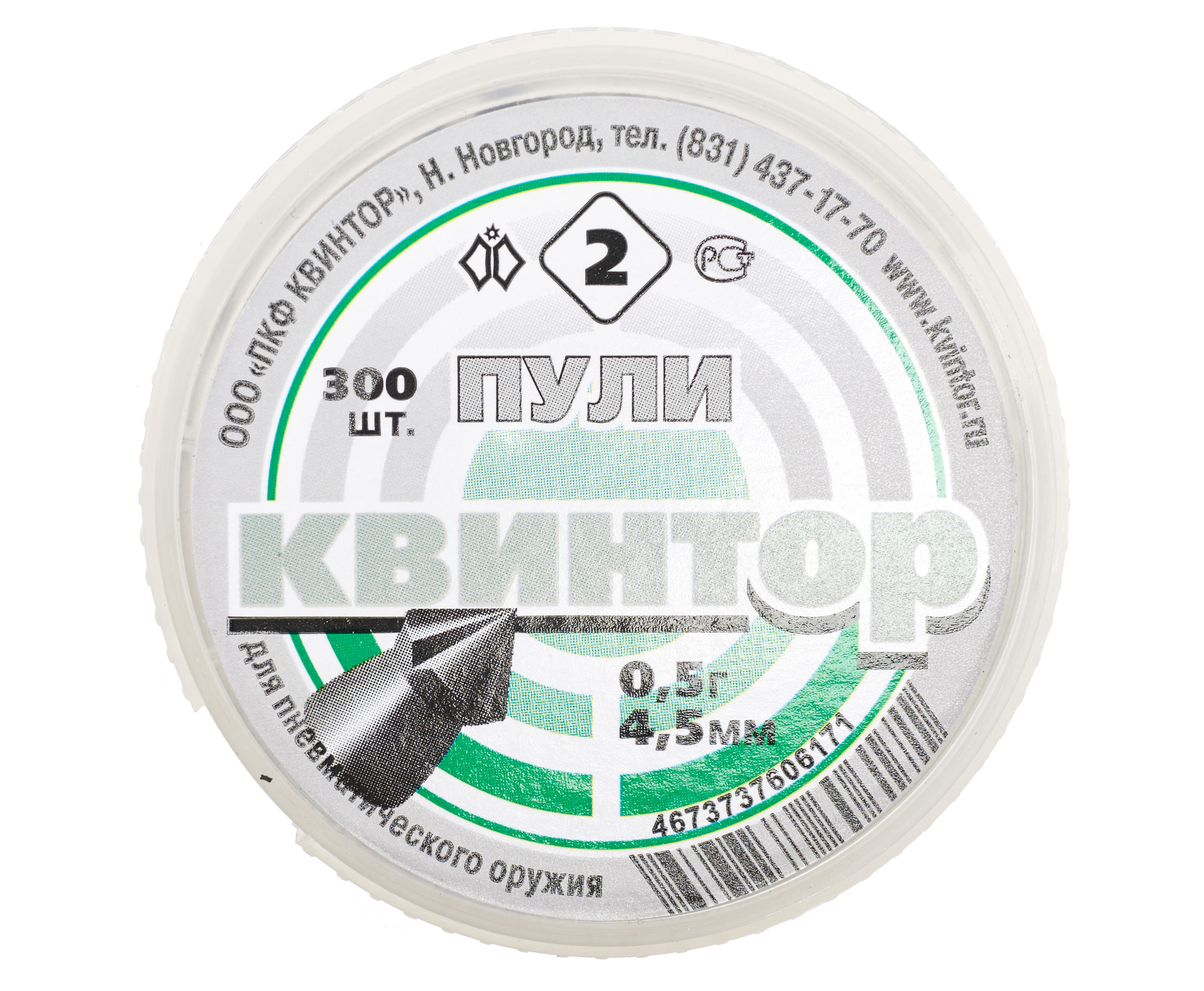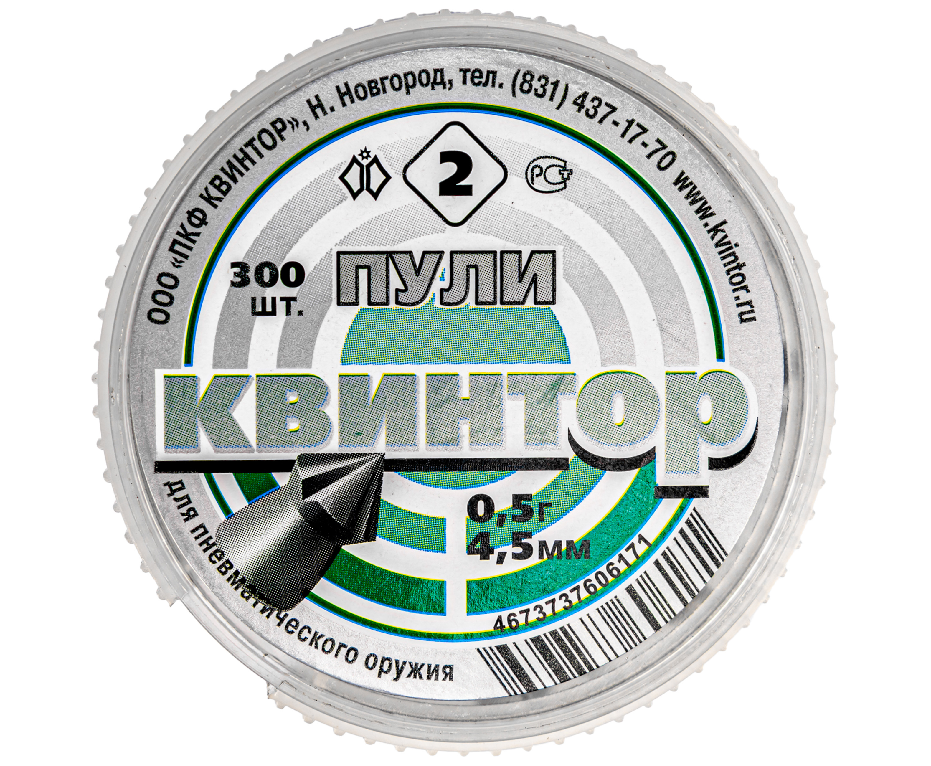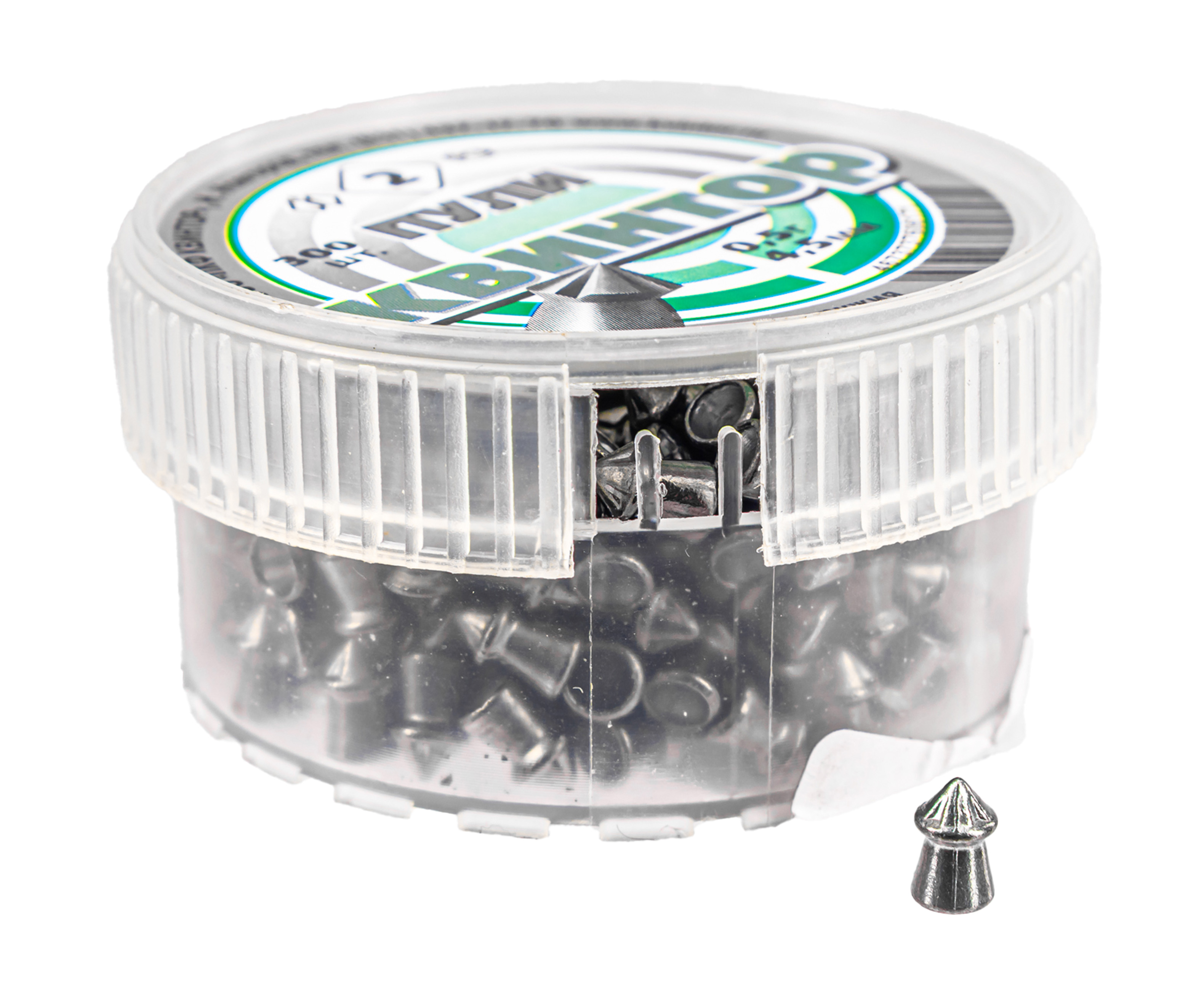 Коническая форма головной части пульки Квинтор калибра 4.5 мм улучшает аэродинамику. За счет острого профиля снаряд легче пробивает мишень, а траектория остается ровной даже при слабом выстреле. Это важно при использовании пневматического оружия малой и средней мощности.