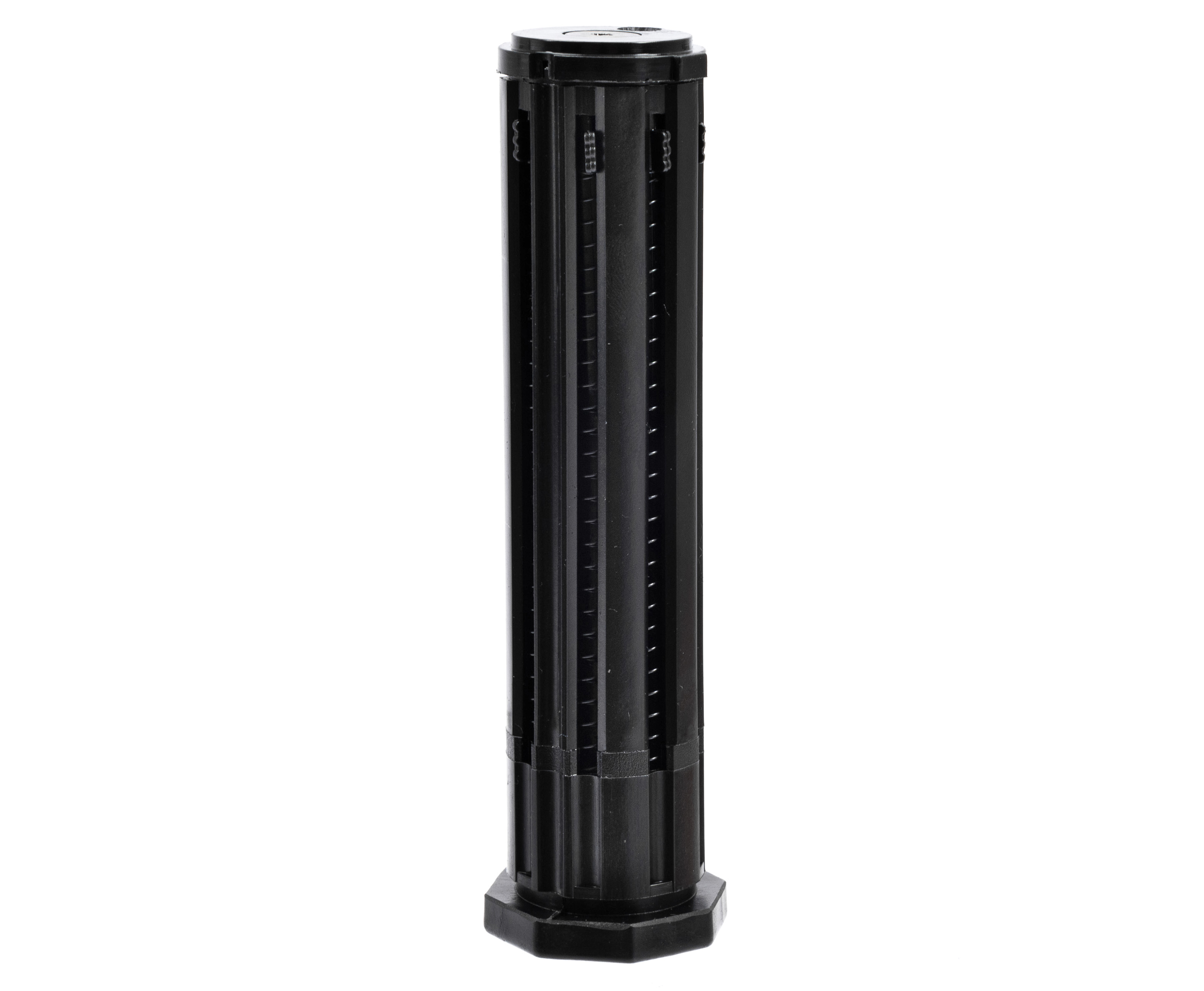 Роль боеприпасов выполняют стальные пули калибром 4.5 миллиметров сферической формы вида BulletBalls. Одновременно внутрь 8-рядного магазина можно поместить 120 шариков, чего будет хватать для продолжительной стрельбы. Такой боезапас выбран не случайно, поскольку при использовании двух газовых баллонов, пистолет делает как раз сто двадцать выстрелов. Для перезарядки необходимо провернуть пятку магазина до совпадения двух белых точек, после чего устройство получится извлечь.