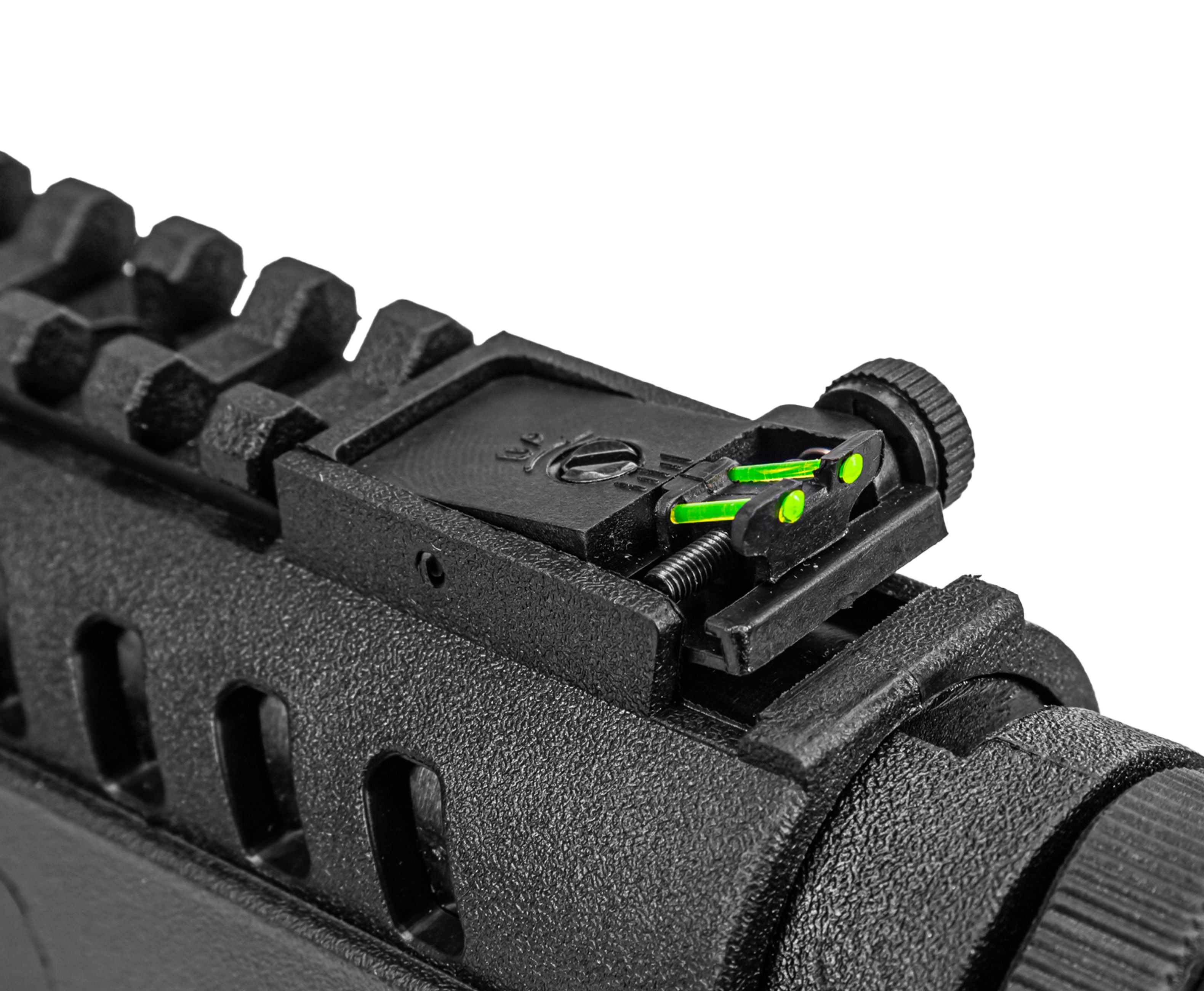 Помимо стандартных механических прицельных приспособлений здесь также присутствует крепежная площадка с направляющими - последние формируют распространенную платформу, соответствующую стандарту Вивер 22 миллиметра. Указанная база предназначается для монтажа оптических прицелов или коллиматорных устройств для поражения мишеней на большем удалении.