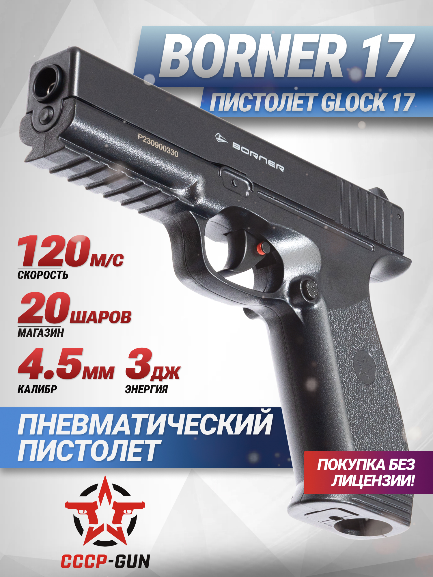 Классифицируется обозреваемая пневматика Борнер 17 Глок как конструктивно схожее с оружием изделие, для покупки которого стрелку не потребуются специализированные лицензионно-разрешительные бумаги. Указанному способствует соблюдение изготовителем требований российского законодательства за счет того, что дульная энергия выстрела из оружия не превышает отметку в 3 Дж. При этом, производитель отмечает, что стандартный стальной шарик калибра 4.5 мм при выстреле разгоняется до скорости в 120 метров в секунду.