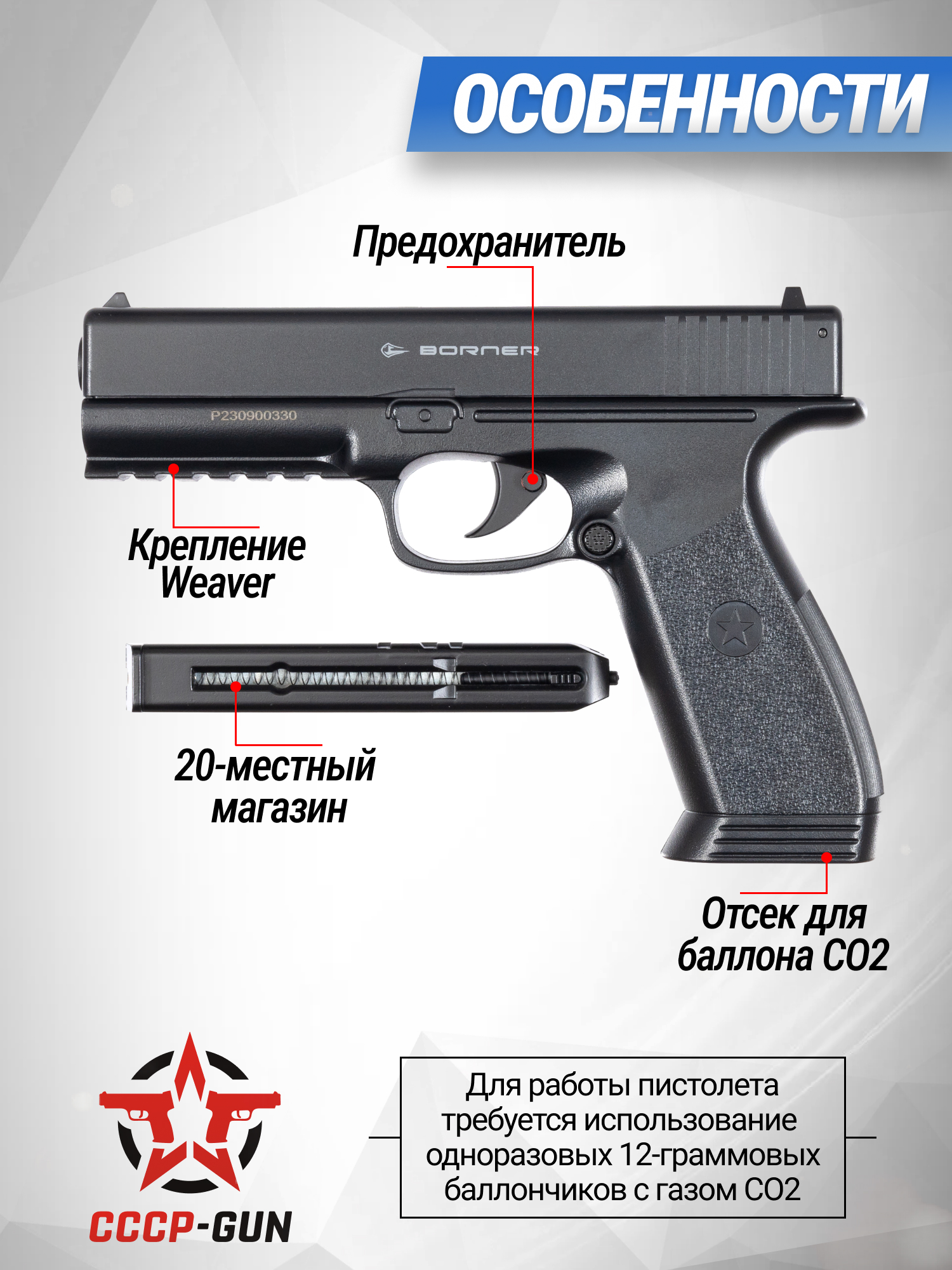 Современная пневматика уже давно заработала статус изделий, подходящих не только для развлекательной стрельбы, но и различных спортивных дисциплин, обучения начинающих стрелков основам техники безопасности, а также в качестве коллекционных образцов, которыми просто приятно наслаждаться. Производством такой продукции занимается американская фирма Борнер, представившая обозреваемую модель пистолета Glock 17.