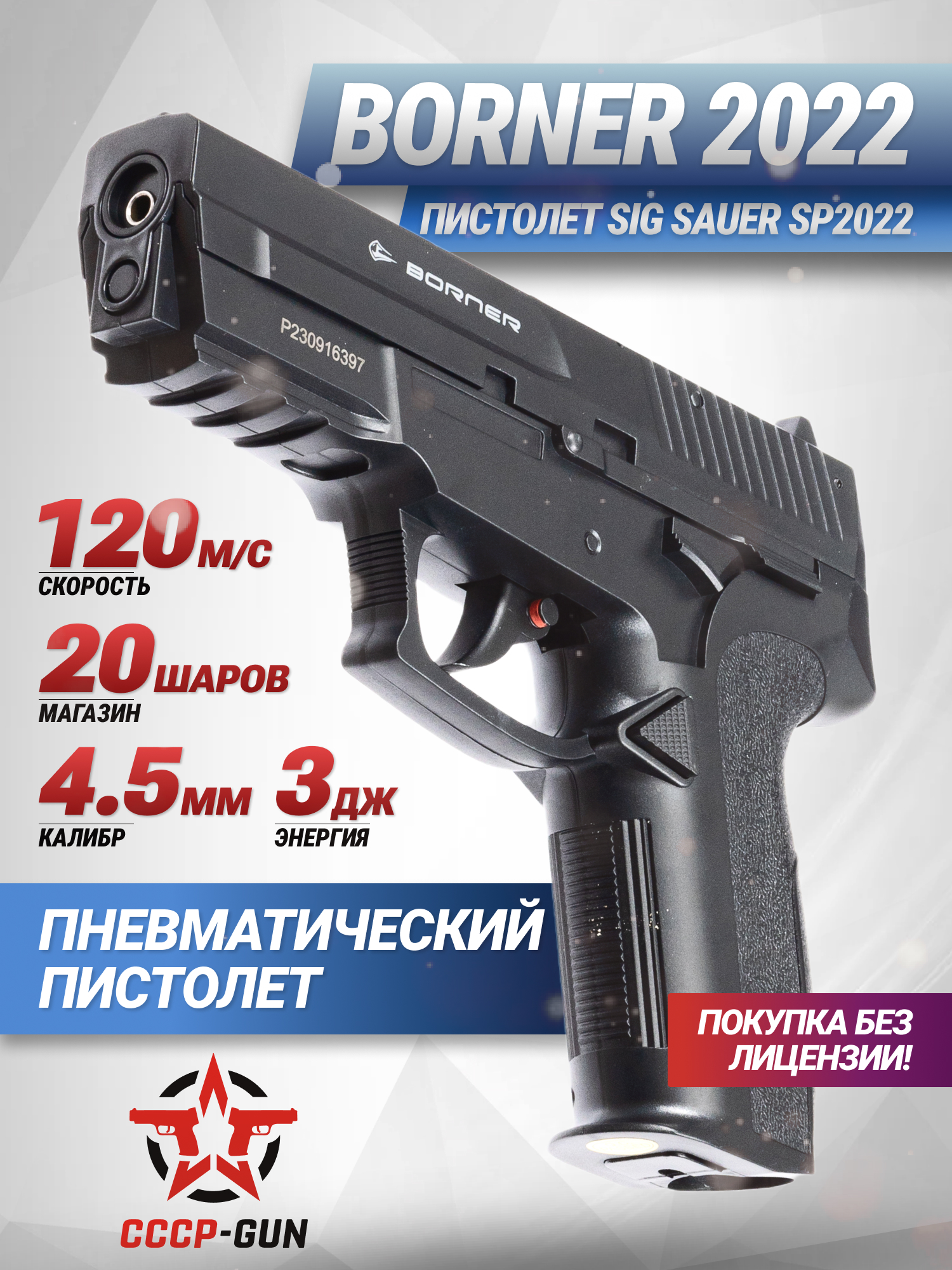 На российский рынок гражданского оружия и конструктивно схожих с ним изделий активно поставляется обширный ассортимент продукции зарубежных брендов, в том числе именитых и популярных. К числу подобных относится фирма Borner из Соединенных Штатов, специализирующаяся на изготовлении реалистичных моделей современной газобаллонной пневматики. В указанную категорию продукции входит обозреваемый пневматический Sig Sauer SP-2022.