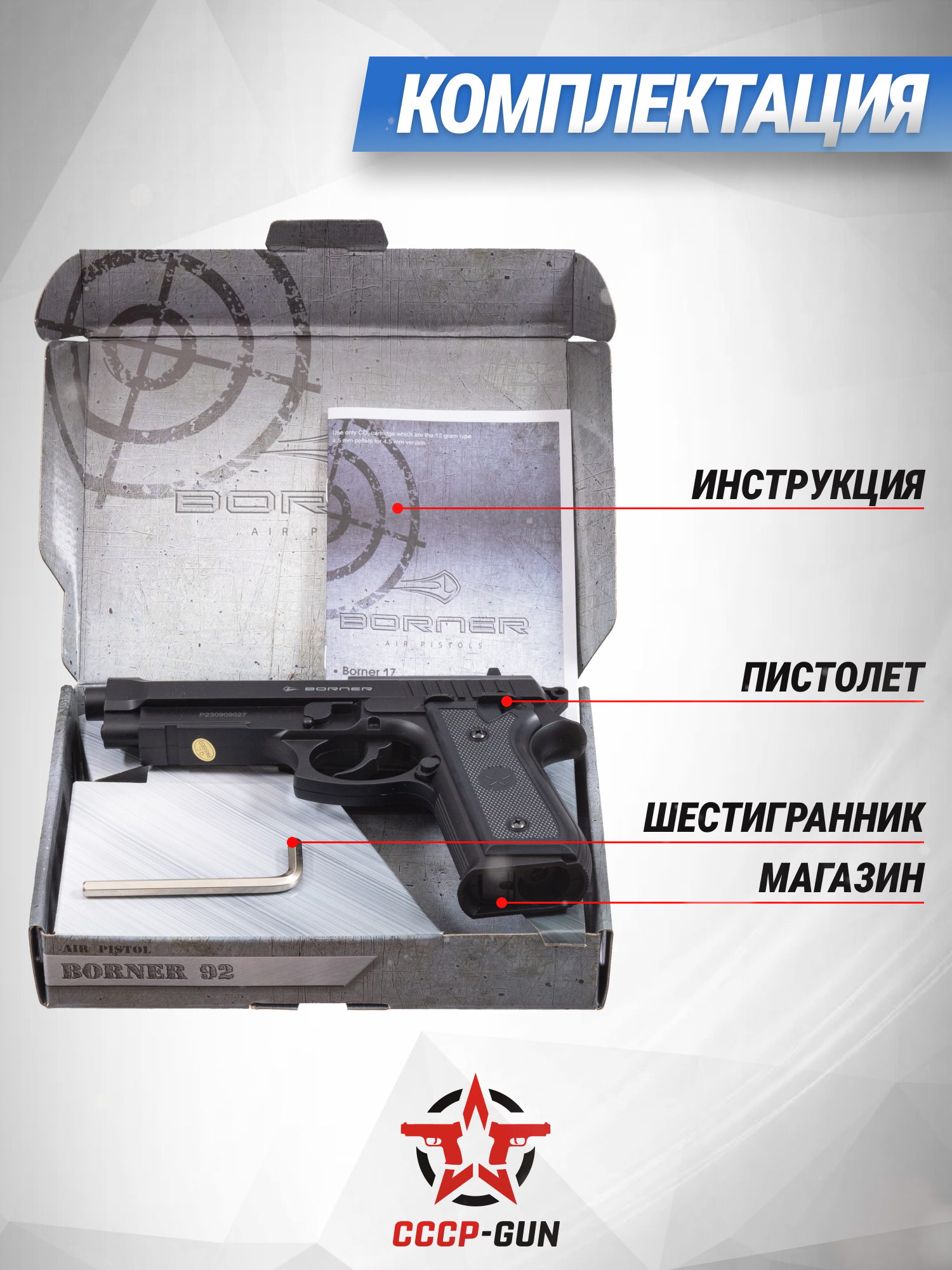 Ассортимент пневматики для гражданских пользователей постоянно расширяется, представляя обширную коллекцию изделий, которые подойдут не только для опытных и профессиональных стрелков, но и часто становятся первым образцом оружия начинающего владельца. Одним из главных критериев при выборе винтовки или пистолеты в последнем случае выступают интуитивно понятный принцип действия органов управления и простота механизмов. К числу подходящих к такой категории изделий относится обозреваемая газобаллонная Беретта от американского бренда Борнер.