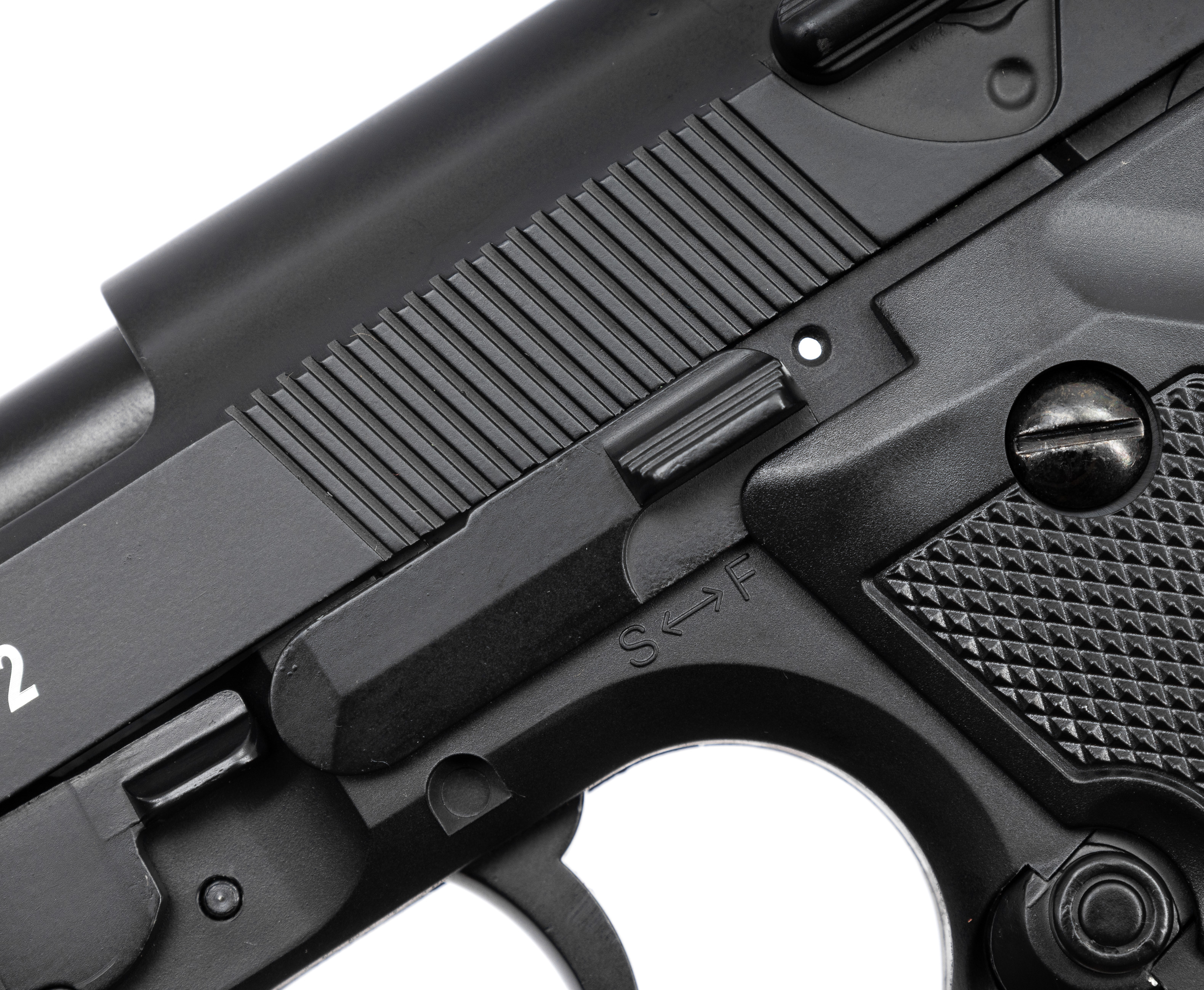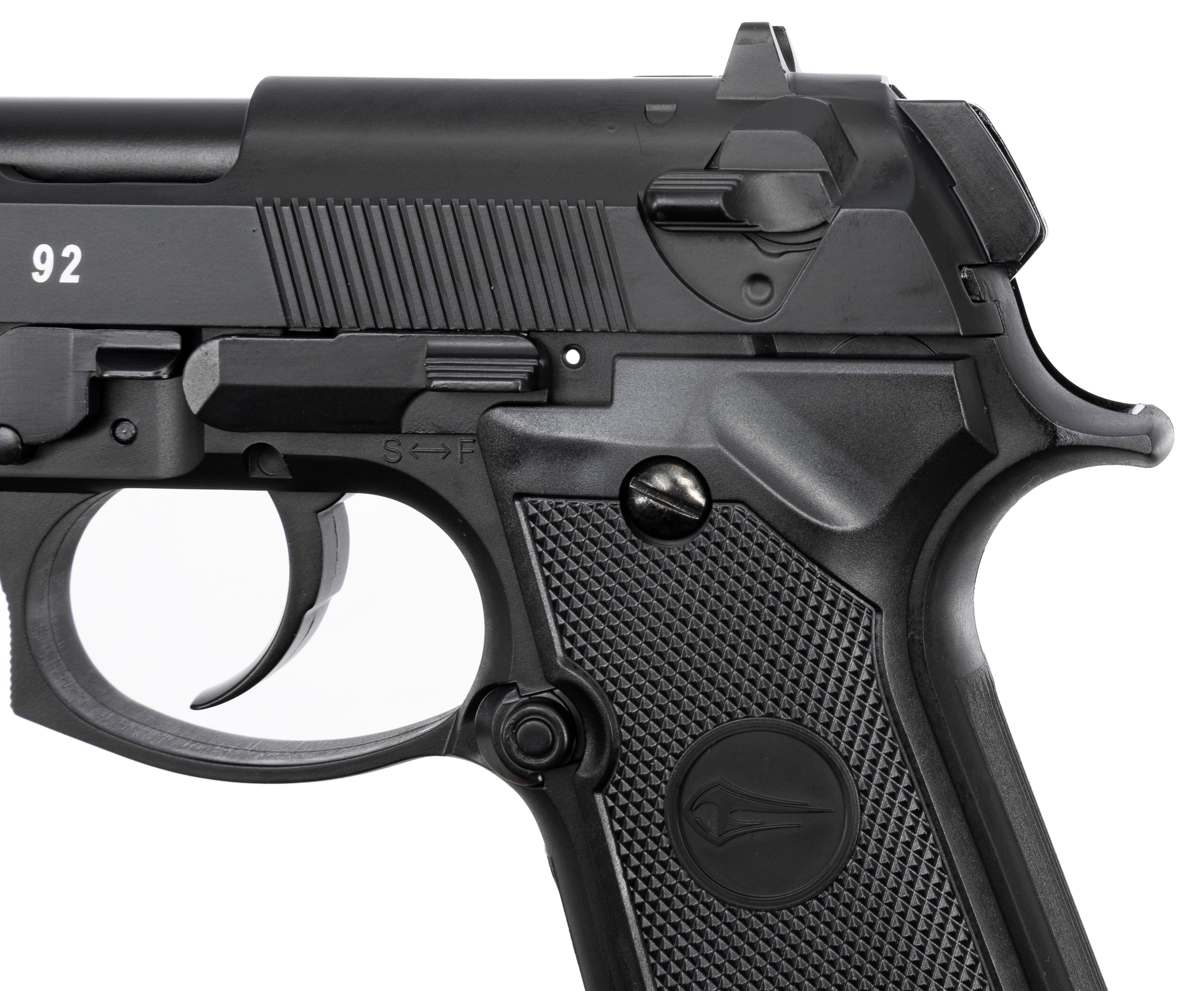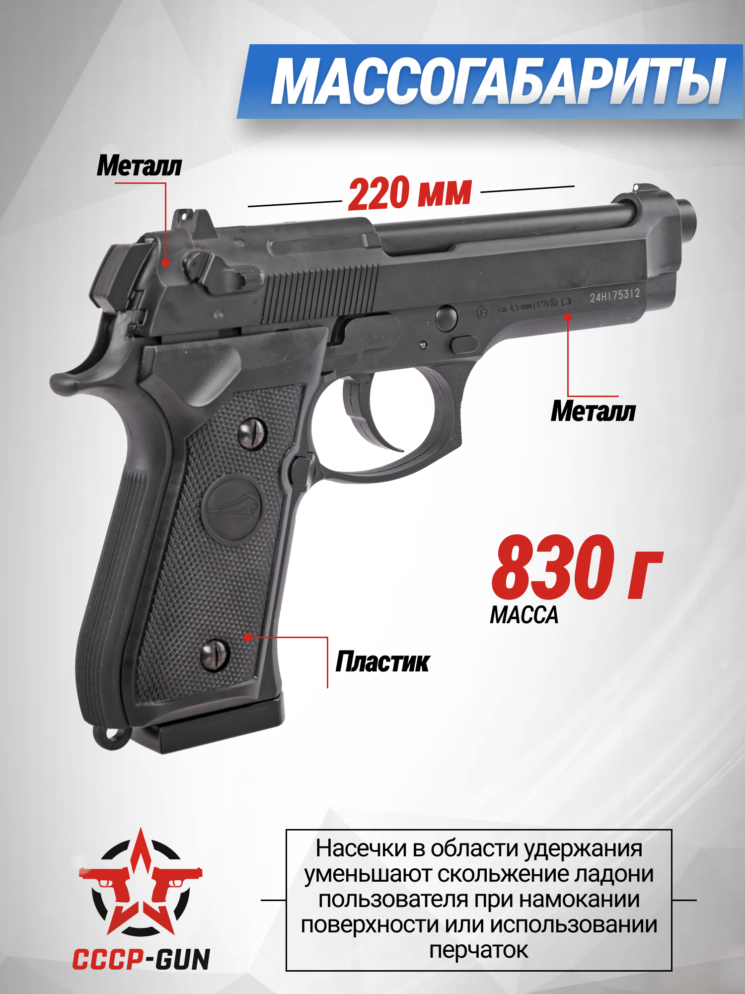 Максимальная скорость полета легкой свинцовой пули из пистолета Borner 92 составляет около 120 метров в секунду. Такой показатель отлично подойдет для тренировок меткости, развлекательной стрельбы на природе или плинкинга. При этом модель продается в России свободно и не обязует покупателя получать специальное разрешение, что подходит для начинающих стрелков и пользователей, которые хотят приобрести изделие для коллекции.