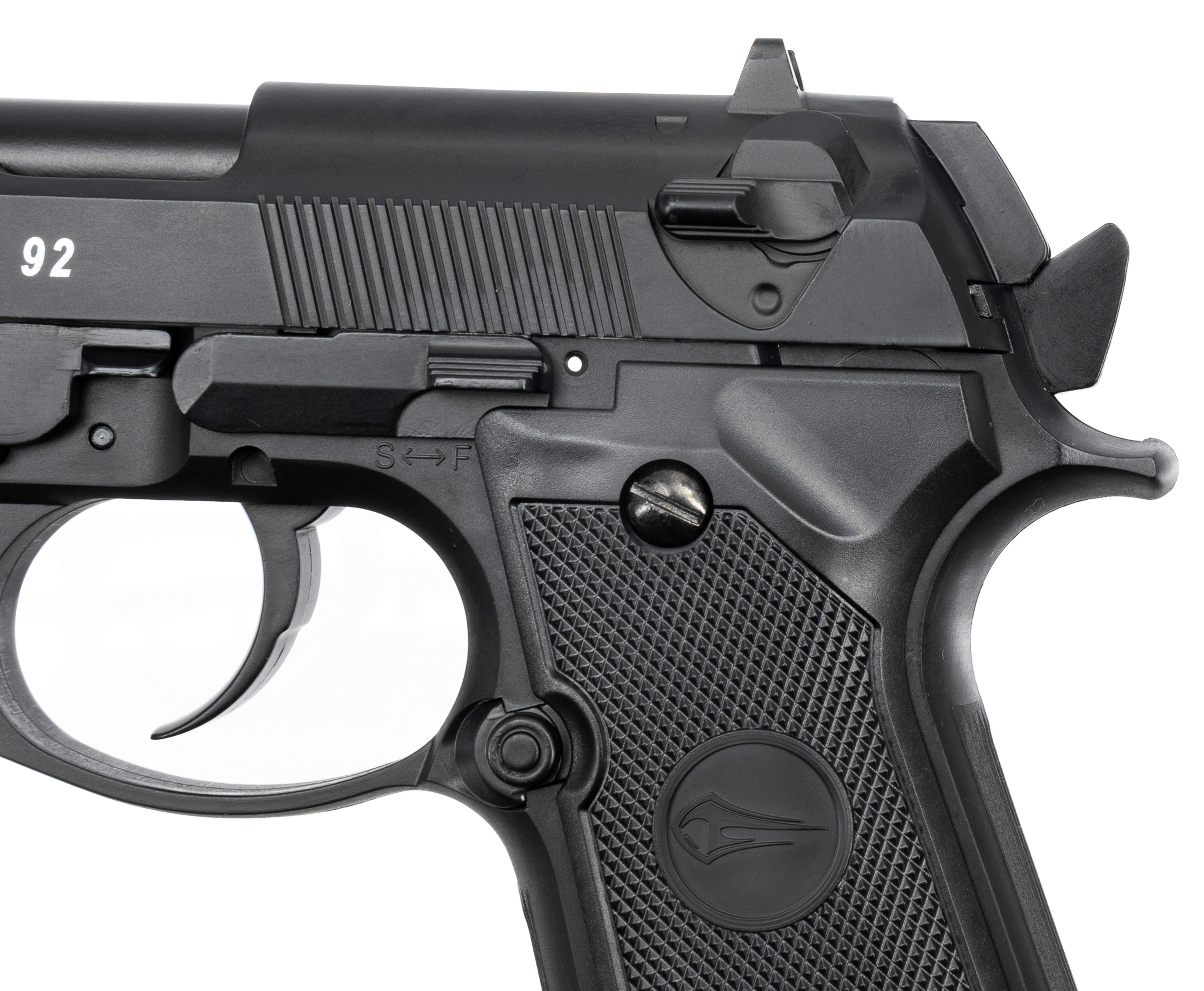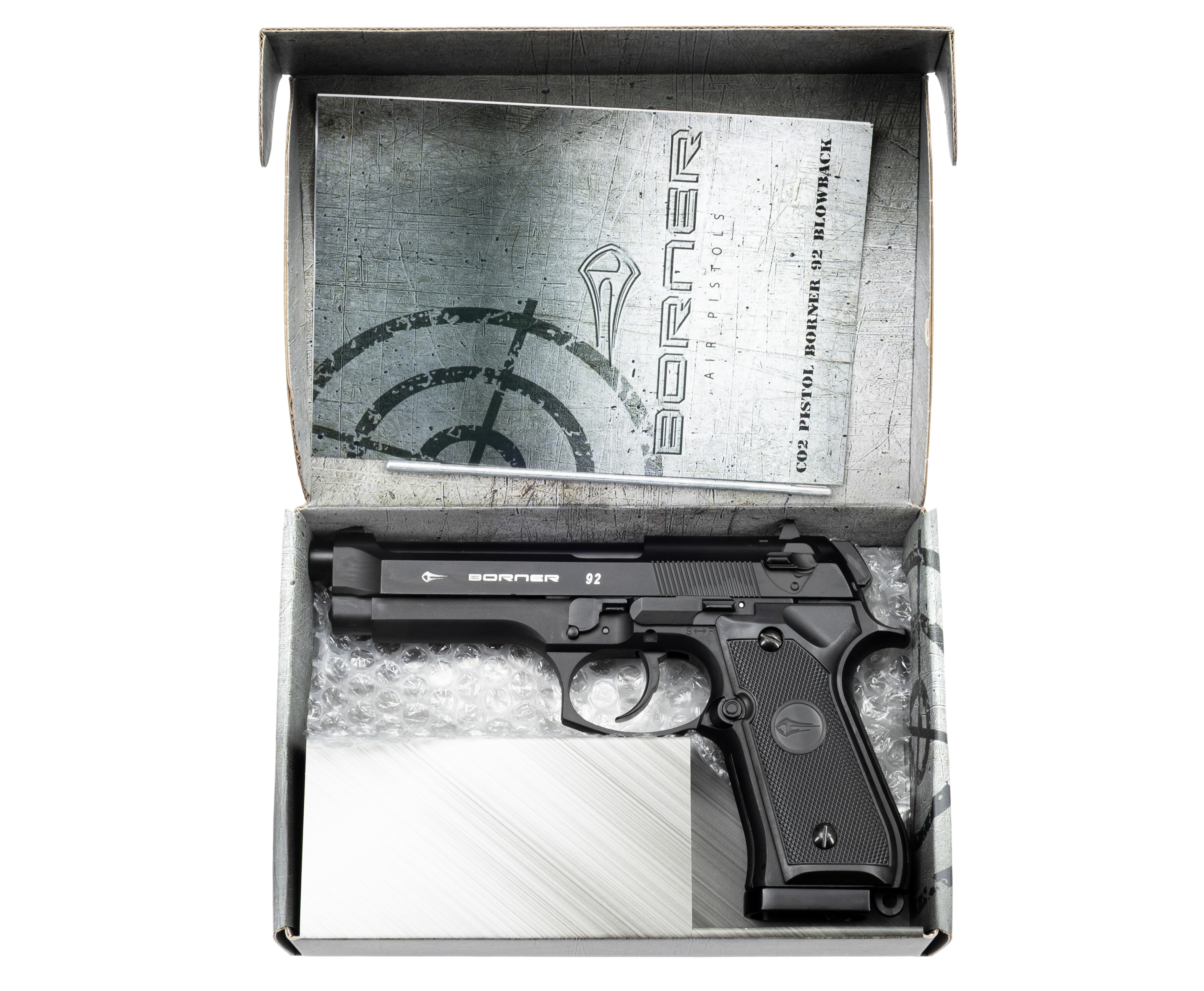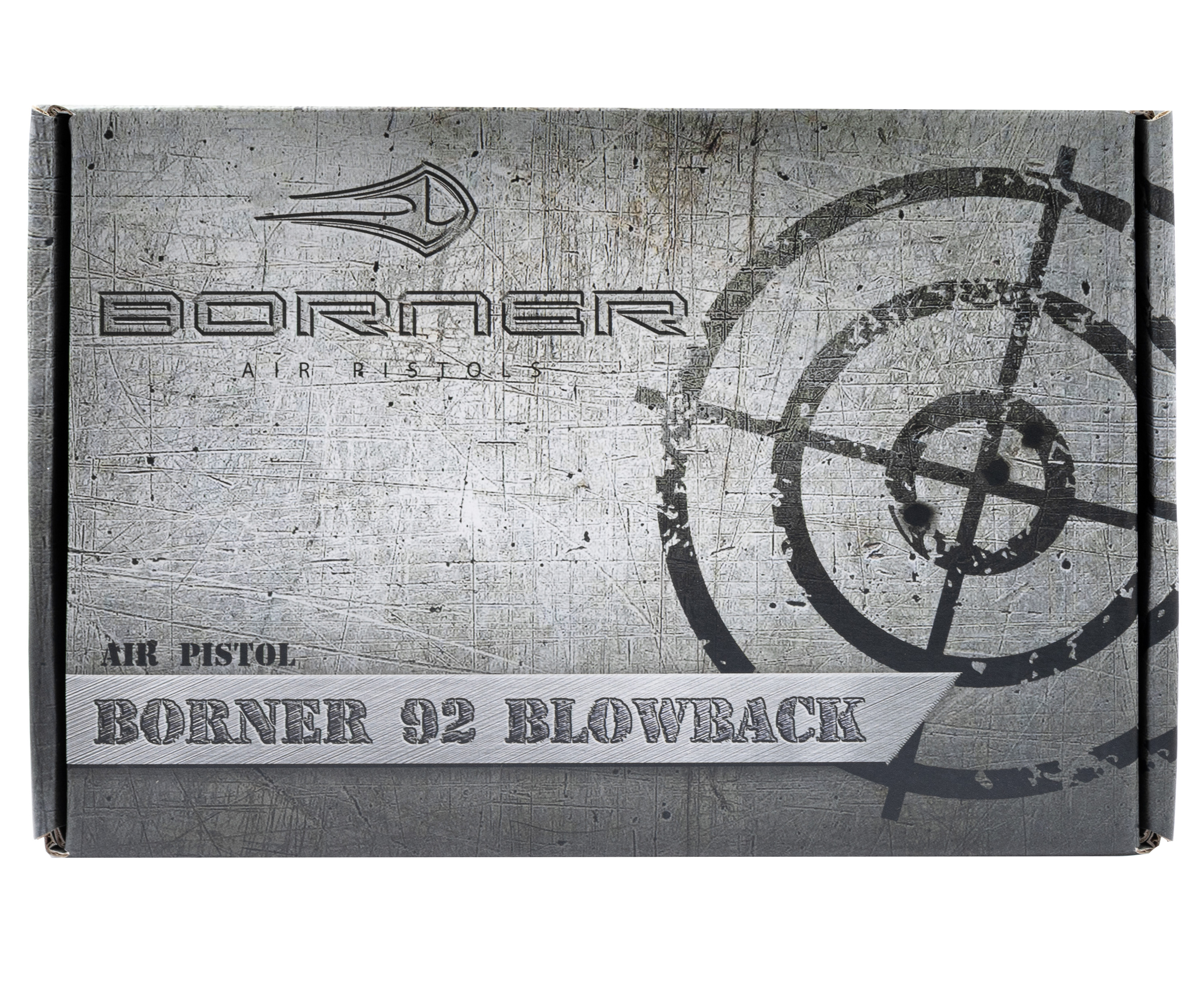 Функционирует пистолет в полуавтоматическом режиме, при этом во время стрельбы специальный механизм выполняет движение затворной рамы имитируя работу огнестрельного оружия. Таким образом модель не только внешне, но и функционально схожа с боевой вариацией Beretta 92, дизайном которой вдохновлялись конструкторы компании Борнер. Помимо прочего изделие имеет соответствующий вес равный 0.95 кг и длину, составляющую 213 мм, что несомненно добавляет аутентичности пистолету.