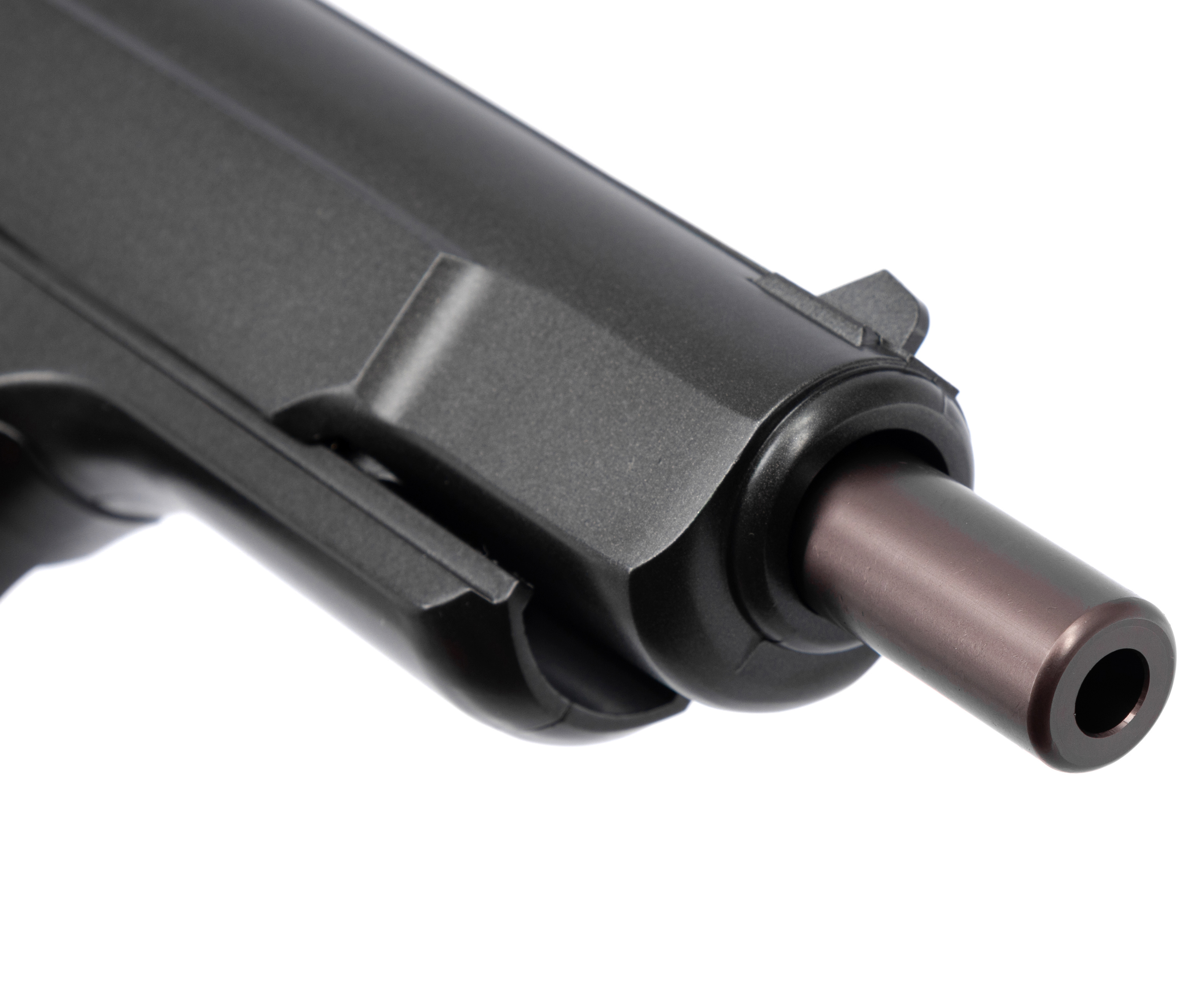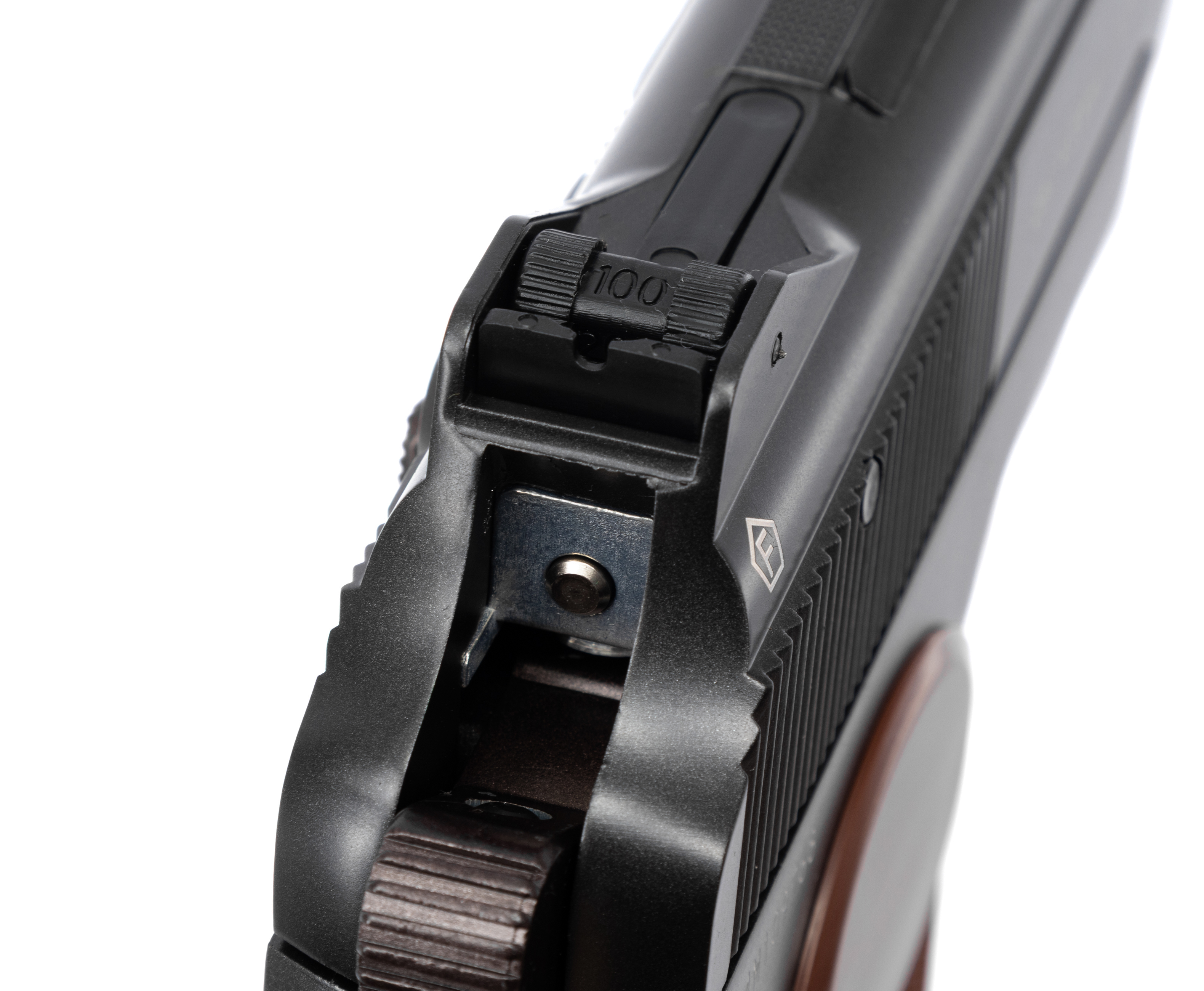 Пневматический пистолет АПС Стечкин от компании Borner исполнен с большим вниманием производителя к деталям и конструктивным особенностям прототипа. При соответствующей длине в 225 миллиметров, удалось сохранить реалистичную массу модели в килограмм, что достигается за счет использования металла в качестве материала изготовления затворной рамы и рамки пневматики.