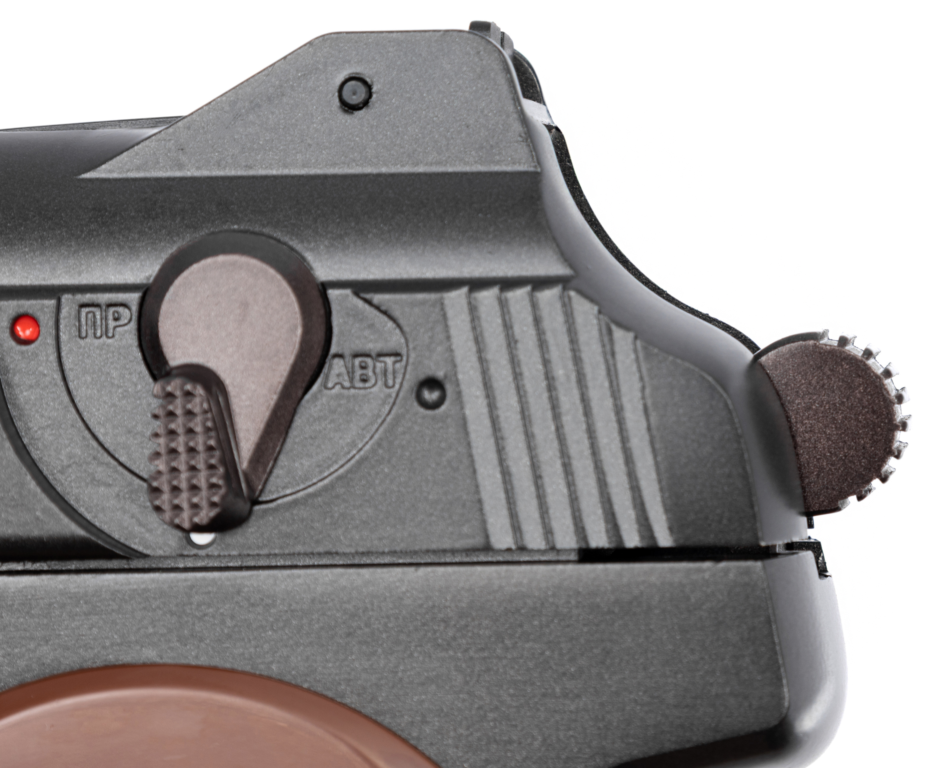 Роль боеприпасов для стрельбы из рассматриваемого пневматического пистолета выполняют сферические пули диаметром 4.5 миллиметра, питание которыми осуществляется при помощи штатного 22-местного механического магазина с пружинным подавателем. За безопасность эксплуатации пневматики отвечает традиционный неавтоматический предохранитель флажкового типа, который исключает вероятность случайного выстрела путем блокировки спускового крючка.