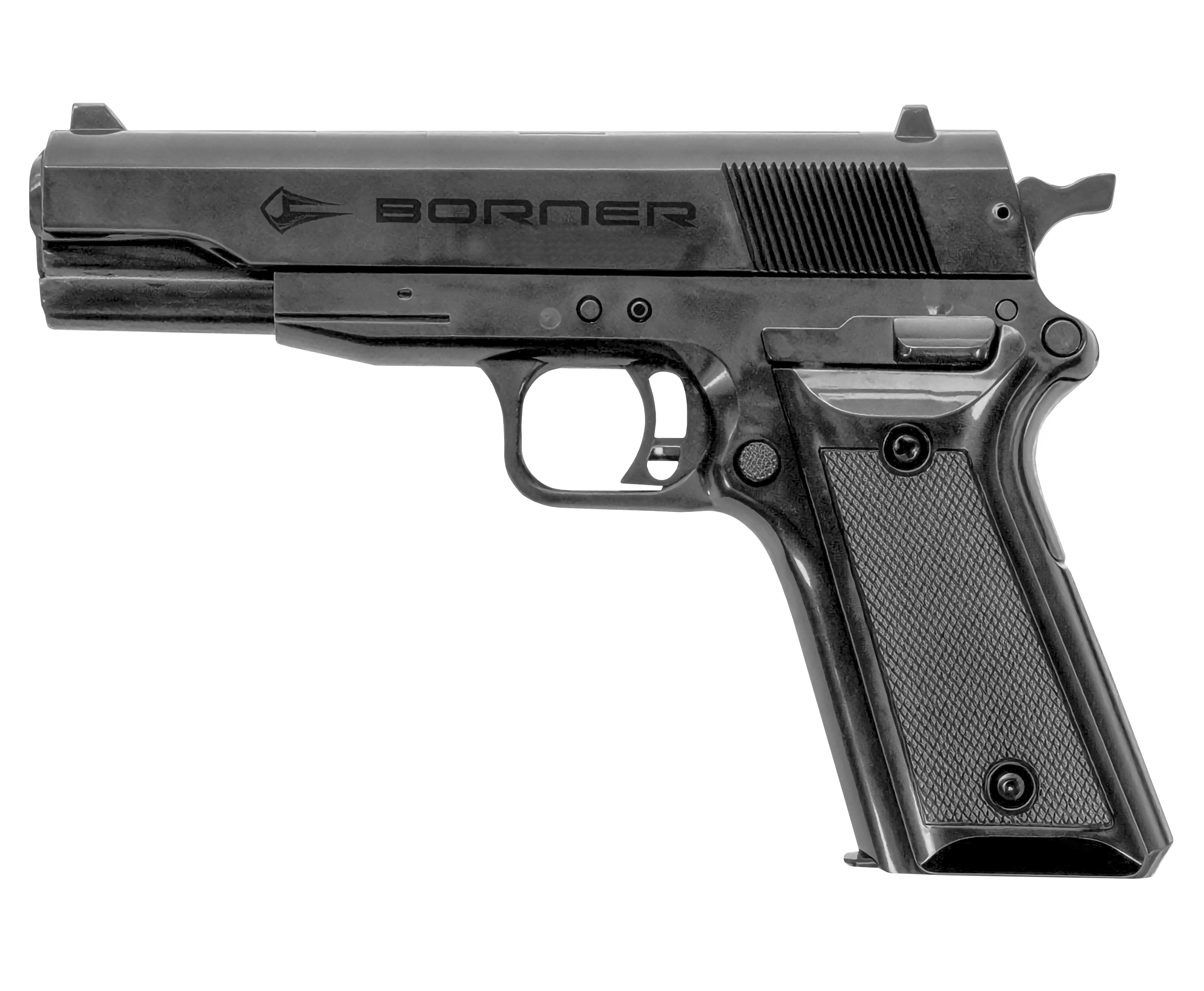 Изделие Borner работает в полуавтоматическом режиме - скорость выстрела способна достигать 120 метров в секунду, за счет чего образец не требует регистрации, т.к. дульная энергия не выше 3 Дж. Иными словами, эта модель не требует взвода затвора каждый раз - достаточно далее нажимать на спуск для следующего выстрела. Наличие предохранителя позволит перевести оружие в безопасный режим в то время, когда пистолет не используется.