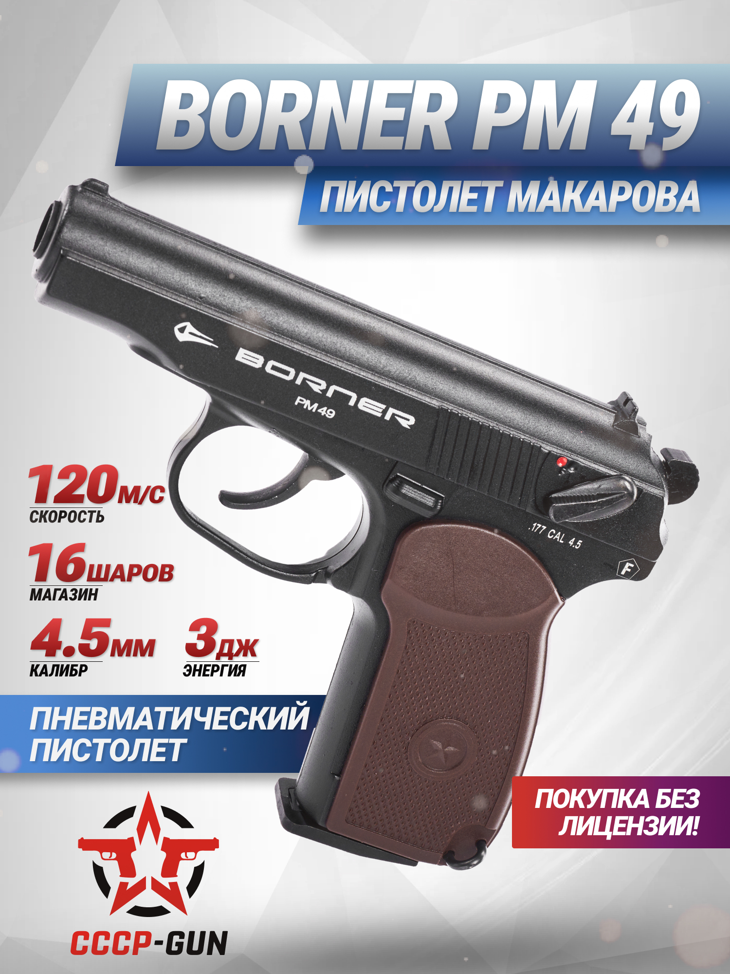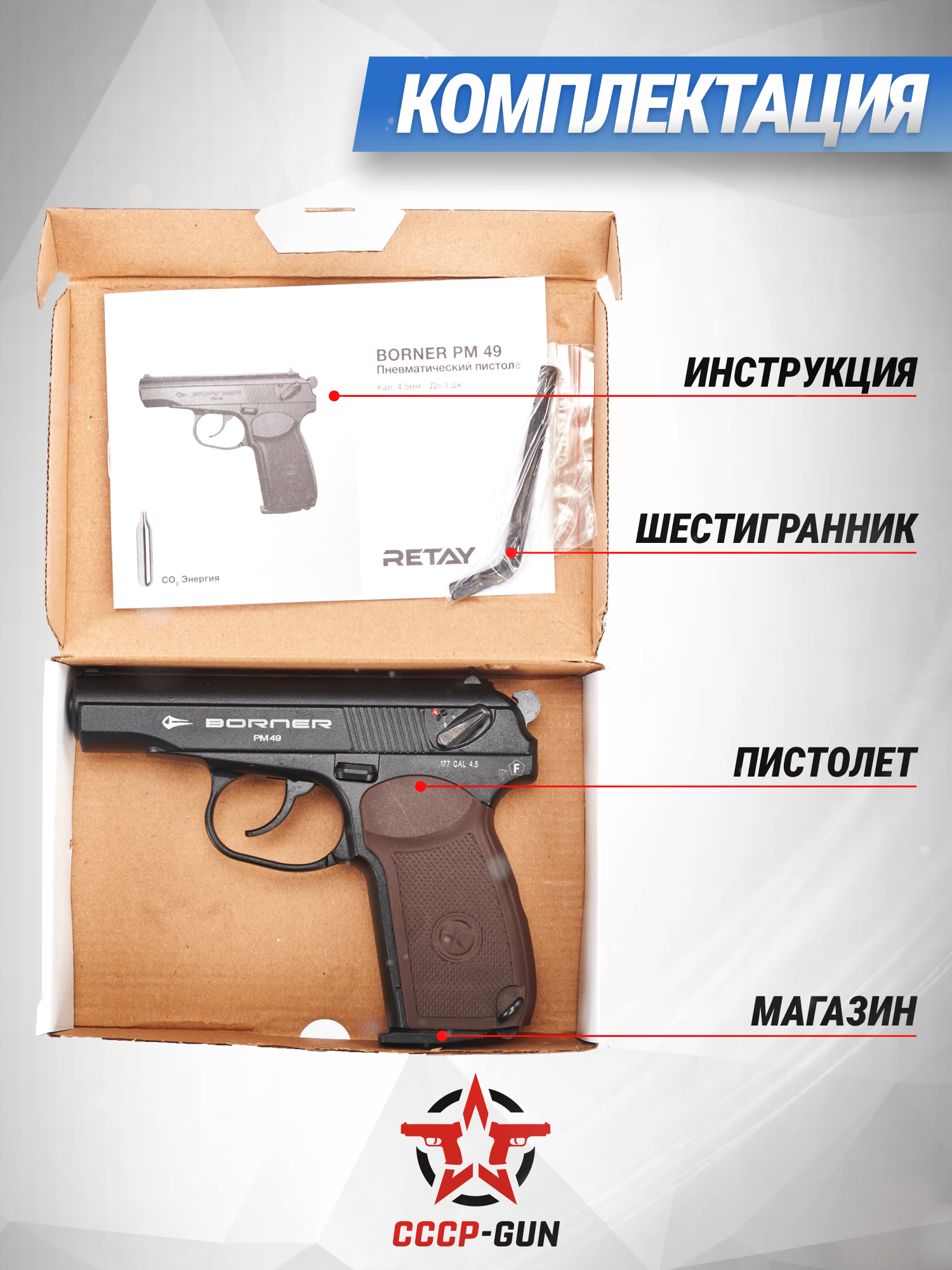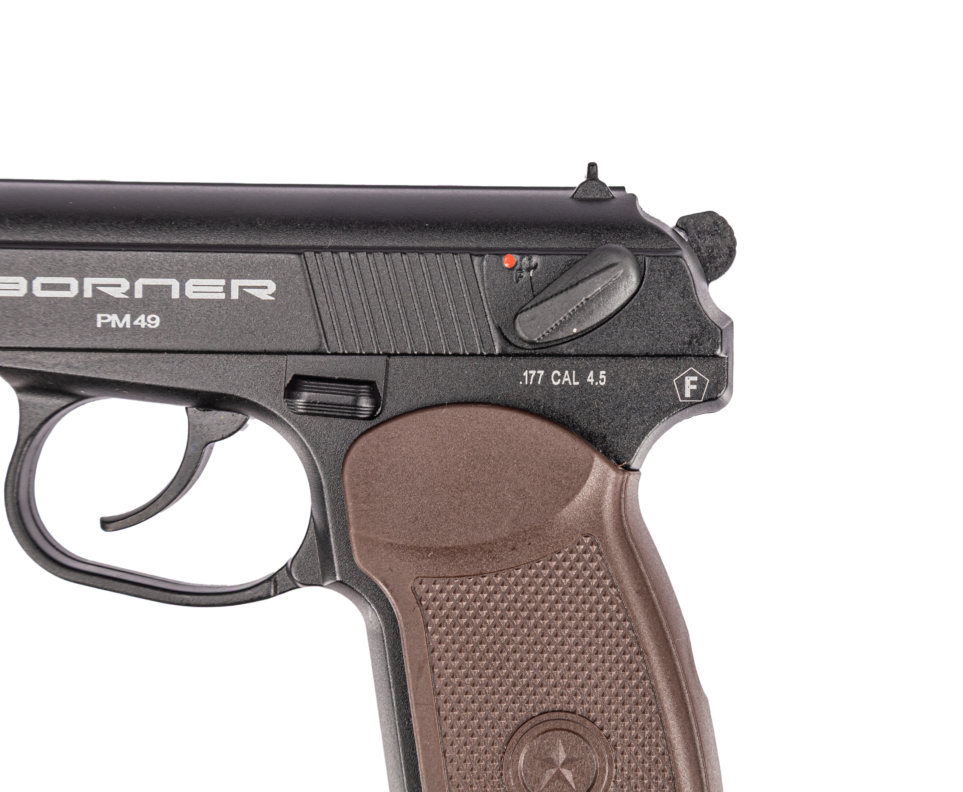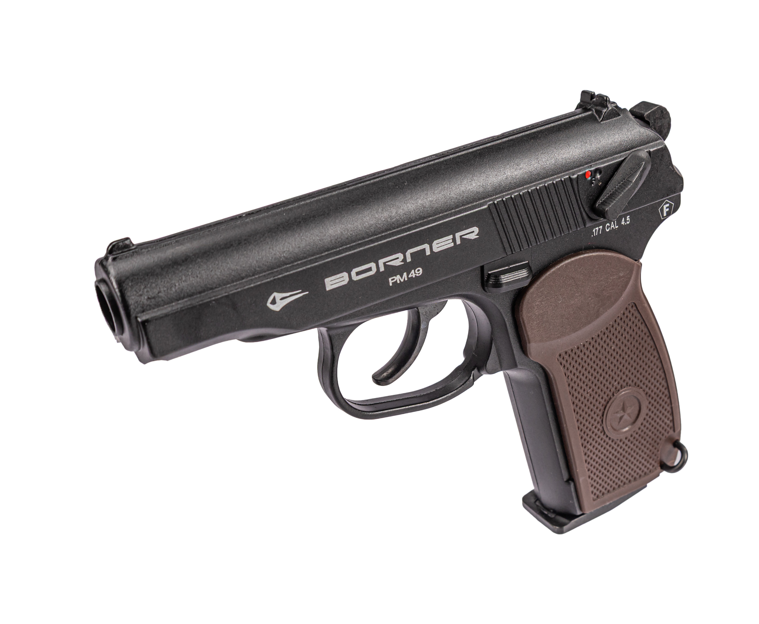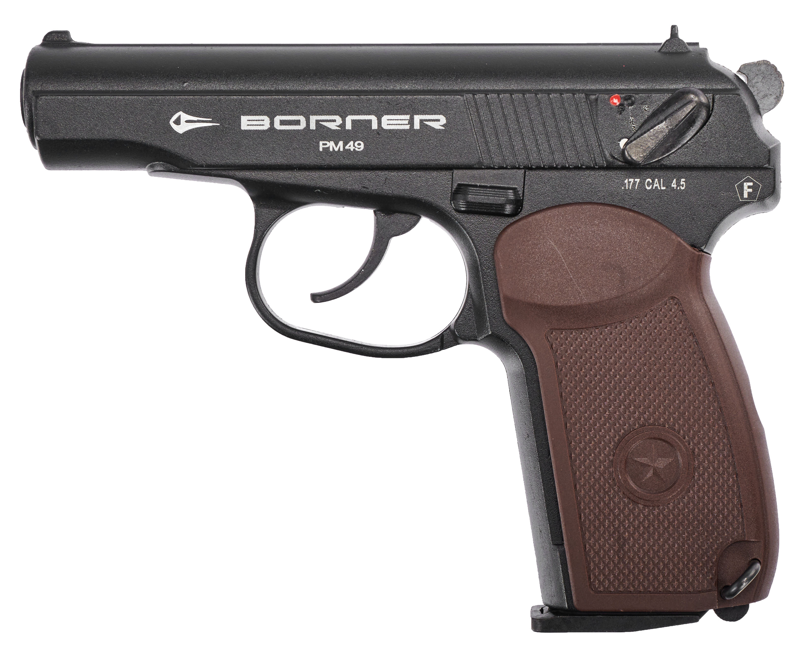 Завод производитель Borner специализируется на выпуске пневматического оружия, стремясь совместить узнаваемую конструкцию механизмов и современный подход к эксплуатации. В линейке бренда присутствуют модели, ориентированные на любителей легендарных образцов и тех, кто ценит практичность и простую механику. Таким изделием выступает газобаллонный PM 49 4.5 мм.