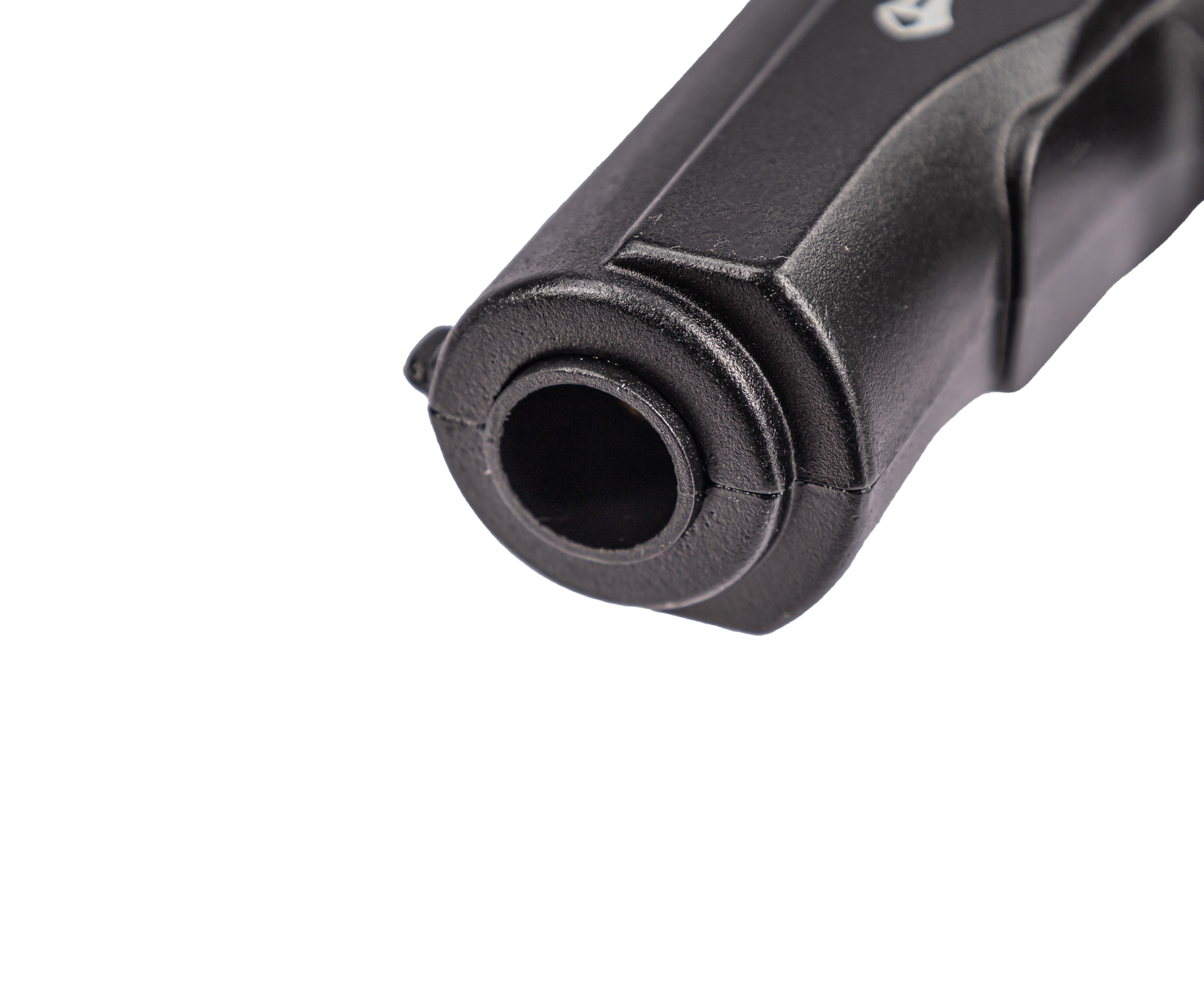 Гладкий ствол длиной 95 мм разработан специально для точного метания стальных боеприпасов калибра .177. Такие габариты выступают компромиссом между компактностью и возможностью формирования предсказуемой траектории полета при выходной скорости, допустимой для гражданского использования. При этом, отсутствие нарезов снижает требования к мощности и делает бланк надежным в эксплуатации.