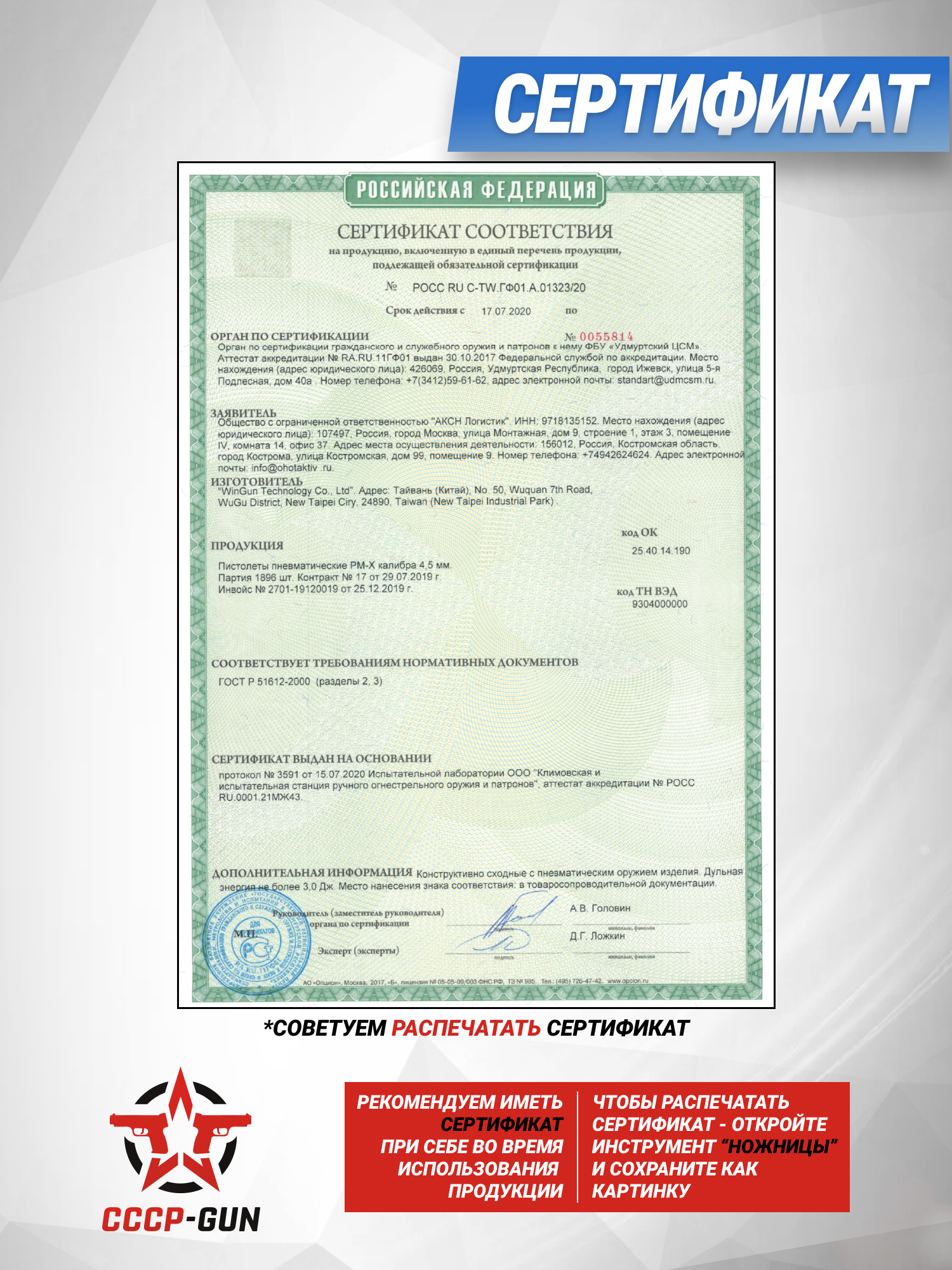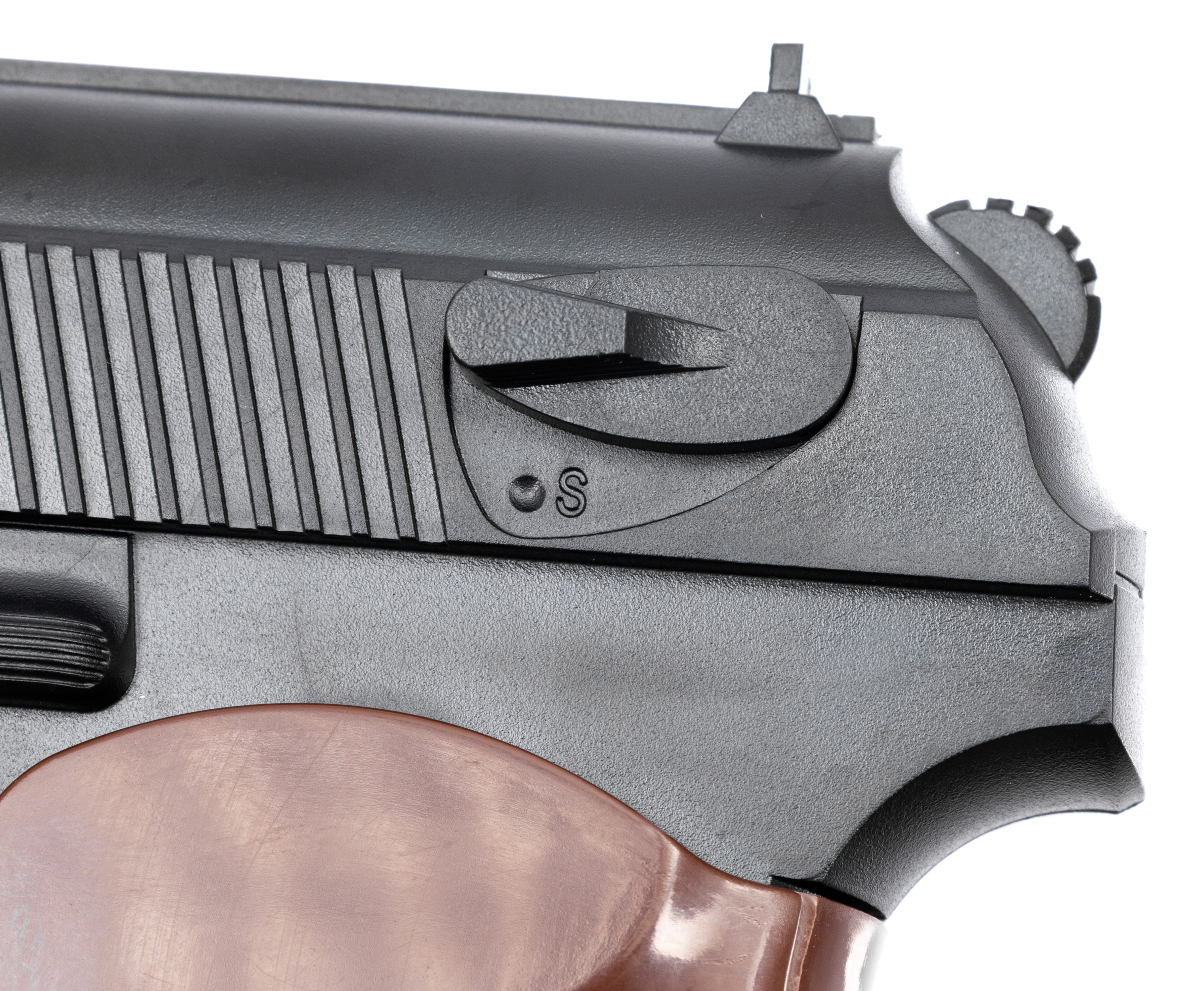 Рассматриваемая пневматика создавалась по образу культового пистолета Макарова, который известен всему миру, благодаря своей популярности в фильмах, сериалах и компьютерных играх. Размеры модели равны 160 мм, а масса за счет применения в качестве материала корпуса ударопрочного пластика, составляет всего 0.27 кг. Благодаря таким показателям стрелять из обозреваемого пневматического пистолета смогут даже дети, что полезно для приобщения к культуре использования оружия.
