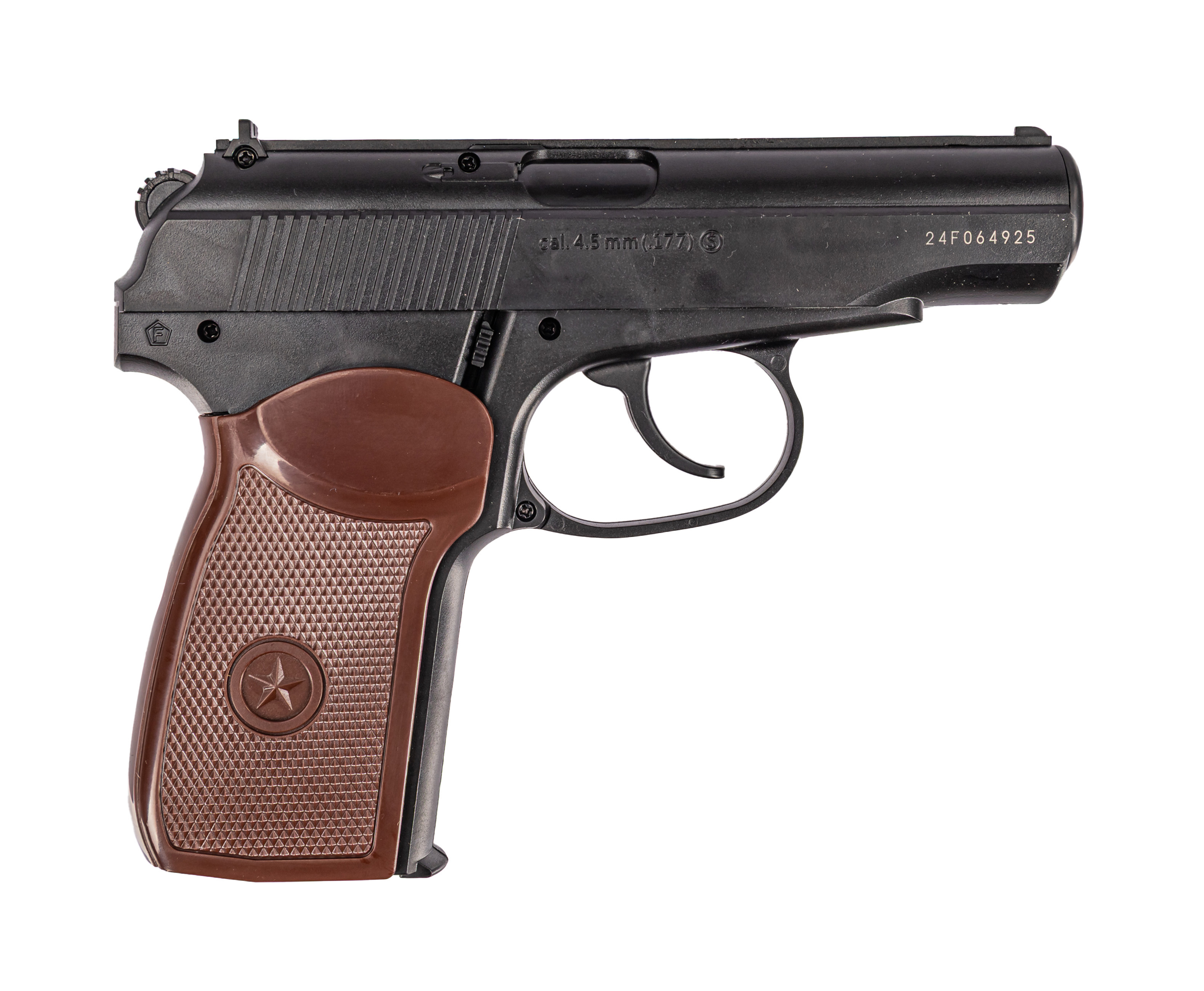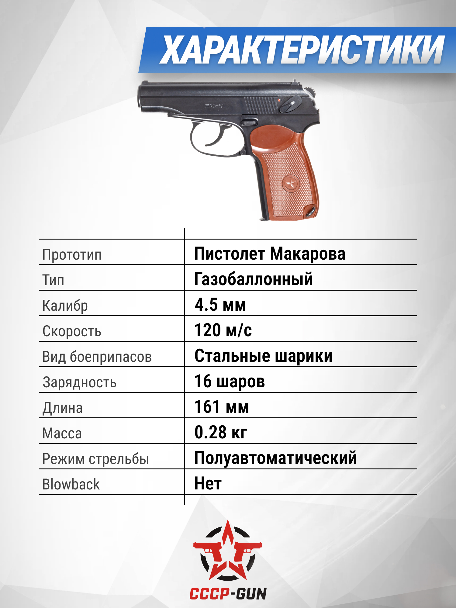 Корпус рассматриваемой модели Борнер ПМ-Х изготовлен из ударостойкого пластика, ввиду чего массу изделия удалось снизить до 270 грамм, что позволяет комфортно использовать пистолет в течении продолжительного времени. Поскольку создатели вдохновлялись дизайном легендарного Макарова, который известен во всем мире по книгам, сериалам и фильмам, габариты представленной пневматики составляют 160 миллиметров. Это помогает легко хранить и переносить пистолет, поскольку он не занимает много места.