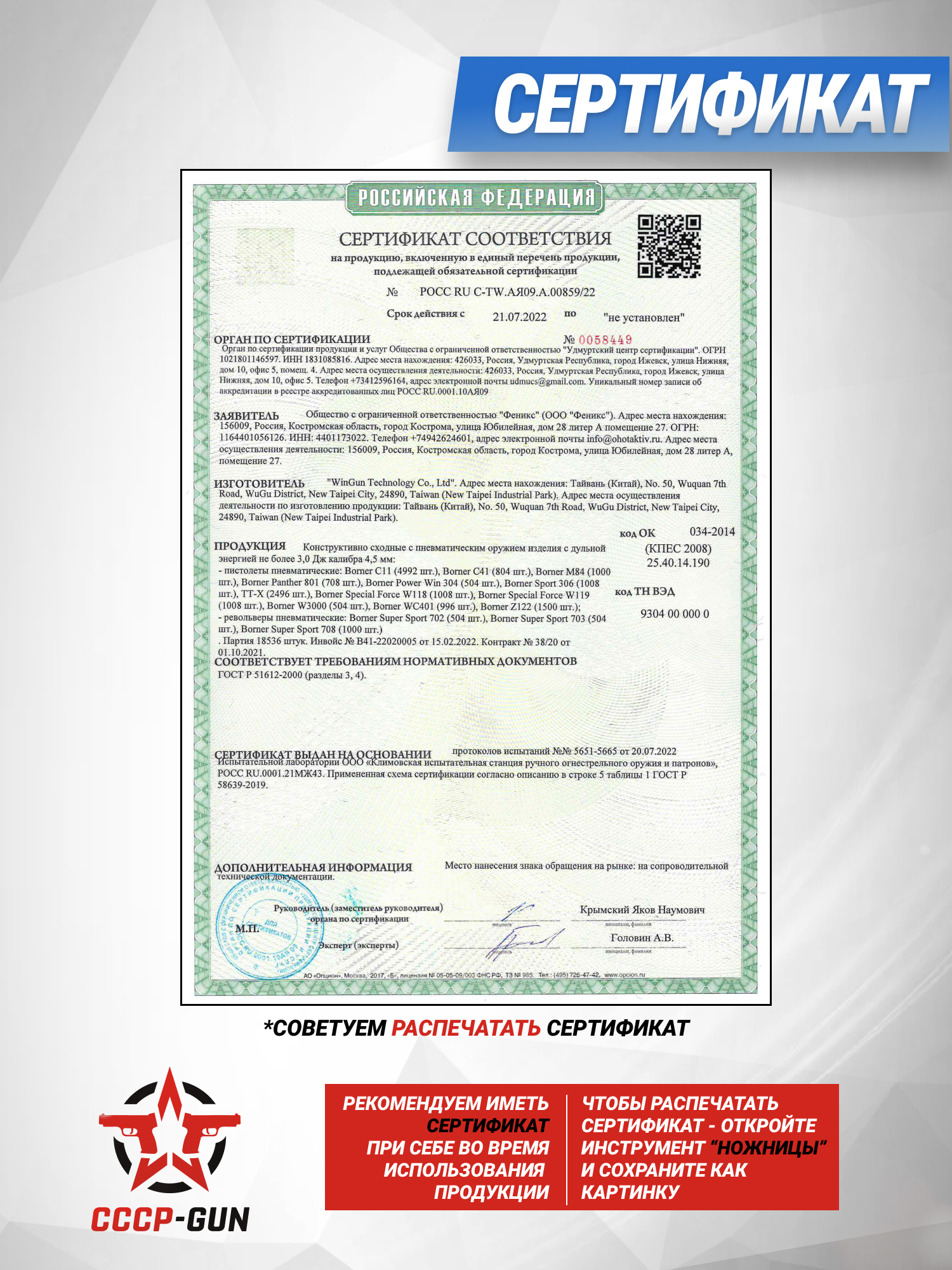 Рассматриваемое изделие по российскому законодательству продается в свободном доступе и не требует от потенциального владельца получать лицензию в разрешительных органах. Этого удалось достичь благодаря соблюдению правил при которых дульная энергия пули не должна превышать показателя в 3 Джоуля. Исходя из данных, предоставленных производителем следует, что скорость, которую может развивать снаряд при вылете из пистолета, равняется 120 метрам в секунду.