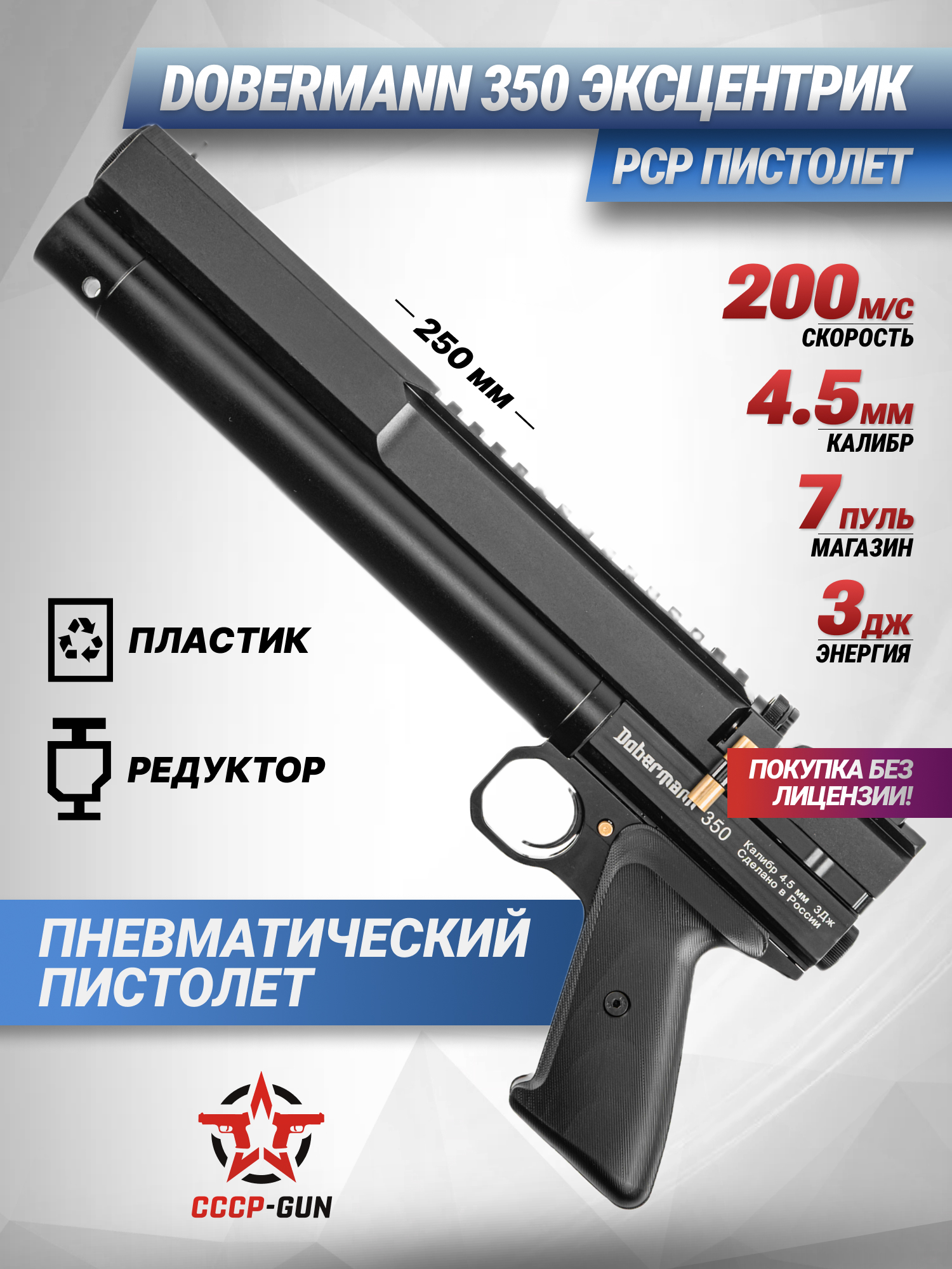 Пневматический пистолет Dobermann 350 Эксцентрик 4.5 мм (250 мм, редуктор)