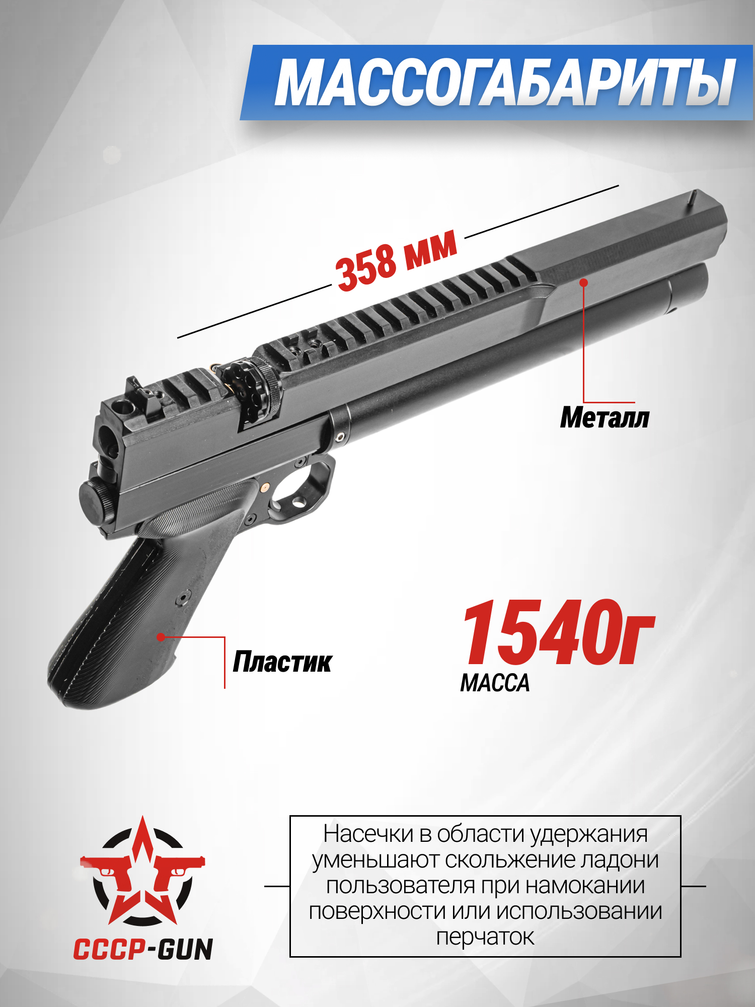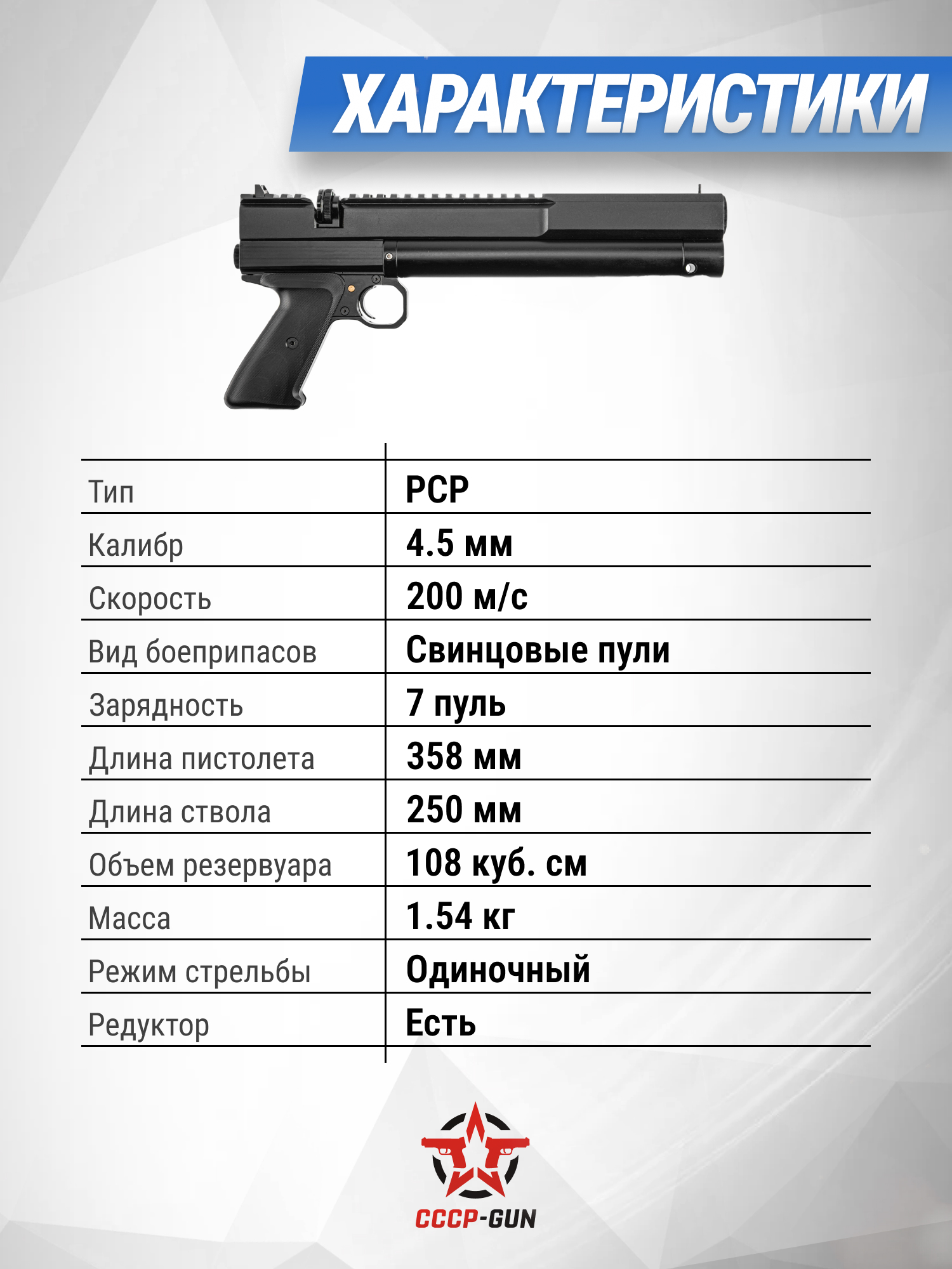 Пневматический пистолет Dobermann 350 Эксцентрик 4.5 мм (200 мм, редуктор)