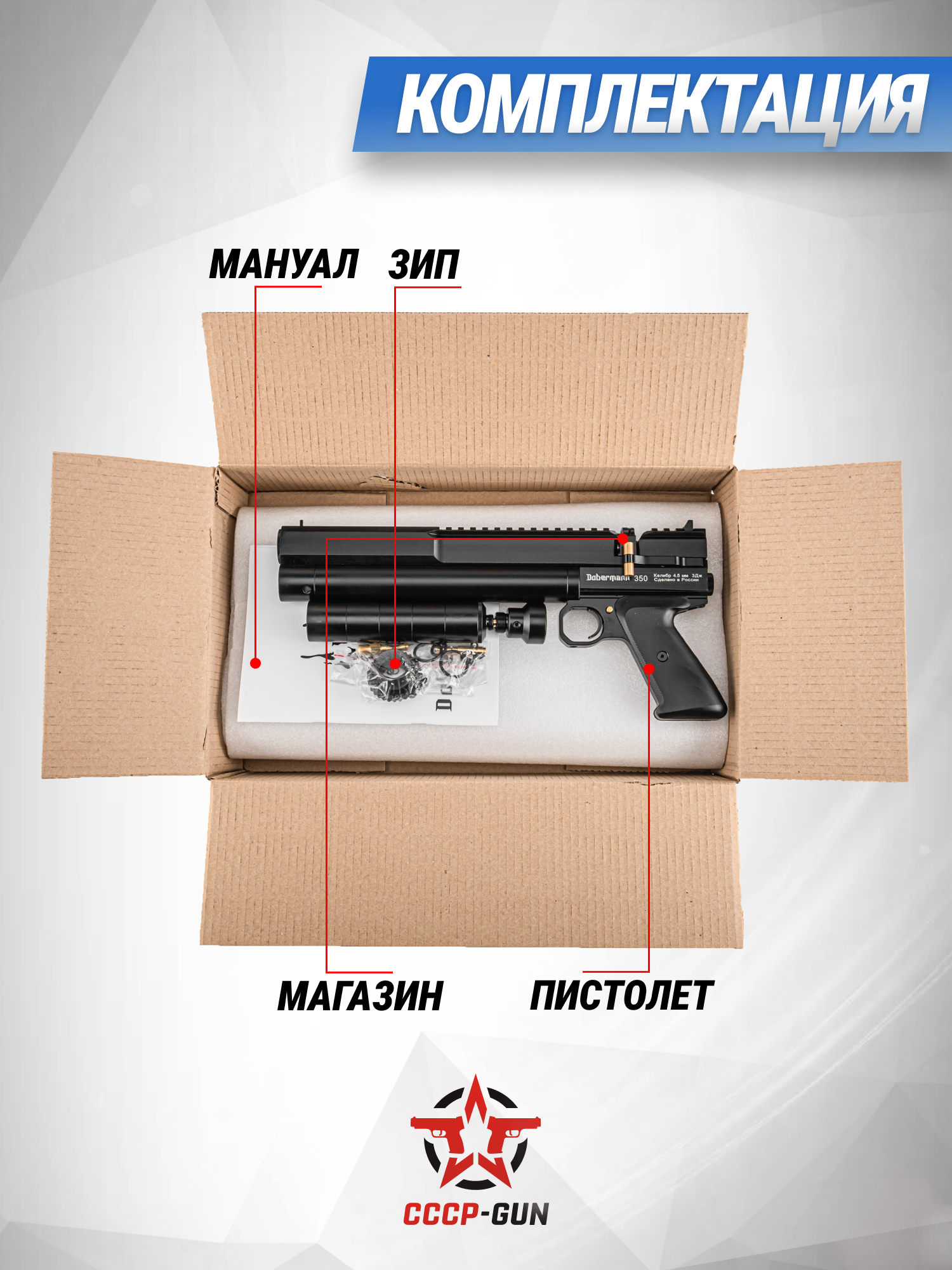 Пневматический пистолет Dobermann 350 Эксцентрик 5.5 мм (200 мм)