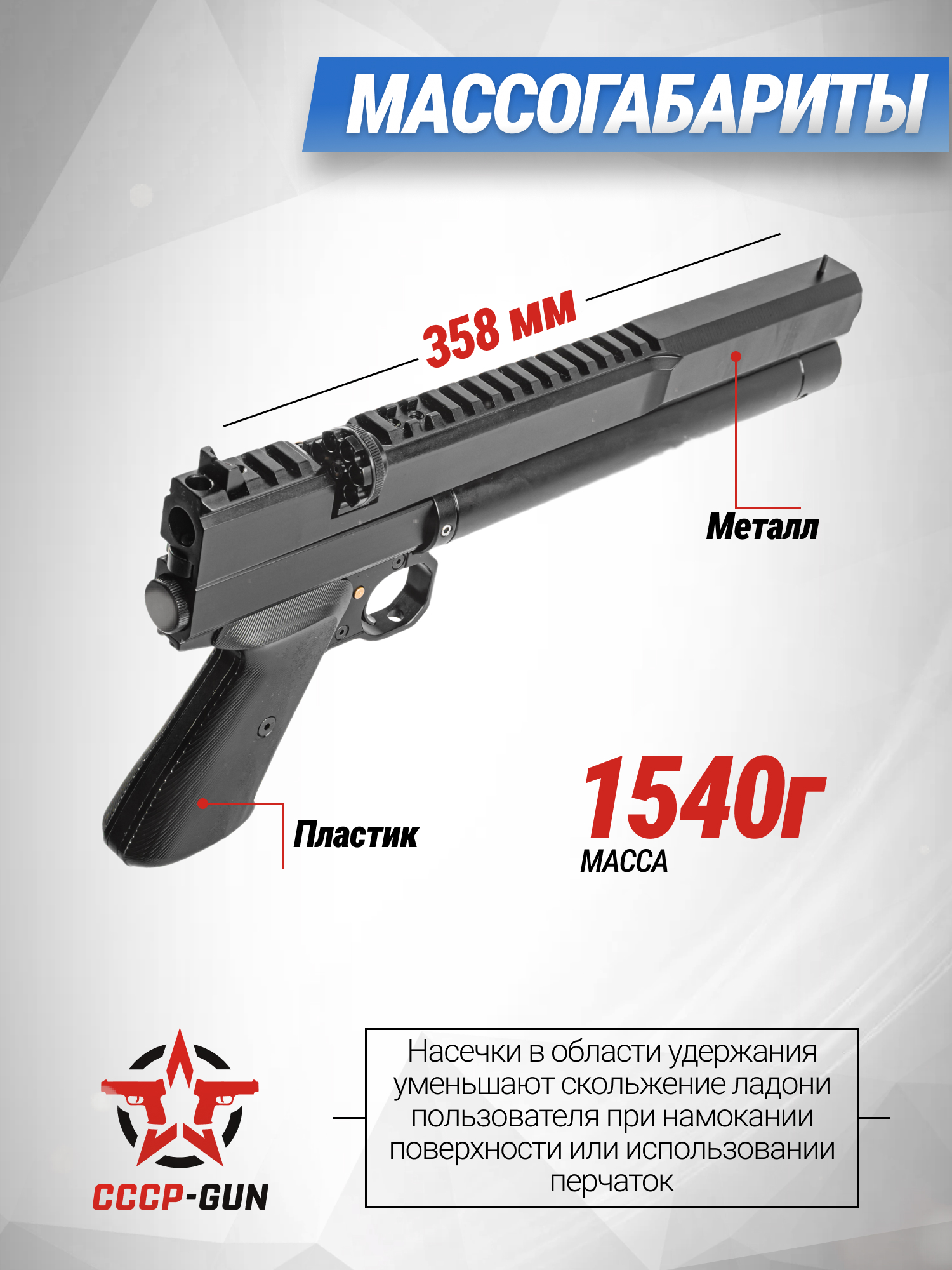 Пневматический пистолет Dobermann 350 Эксцентрик 4.5 мм (200 мм, приклад)