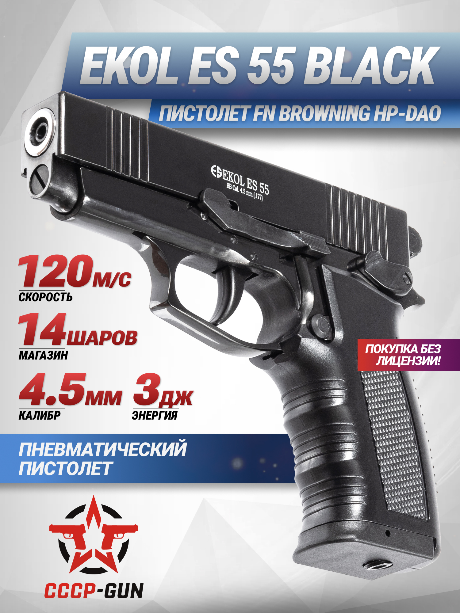 Газобаллонный пистолет Ekol ES 55 Black свободно продается в России и для его покупки не нужно оформлять лицензию через разрешительные ведомства Росгвардии. Такая доступность достигнута за счет того, что мощность пневматики не превышает 3 J и данный показатель подтвержден сертификатом. При этом любители развлекательной стрельбы оценят скорость вылетающих шаров, которая доходит до 120 метров в секунду, помогая прицельно попадать по мишеням на отдалении десяти, а то и пятнадцати метров.