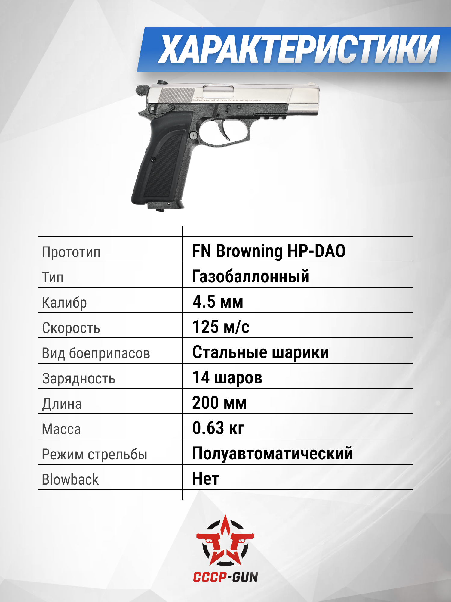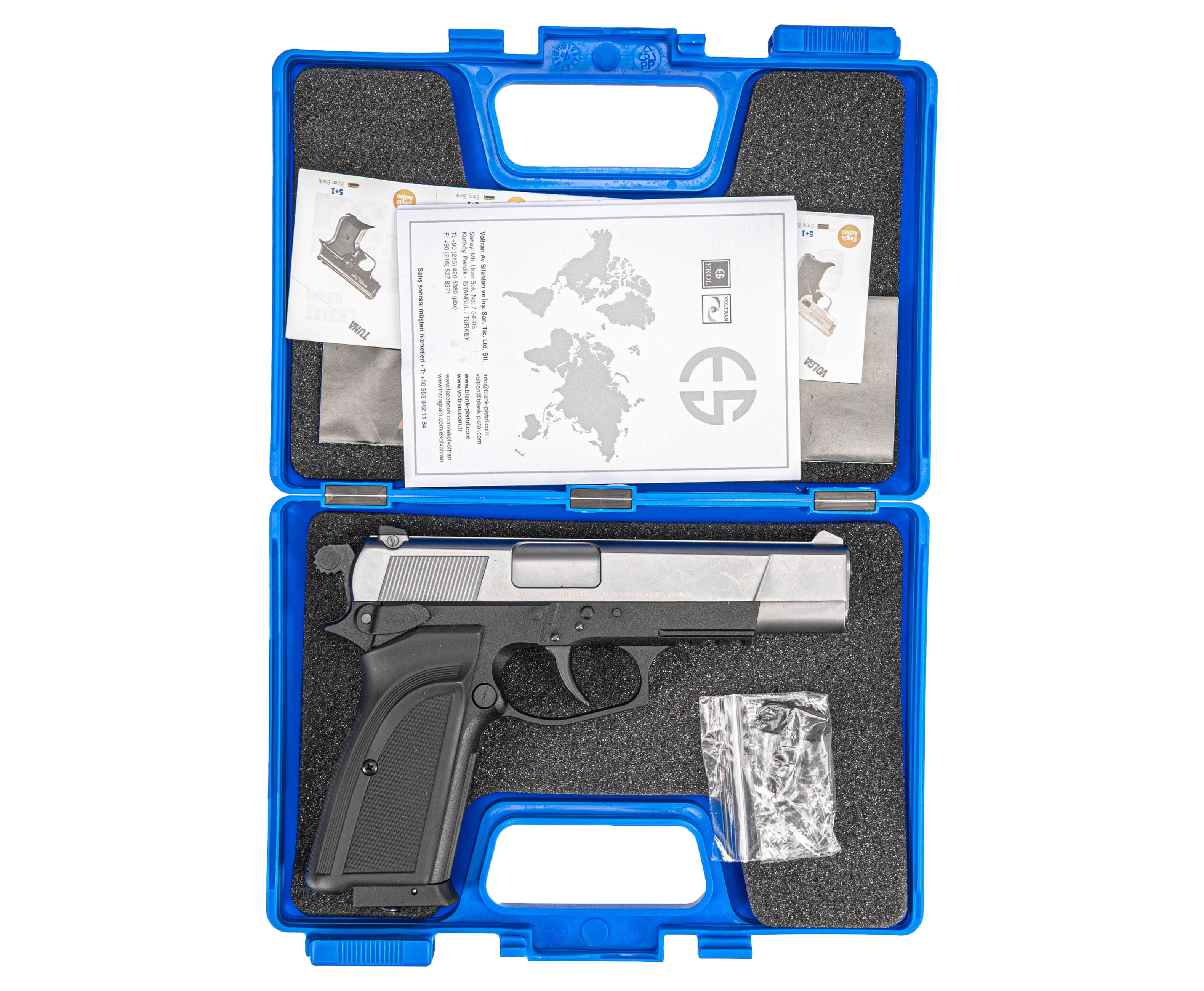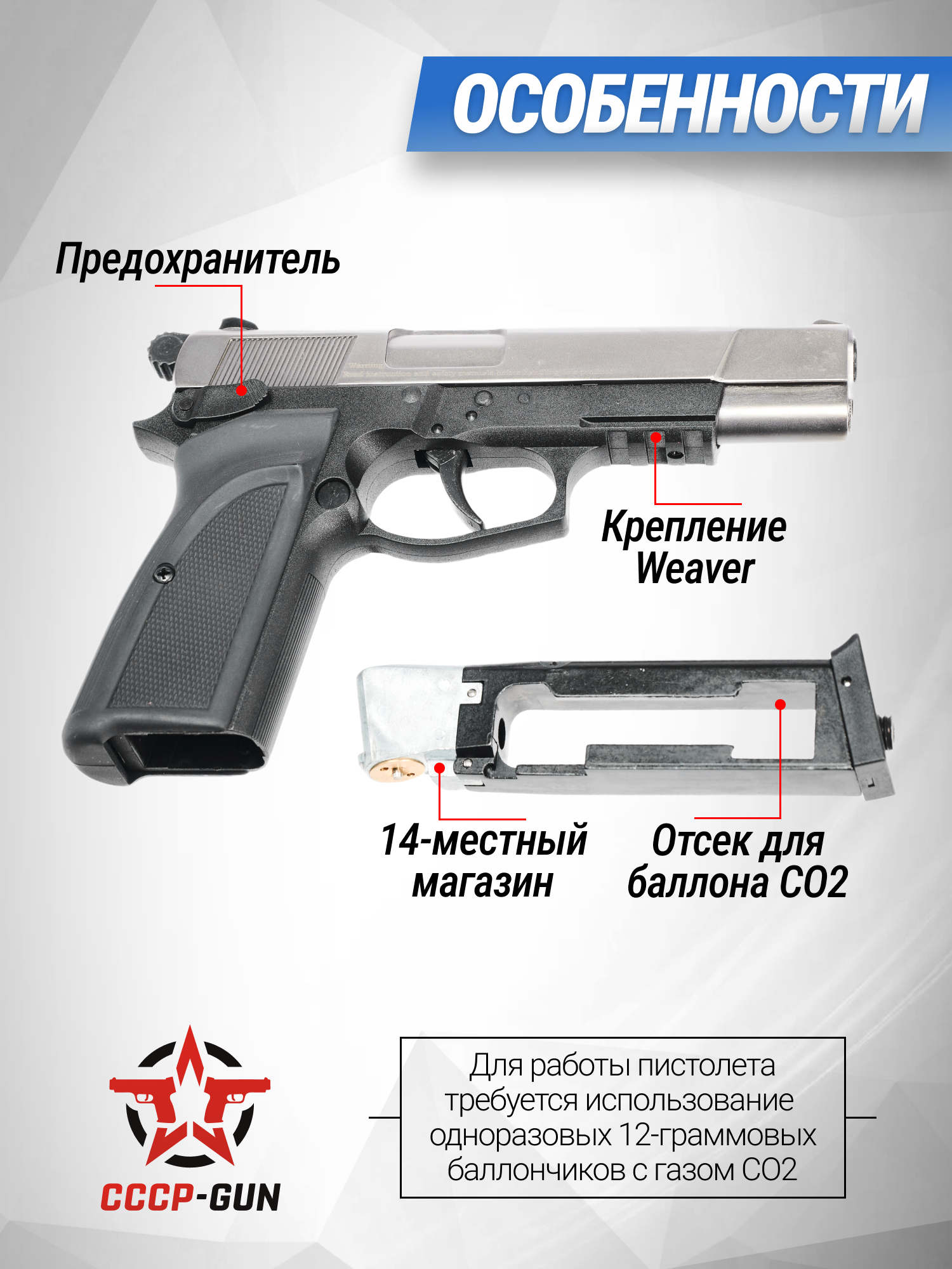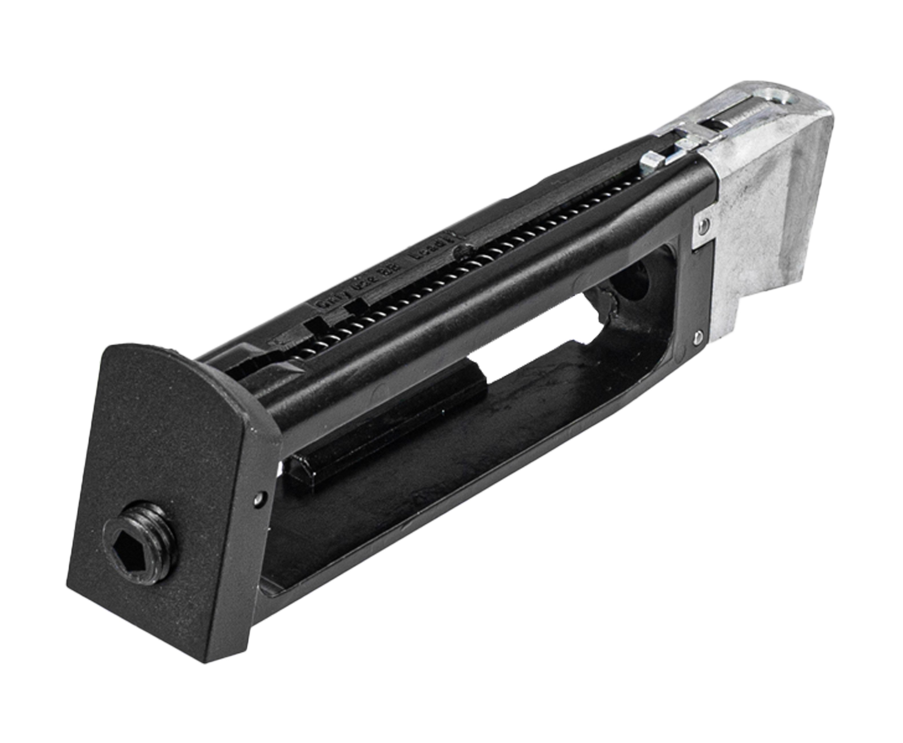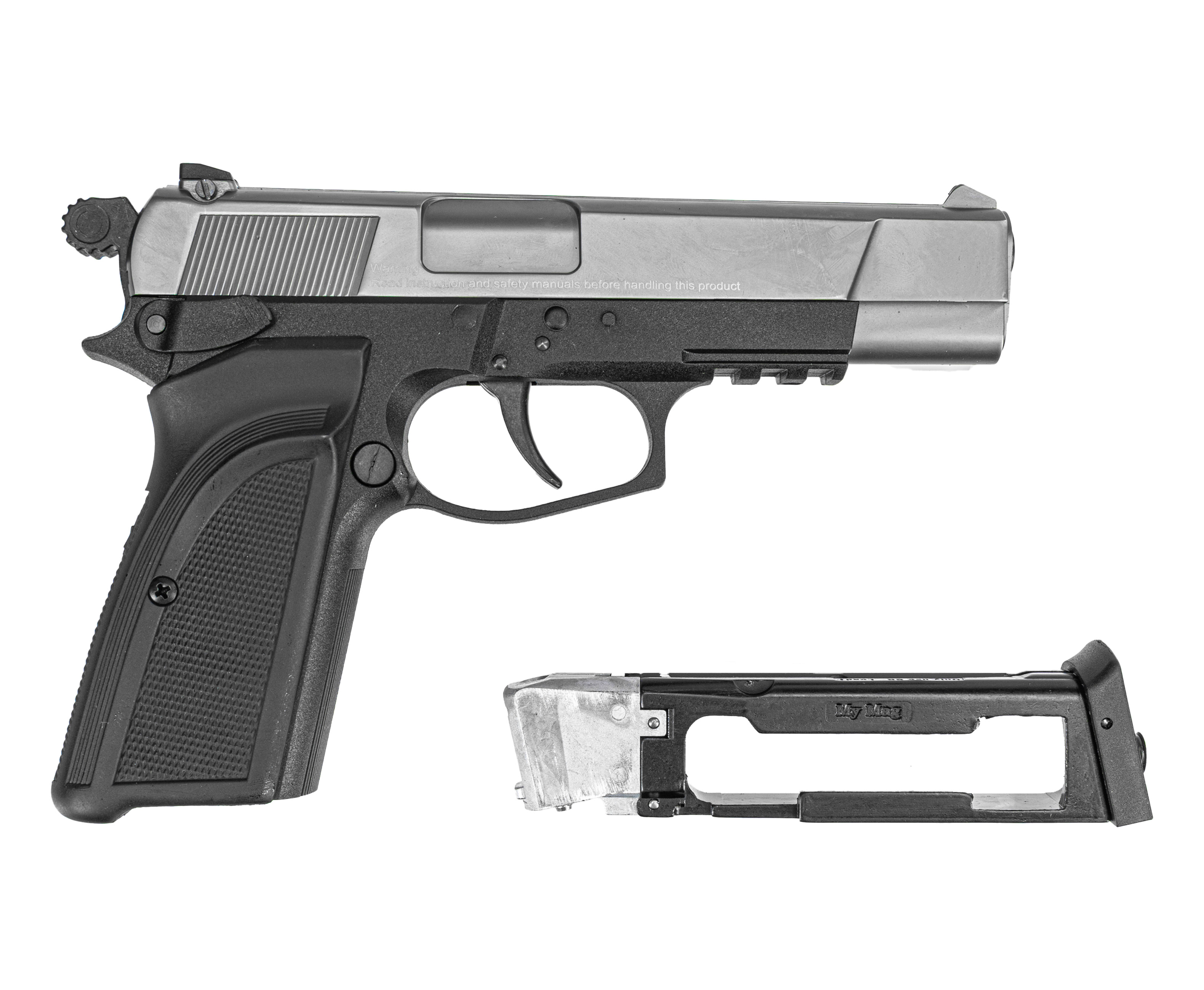 Боеприпасами в Эколь ЕС П66 Ф выступают шариковые снаряды из стали под формат BB с калибром 4.5 миллиметра. Для удобства зарядки в штатный магазин на 14 пуль, производитель добавил специальное окошко и паз для придерживания пружины. Чтобы сделать пневматику безопасной, инженеры спроектировали двусторонний предохранитель, как на боевом образце, выполняющий функцию декокера для сброса курка без выстрела.