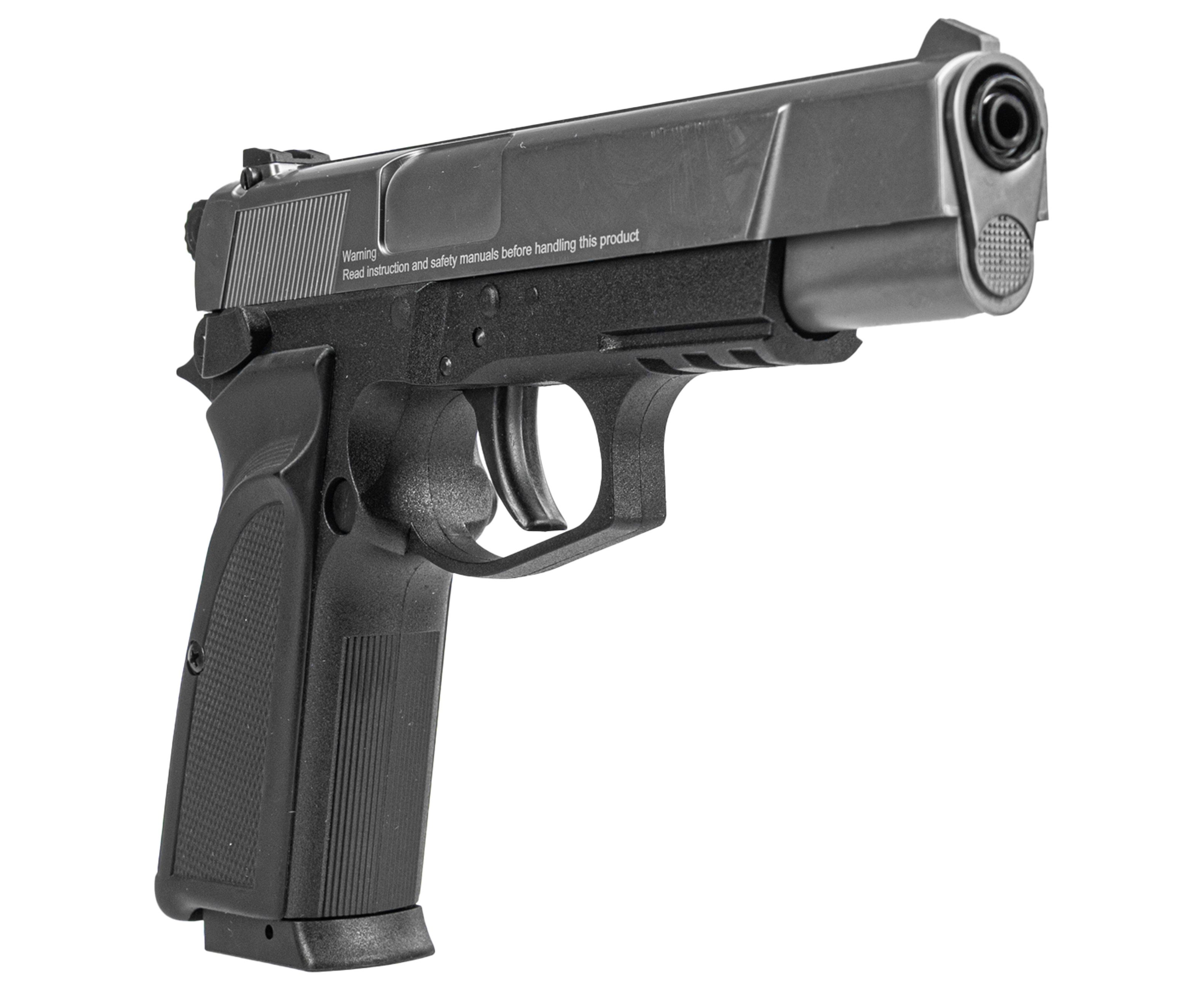 Рассматриваемая модель берет за основу дизайн от Браунинга Хай Пауэр разработанного в бельгийской компании Fabrique Nationale Herstal. Поскольку пневматическая версия выполнена в тактическом стиле, материалом корпуса и накладок на рукоять послужил ударостойкий полимер. Для добавления изделию реалистичности, конструкторы Экол спроектировали затвор цвета никель из металлического сплава, при этом вес пистолета не превышает 630 грамм, а полные габариты насчитывают 200 миллиметров.