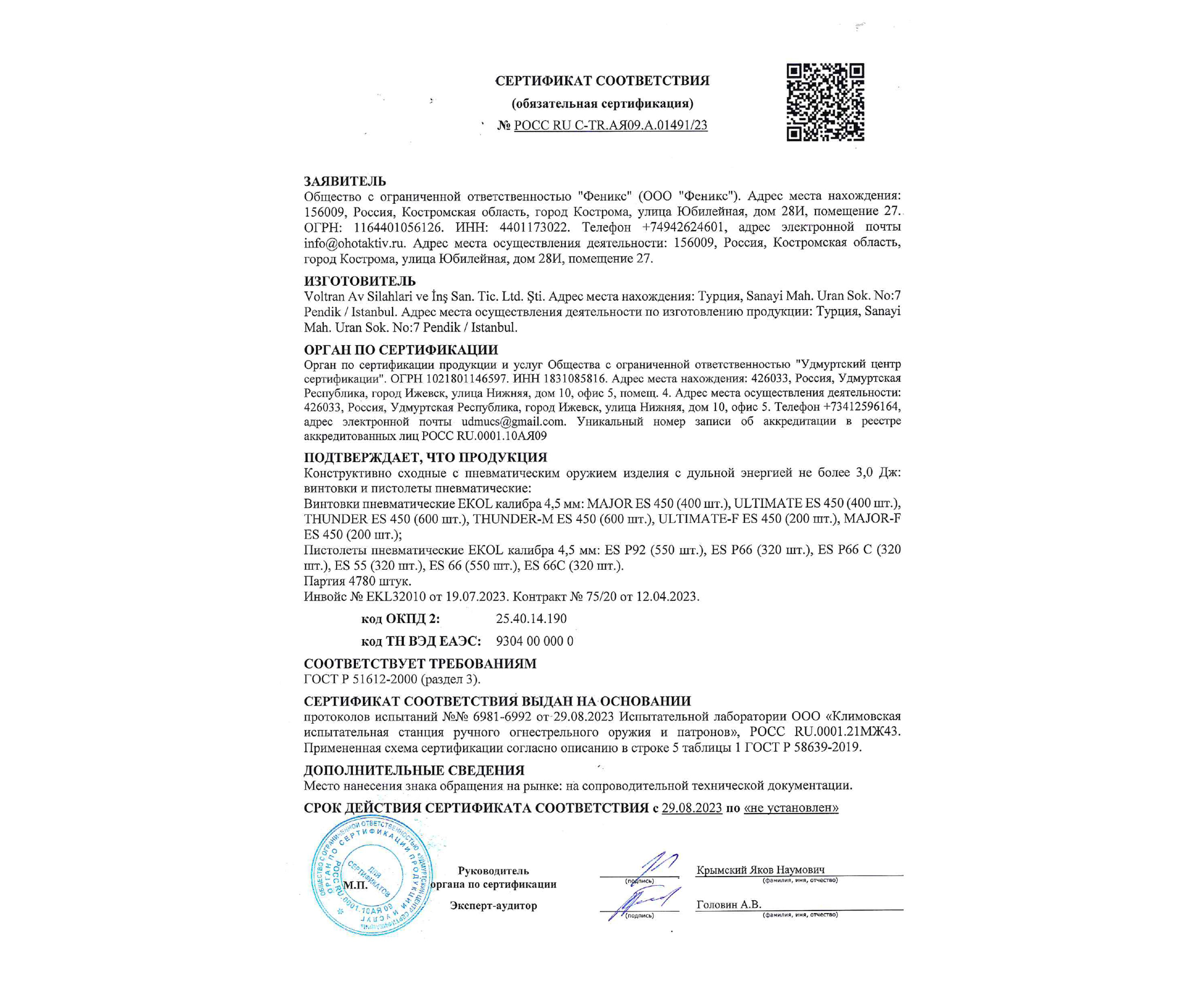В то же время для покупки изделия не понадобится оформлять разрешающие документы. Отсутствие потребности в лицензировании обуславливается соответствием мощности стрелковой единицы разрешенному законом диапазону до 3 Дж. Таким образом, чтобы завладеть экземпляром, достаточно быть старше восемнадцати лет.