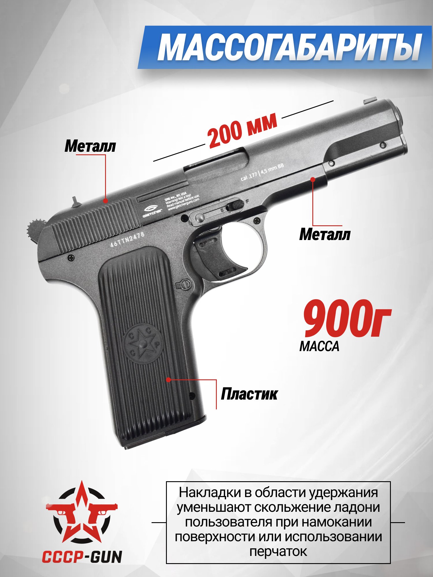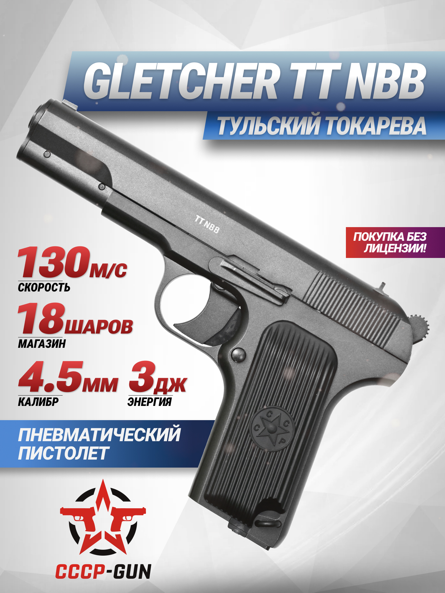 Пневматический пистолет Gletcher TT NBB вдохновлен знаменитой моделью Токарева, разработанной в 1930 году и известной своим дизайном и надежностью. Он создан с сохранением характерных черт прототипа, включая углы наклона рукояти, форму спусковой скобы и общую компоновку.