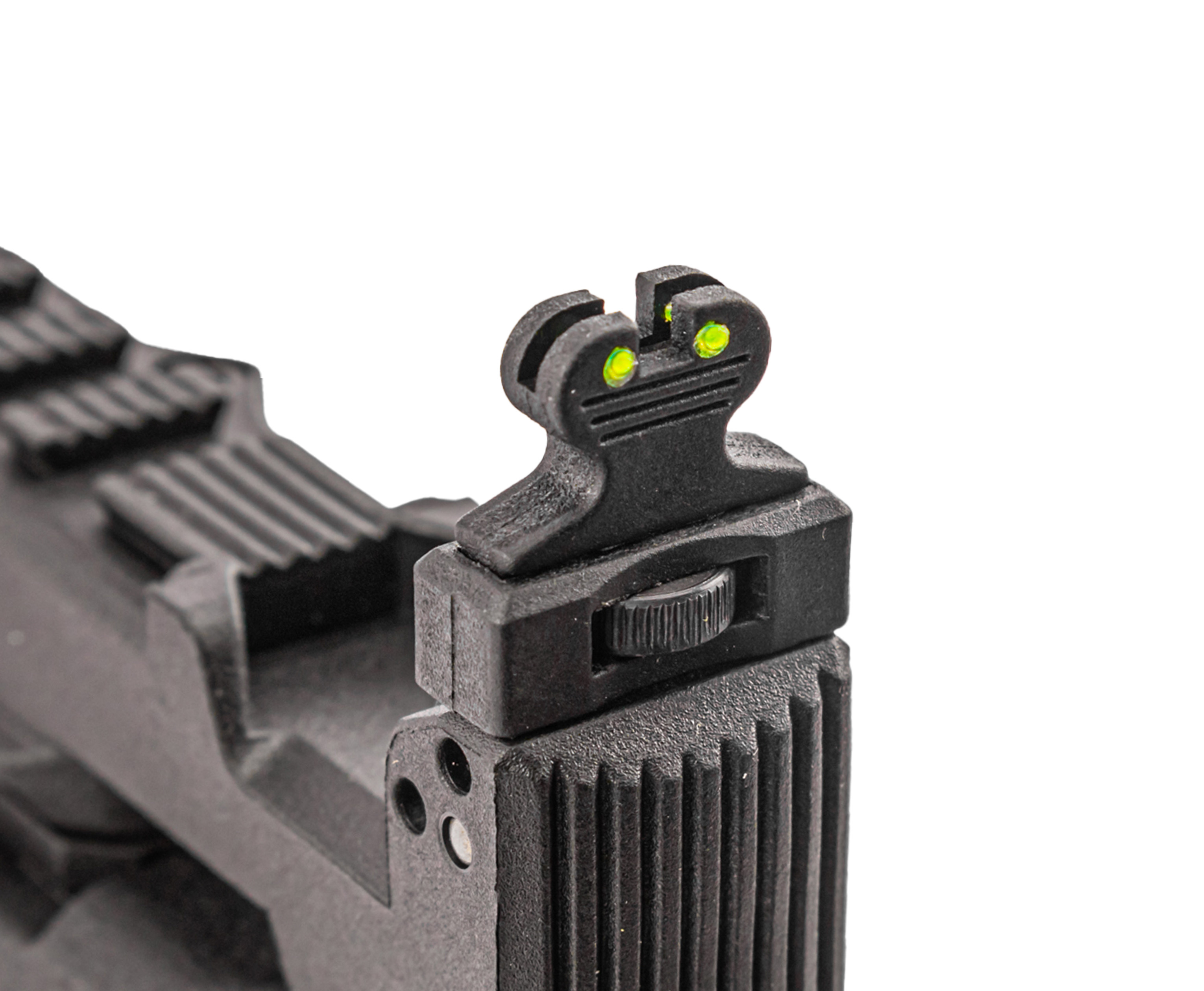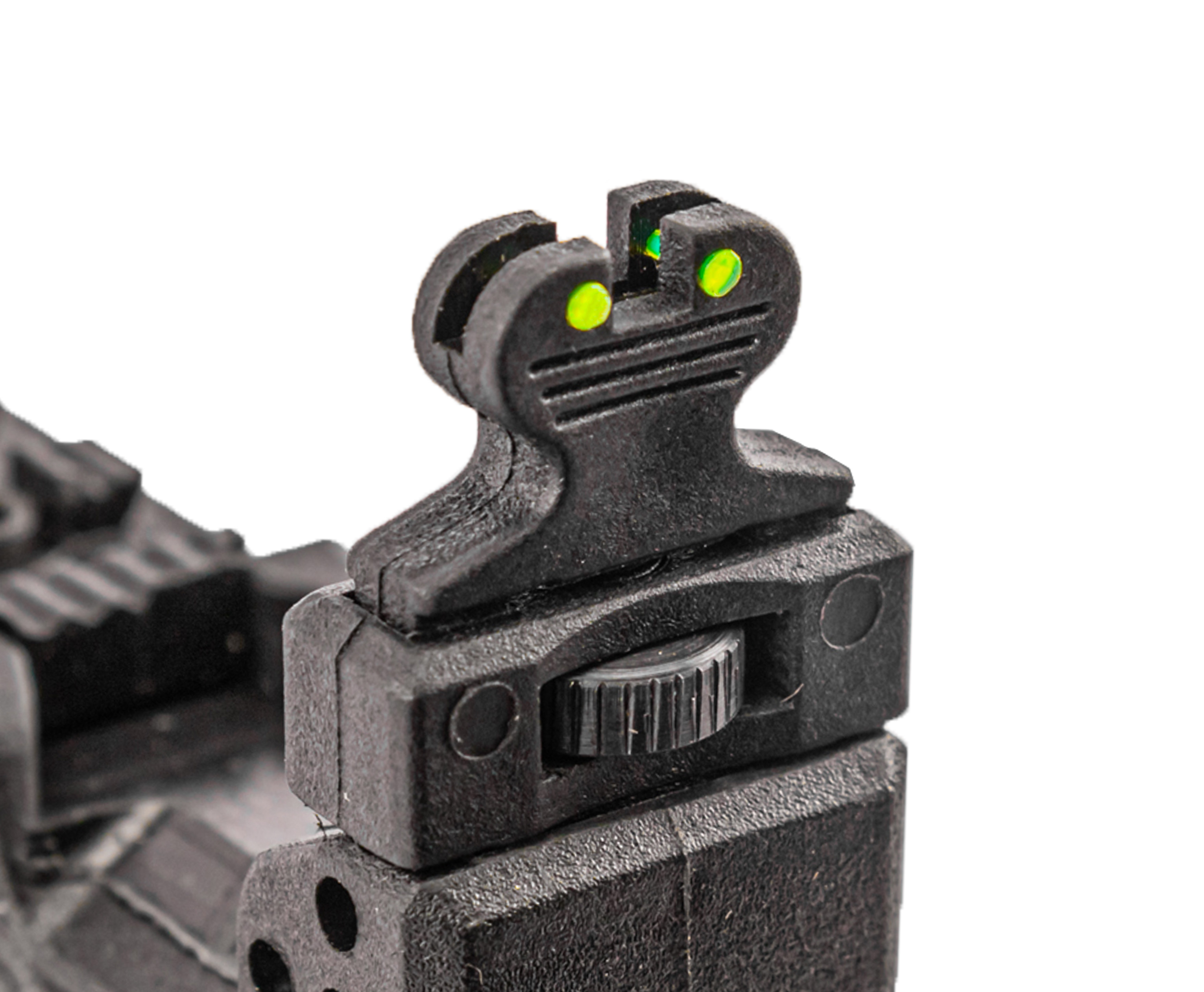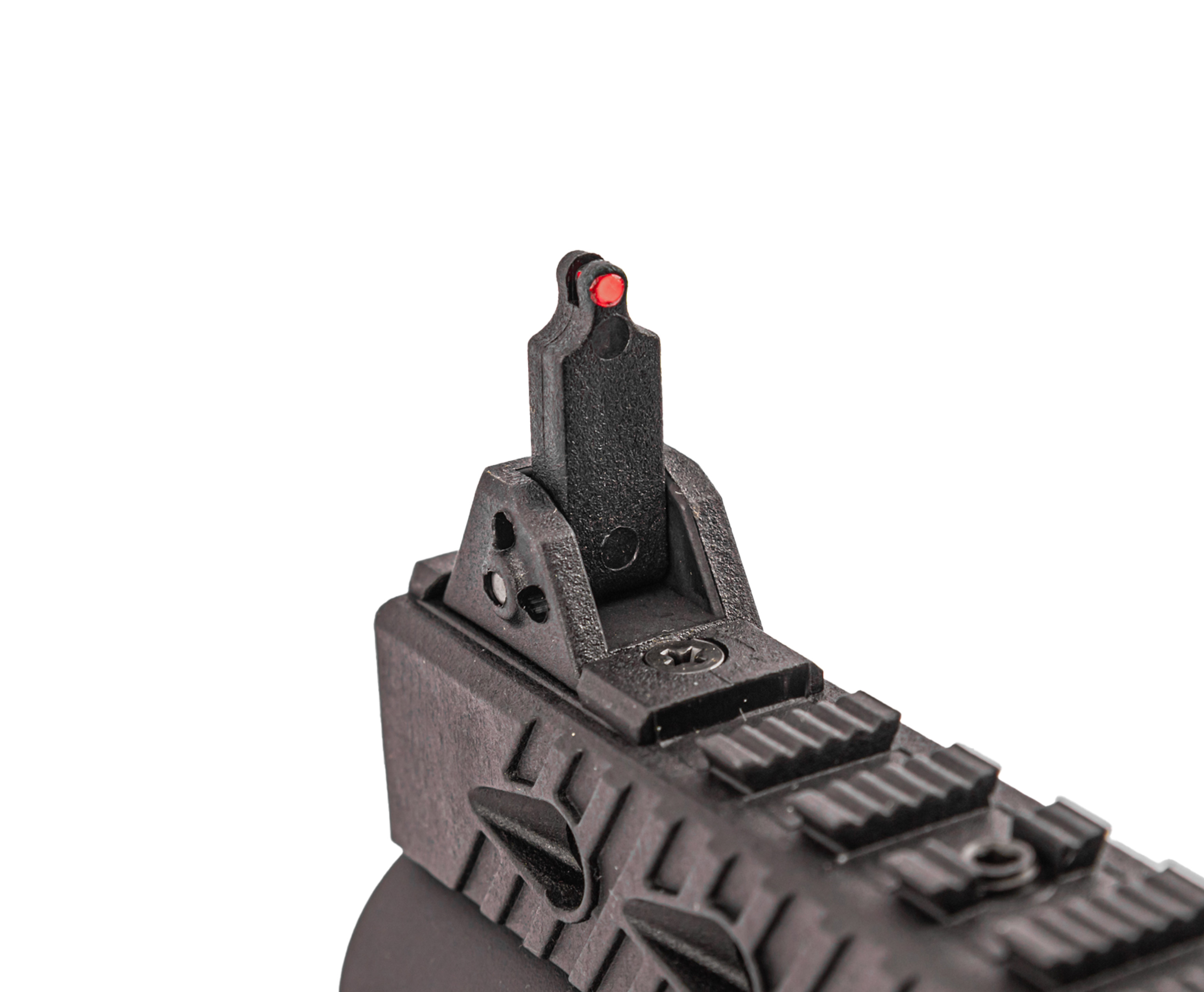 Интересной особенностью Хатсан Джет 1 считается то, что на пистолете установлено сразу два целика и одна мушка, оборудованные фиброоптическими нитями для удобства наведения на объект в условиях недостатка света. Такое решение помогает комфортно стрелять с прикладом и без него, поскольку указанные механические элементы могут складываться. Любителям тактических устройств придется по душе встроенные по бокам ресивера планки типа Вивер 22 миллиметра, которые выполняют роль крепления фонарей, ЛЦУ и прицелов.