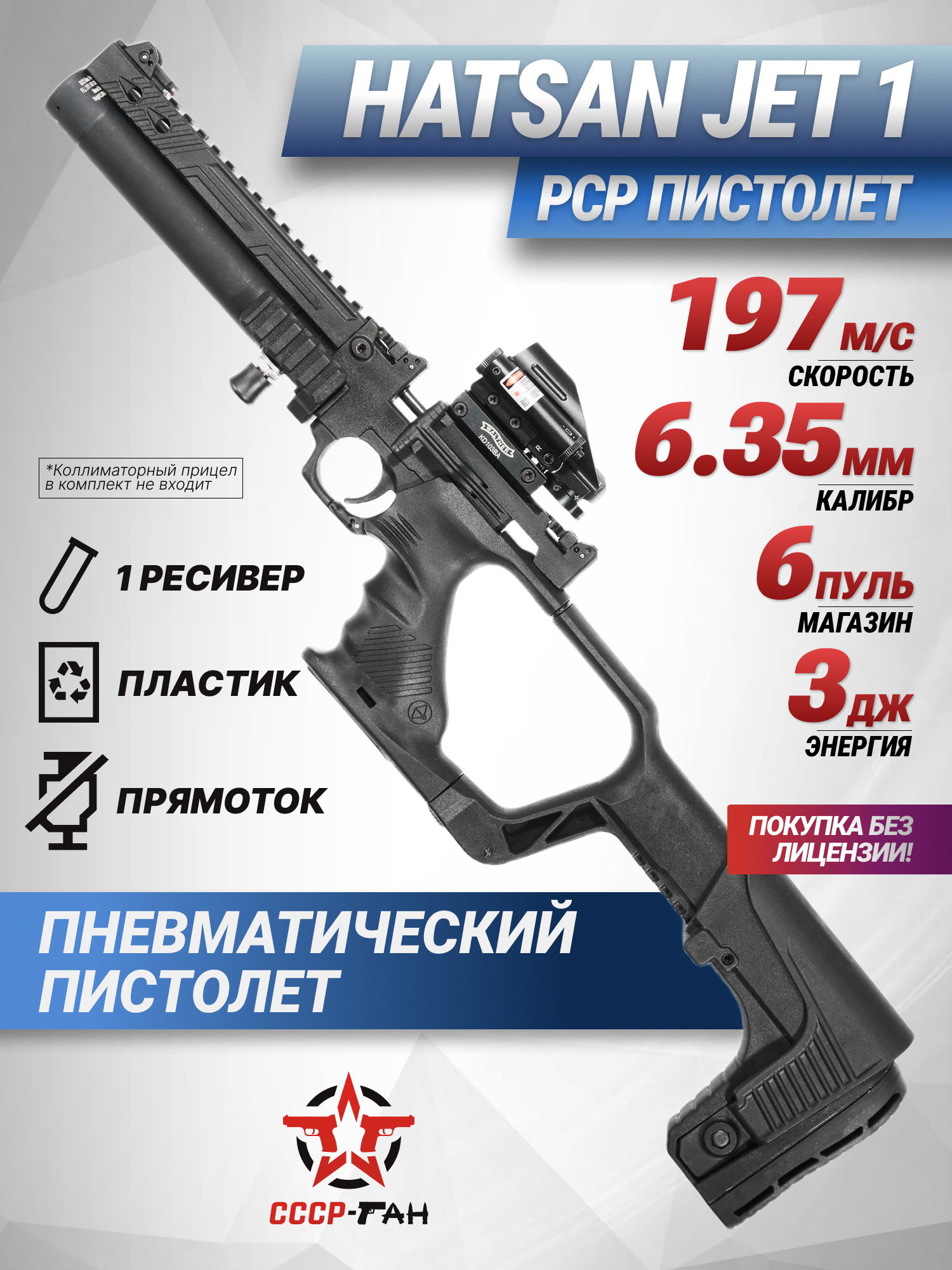 Интересной особенностью Хатсан Джет 1 считается то, что на пистолете установлено сразу два целика и одна мушка, оборудованные фиброоптическими нитями для удобства наведения на объект в условиях недостатка света. Такое решение помогает комфортно стрелять с прикладом и без него, поскольку указанные механические элементы могут складываться. Любителям тактических устройств придется по душе встроенные по бокам ресивера планки типа Вивер 22 миллиметра, которые выполняют роль крепления фонарей, ЛЦУ и прицелов.