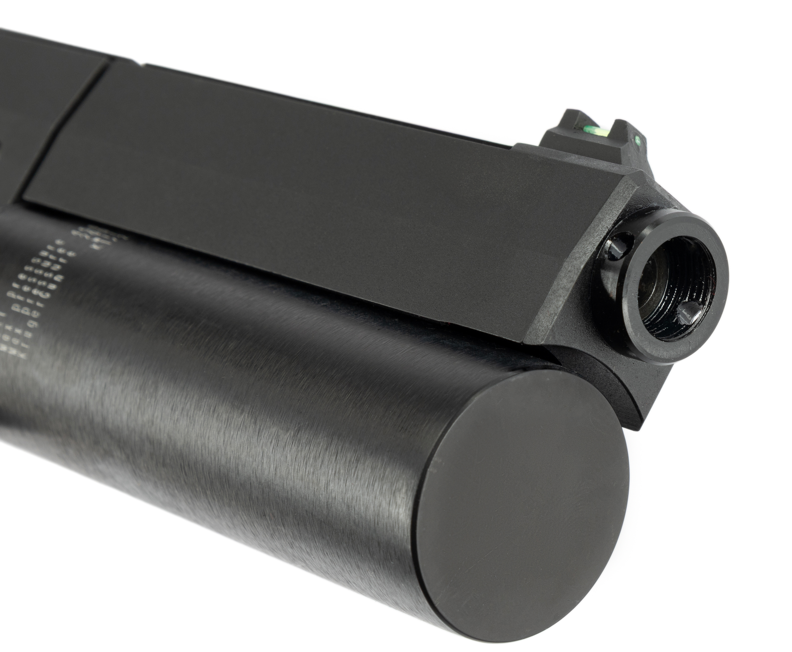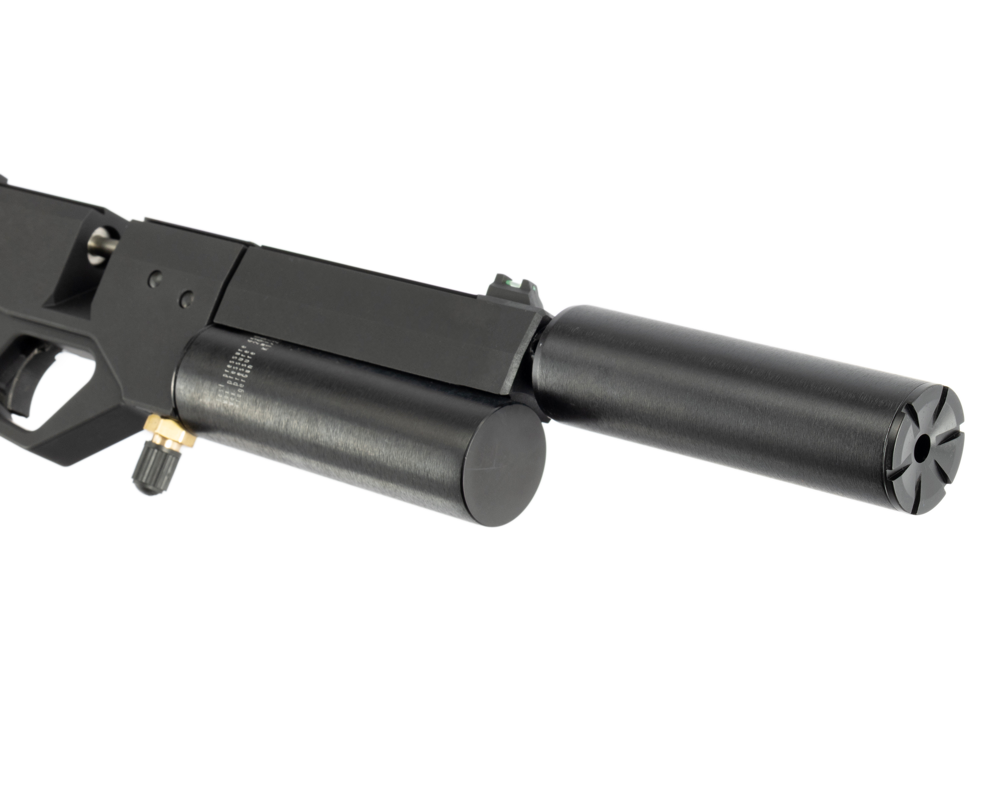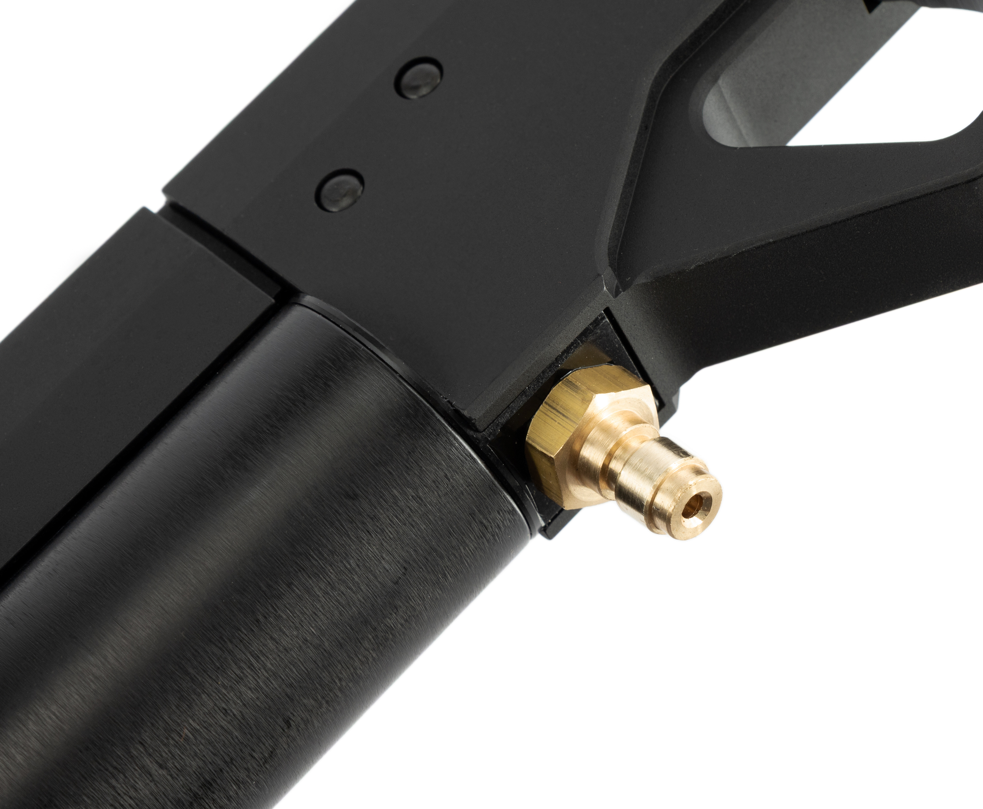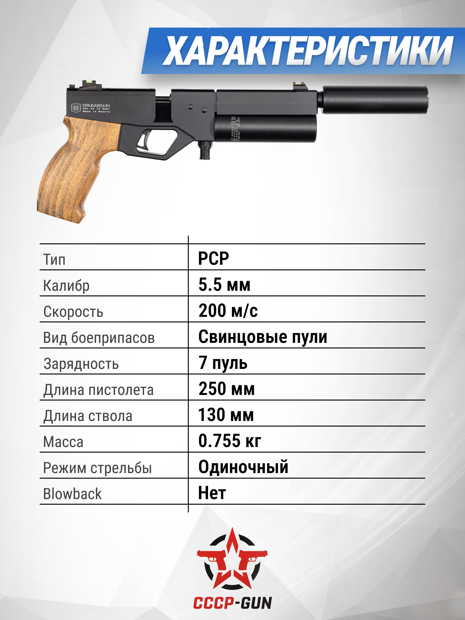 KrugerGun Корсар Компакт 5.5 мм D32 - это пистолет, функционирующий по принципу пневматики с предварительной накачкой воздуха в трубчатый резервуар объемом 42 кубических сантиметра. Перед стрельбой оружие заправляется с помощью насоса или электрического компрессора до рекомендуемого давления в 300 Бар. Для отслеживания этого параметра производитель рекомендует использовать оборудование с встроенным манометром.