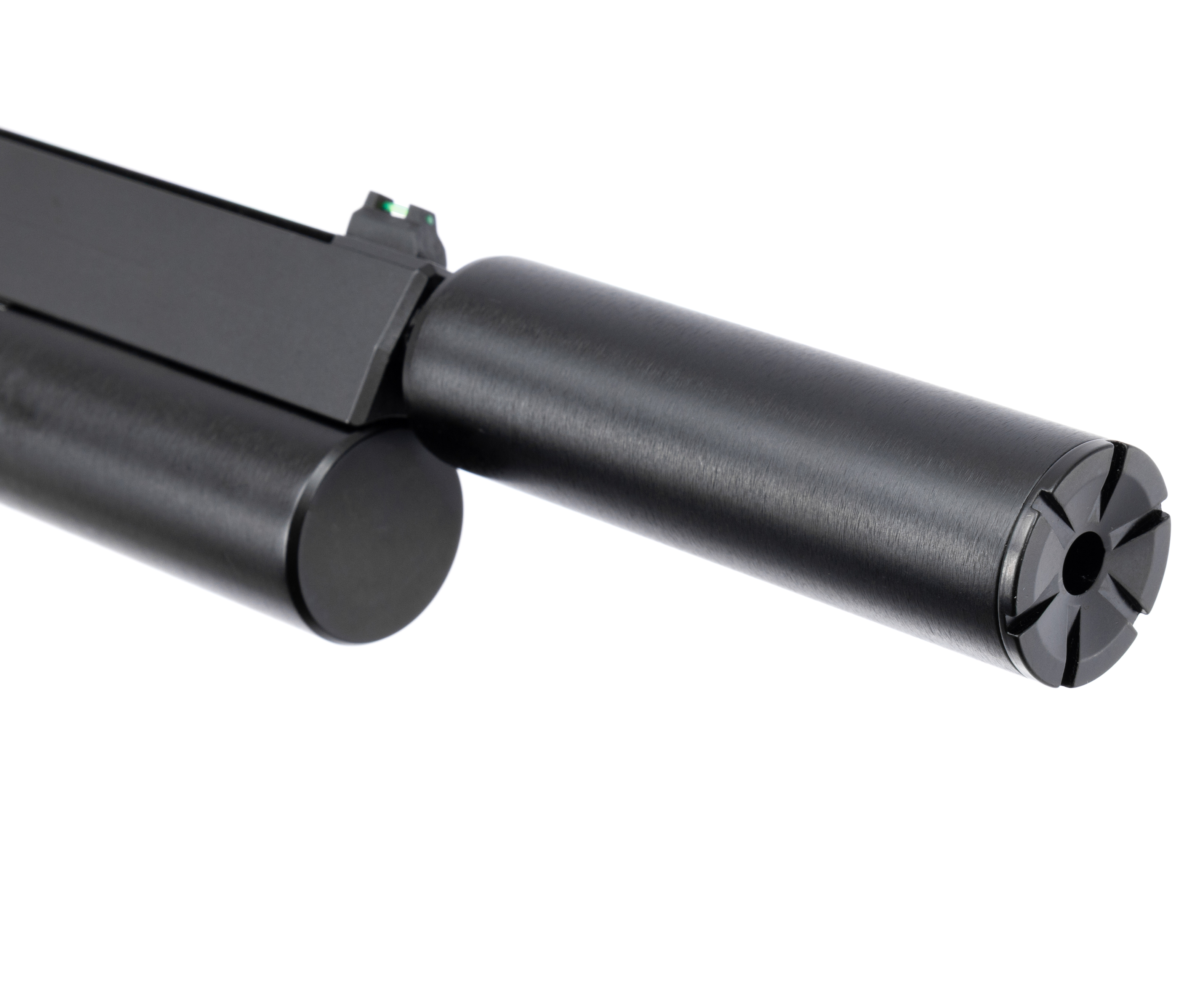 Krugergun Компакт 6.35 D32 использует в качестве источника энергии трубчатый ресивер объемом 42 кубических сантиметра с диаметром тридцать два миллиметра. Для закачки воздуха внутрь представленного резервуара применяются насосы или электрические компрессоры, а для контроля показателя давления, которое не должно превышать 300 Бар, производитель советует использовать приборы с интегрированным манометром.